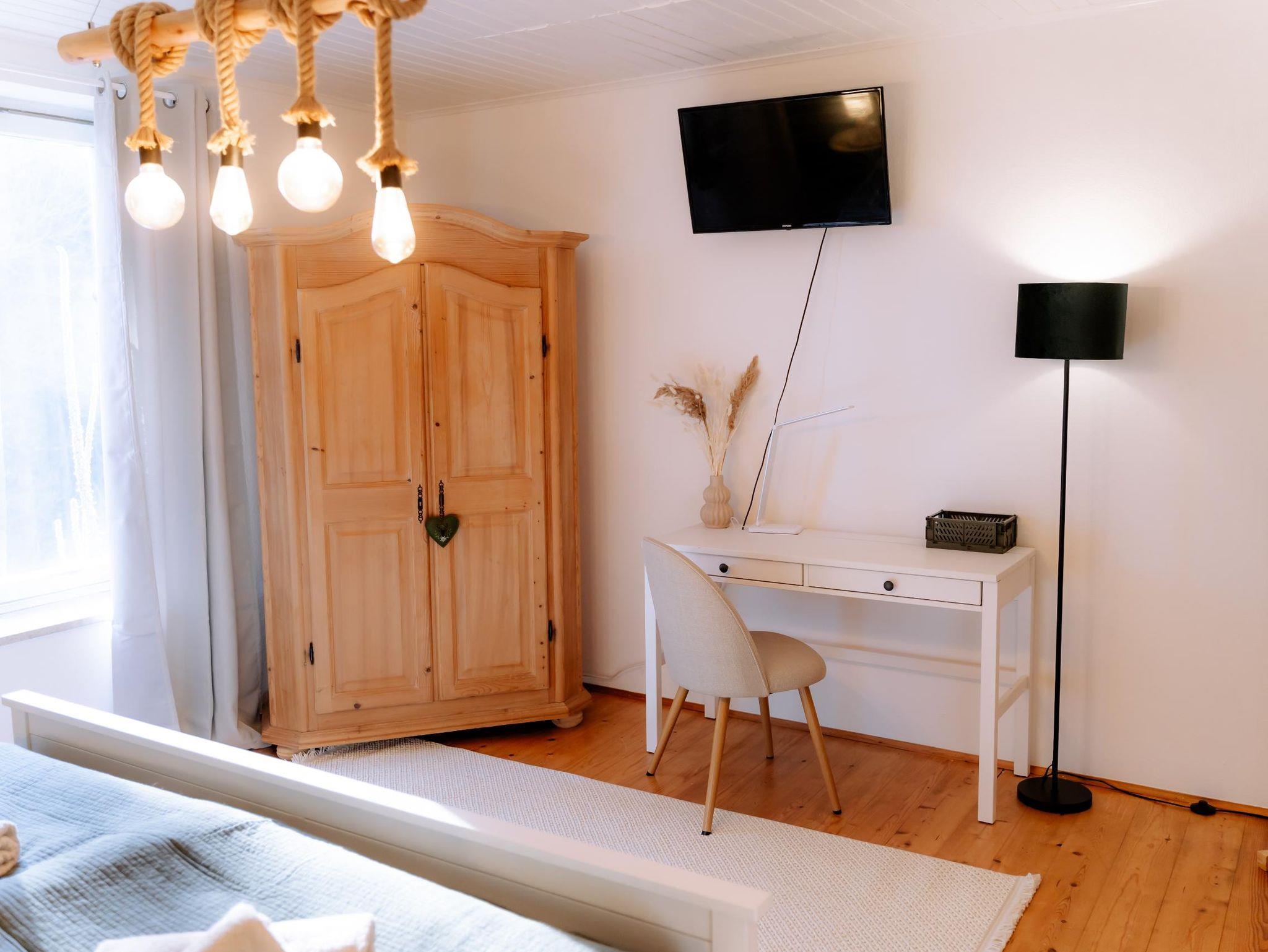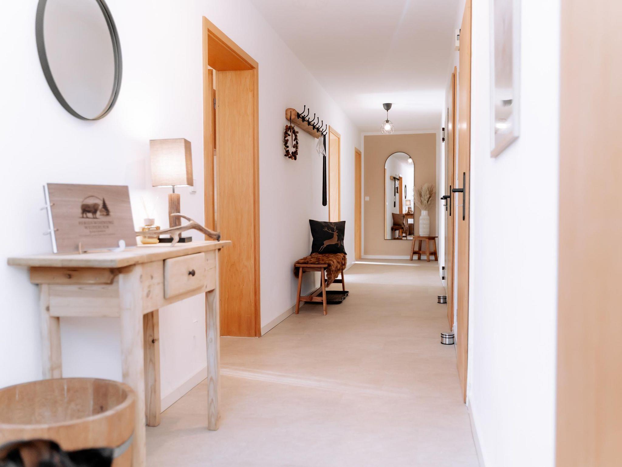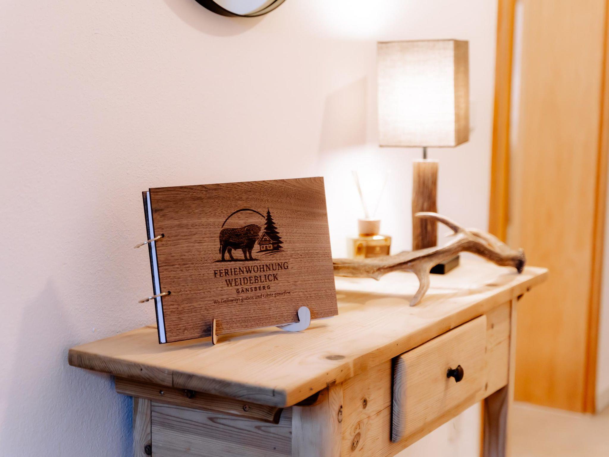 Ferienwohnung Weideblick am Gänsberg. Willkommen in der exklusiven Ferienwohnung „Weideblick am Gänsberg“ – ein stilvolles Erholen am Gänsberg bei Blaibach. Auf ca. 90 m² bietet sie luxuriösen Komfort für 1-6 Personen und vereint hochwertige Ausstattung, zeitloses Design und naturnahe Ruhe. Die Wohnung verfügt über 2 Schlafzimmer, Ein Dusch-Badezimmer und ein WC-Badezimmer sowie einen großzügigen offenen Wohn-, Ess- & Küchenbereich mit angenehmer Raumarchitektur. Die Inneneinrichtung ist geprägt von Naturmaterialien, Altholz-Designerstücken, hellen Natur Farbtönen und schafft eine Atmosphäre von Geborgenheit und Erholung in der Natur.