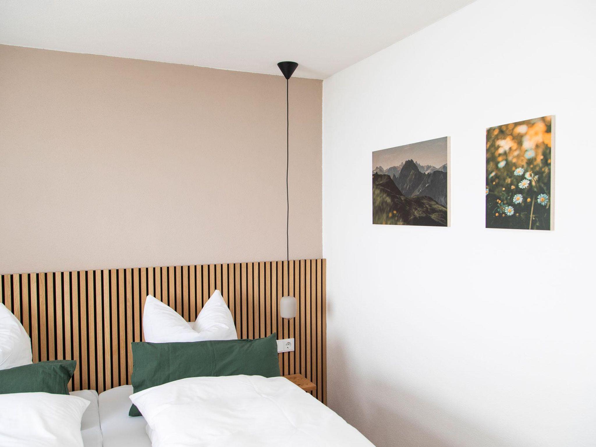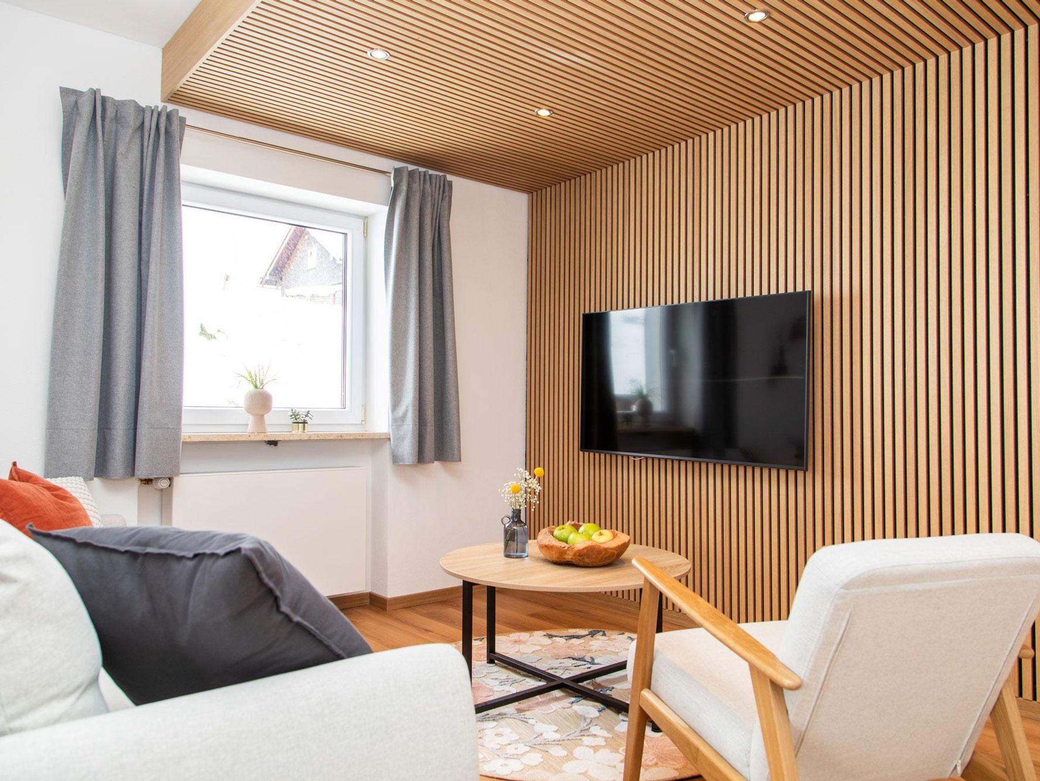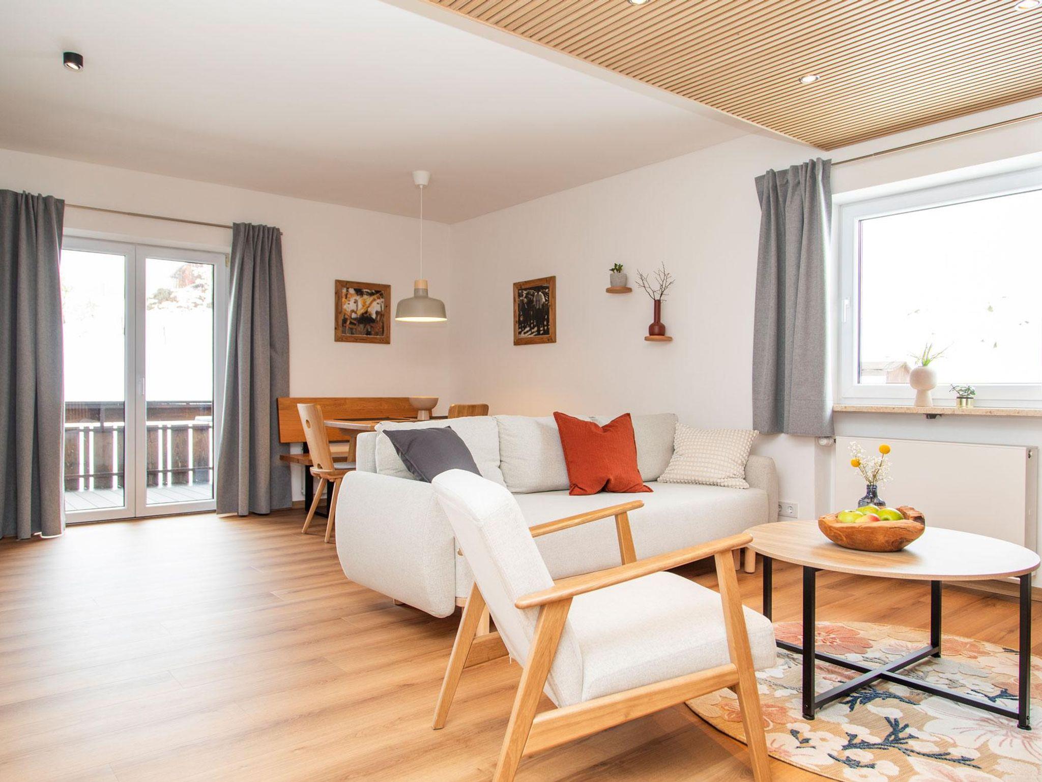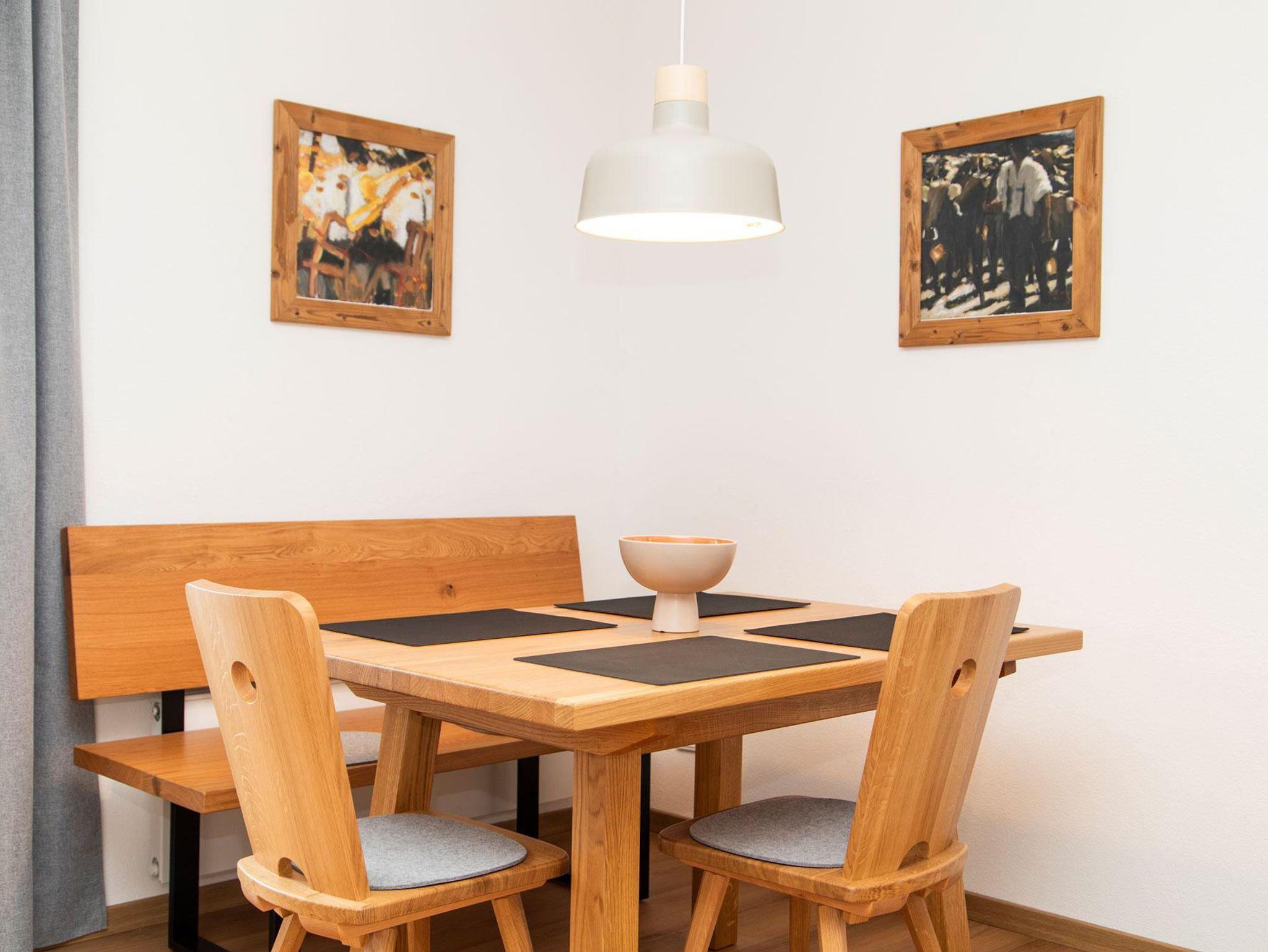 Allgäuer Gemütlichkeit und Handwerkskunst prägen die Einrichtung der Wohnungen Kapplbichl und Ornach. Modernes, junges Interior finden sie in unseren Wohnungen Wiesach und Birkach.