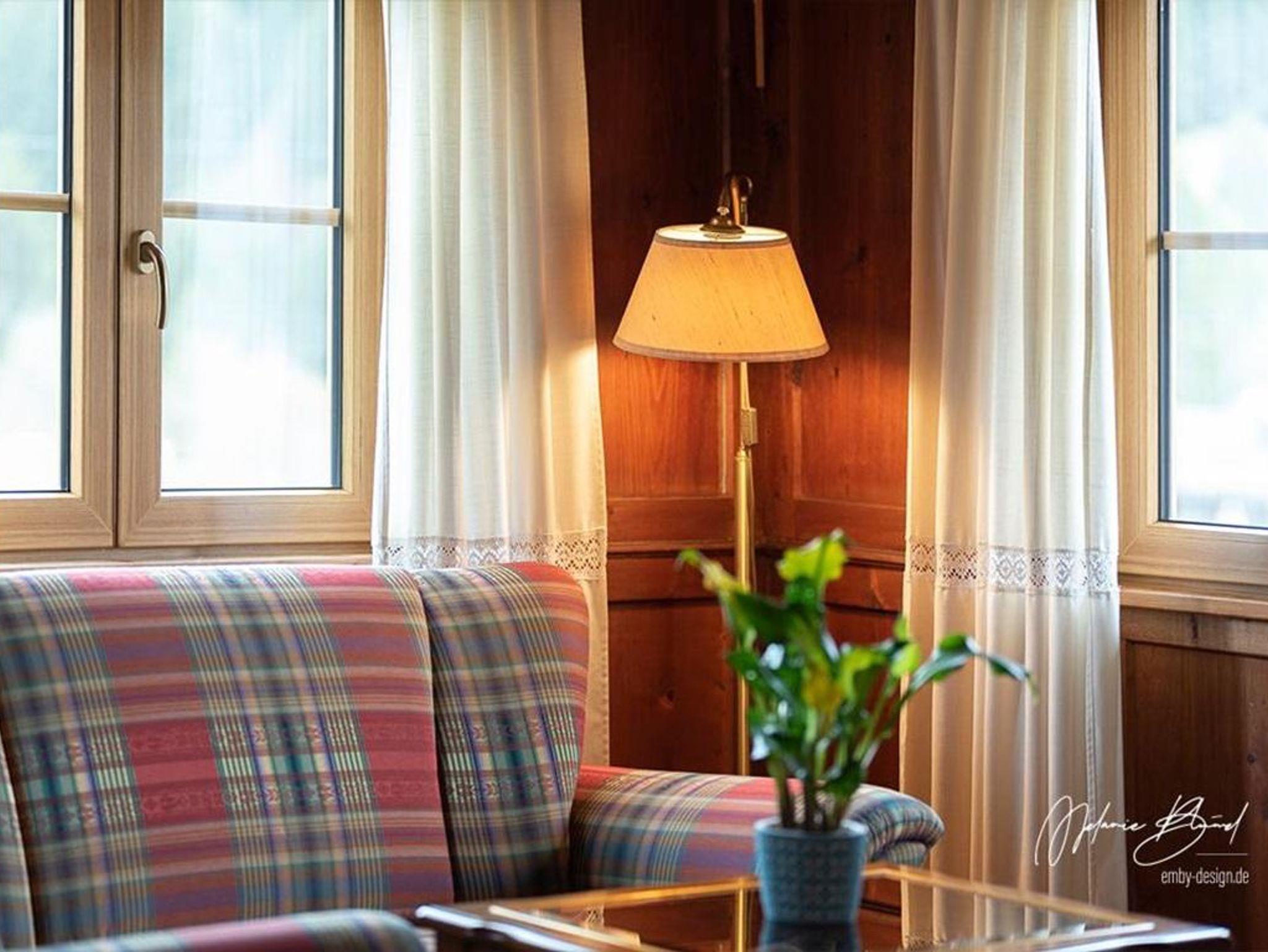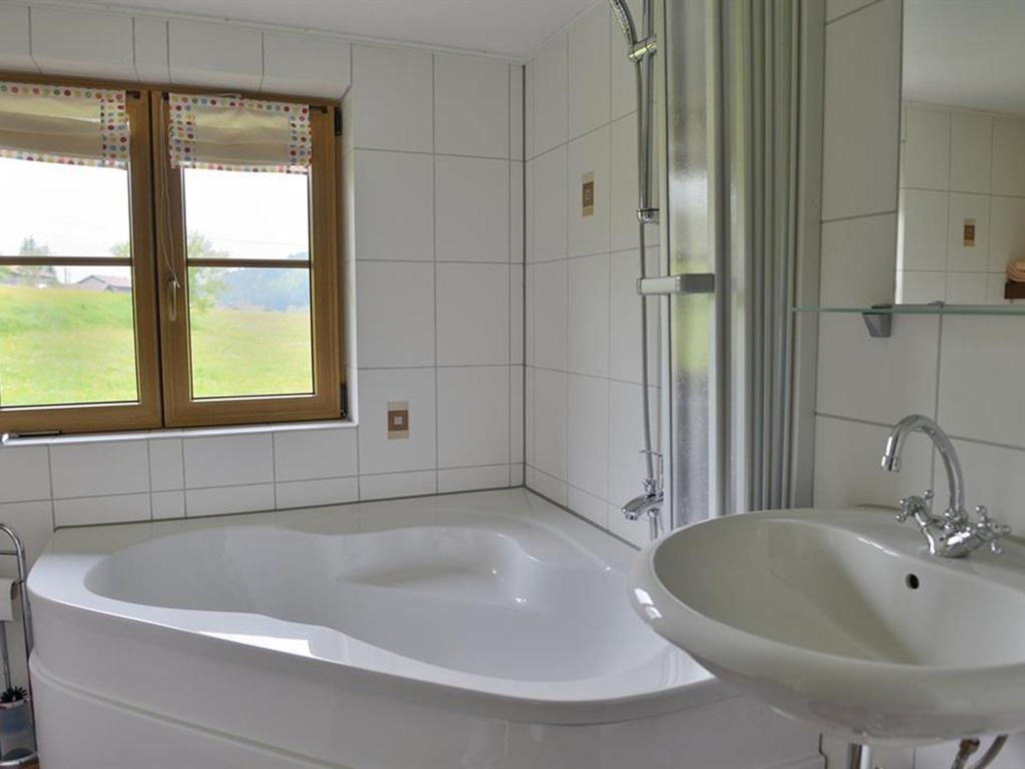 Our cosy and light-flooded holiday apartment Grünten is furnished in traditional country house style. It has a separate bedroom and a kitchen-living room with sofa bed as well as a bathroom with window and corner bathtub. Outdoor seating is available as well as large play areas and lots of greenery. For very small guests we can provide a baby cot as well as a baby bath and high chair.
