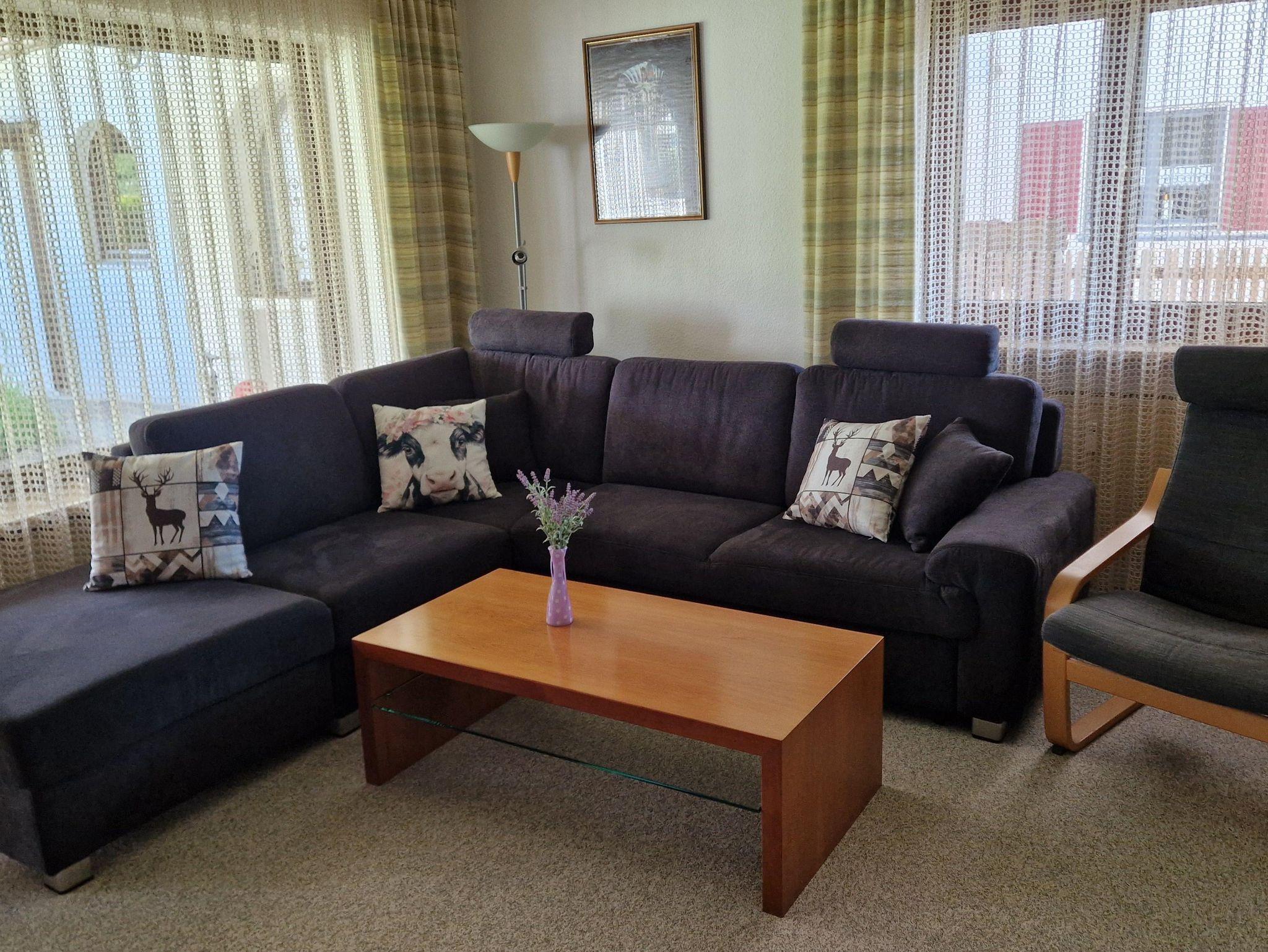 Großzügige Ferienwohnung mit 84 qm im Erdgeschoß mit großer Terrasse und kleinem Steinbrunnen, die zum Chillen einlädt. Vom Garten aus, haben Sie einen herrlichen Blick auf den Grünten. Die Wohnung bietet viel Platz zum Wohlfühlen mit einem großen Wohnzimmer mit ausziehbarer bequemer Polstercouch, Sat-TV, Radio/CD.