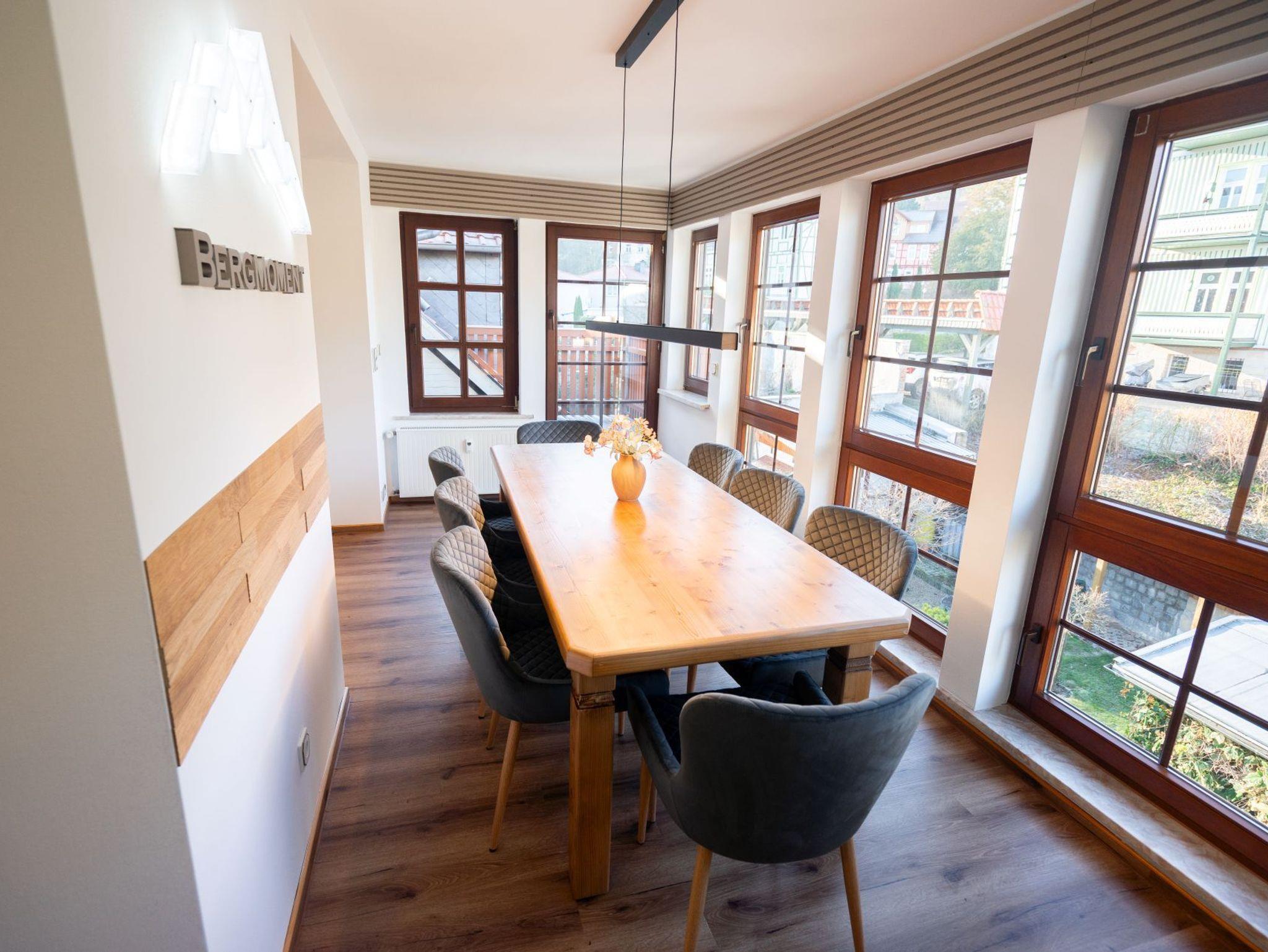 Bergmoment ? großzügig, lichtdurchflutet und mit viel Raum für gemeinsame Zeit: Die Ferienwohnung überzeugt durch ihre offene Gestaltung, moderne Ausstattung und ein wohnliches Ambiente mit liebevollen Details. Hoch gelegen im oberen Geschoss des Hauses bietet sie viel Ruhe und ist ideal für Familien oder Freunde, die gemeinsam reisen und Wert auf Komfort und Platz legen.