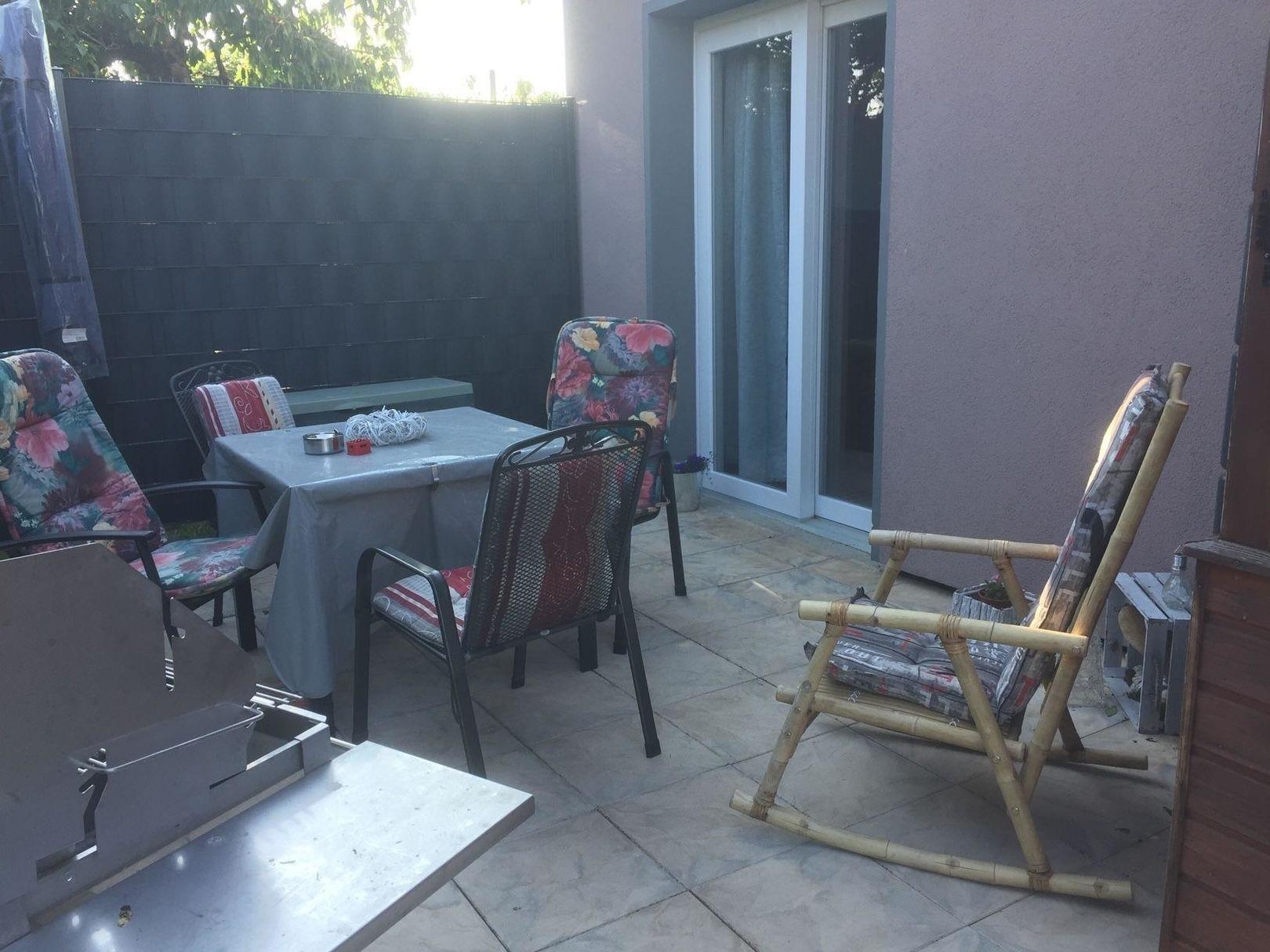 Der Außenbereich lädt zum grillen und entspannen ein. Ein Teil des Garten s kann mit genutzt werden.