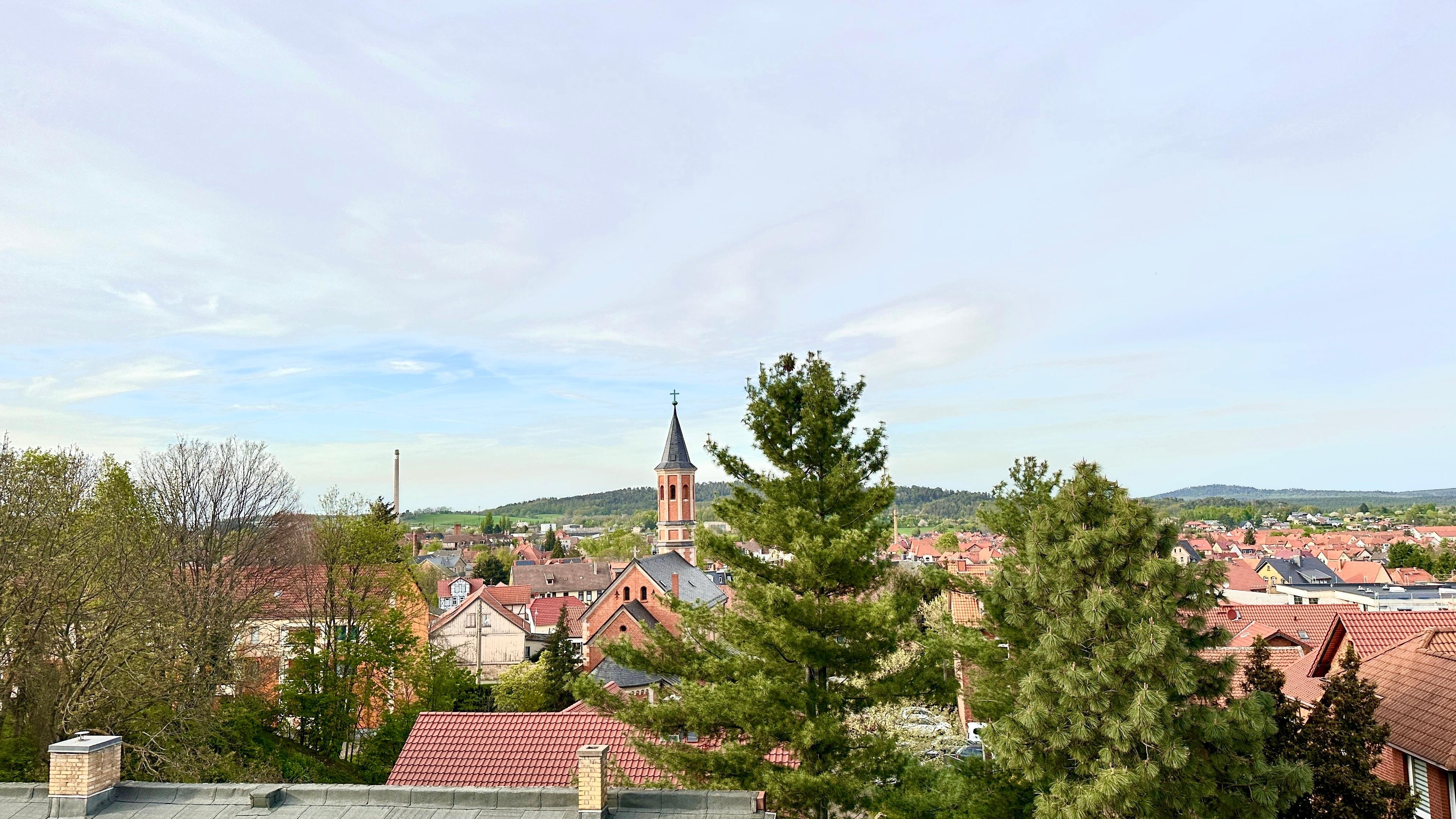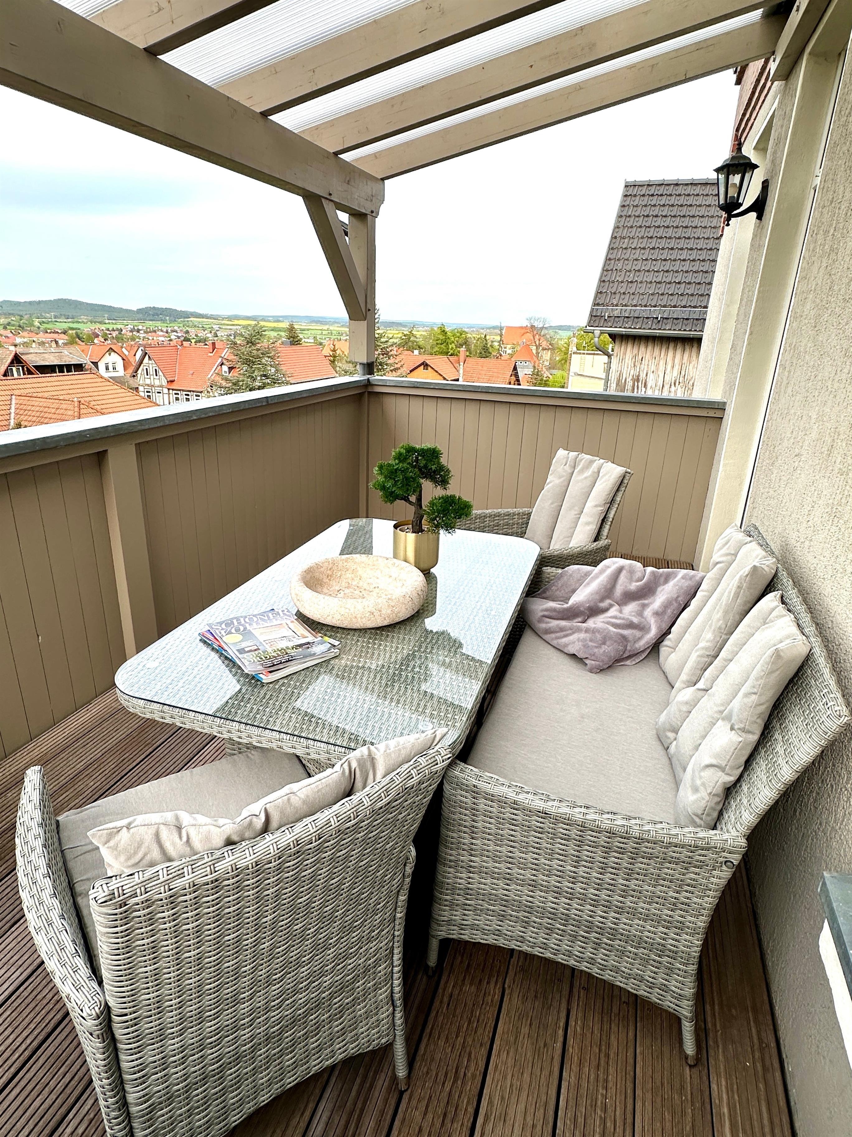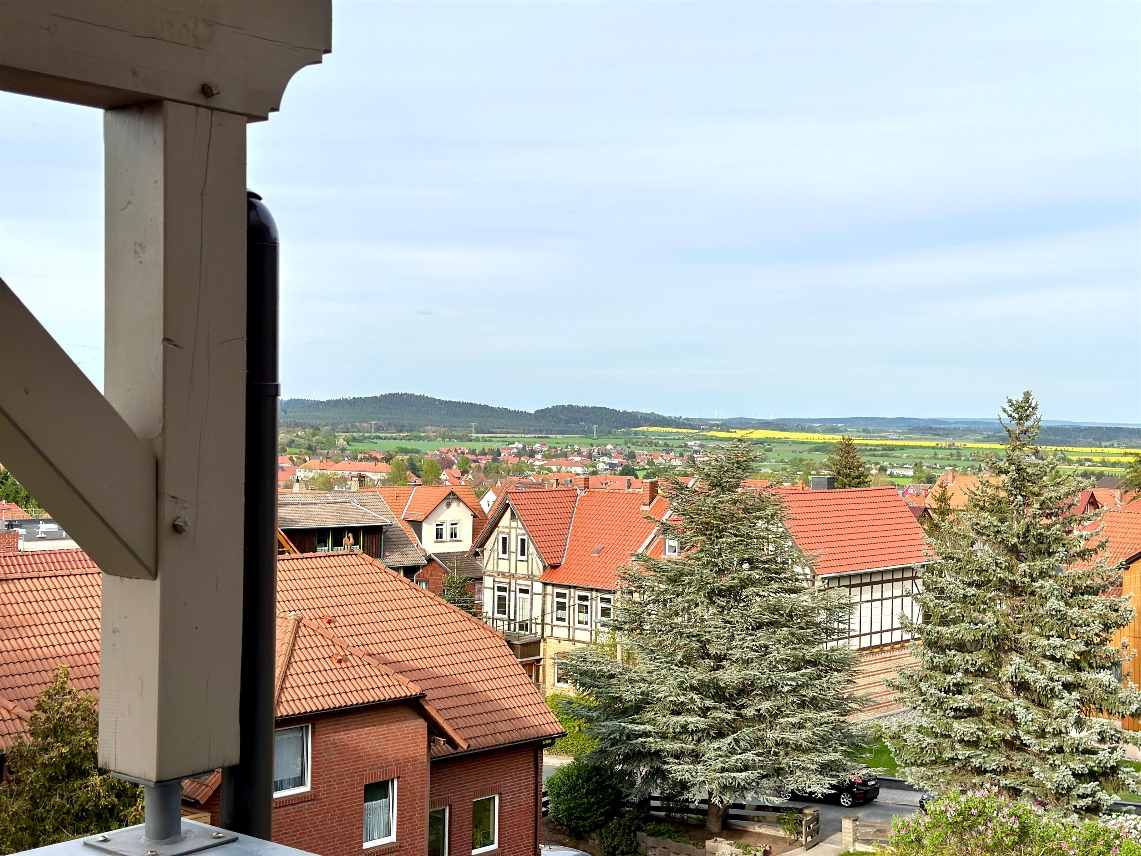 Genießen Sie das Joop Bad und die Badewanne, von der aus Sie einen Blick über die Stadt haben. Entspannen Sie sich auf einem der beiden Balkone - einer befindet sich auf der Südseite mit Blick auf den Wald und der andere auf der Nordseite, überdacht mit einem herrlichen Blick über die Stadt und das Harzvorland.