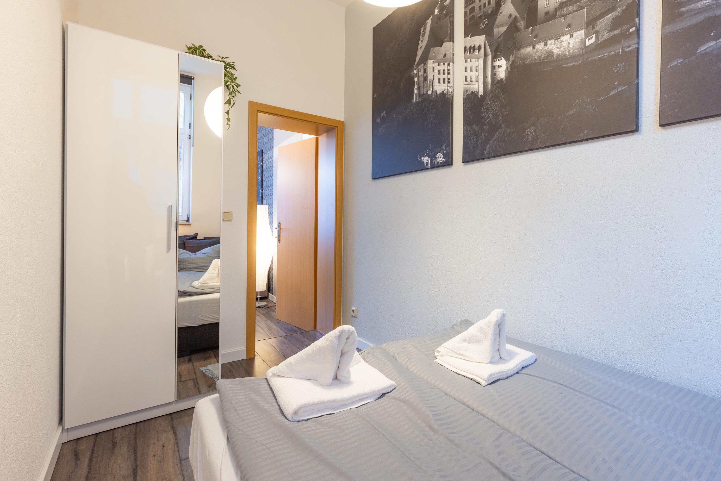 Unsere Ferienwohnung "Am neuen Thore" ist modern eingerichtet und wurde frisch renoviert. Im Schlafzimmer entspannen Sie auf einem 1,40m breiten Boxspringbett - Ihr Gepäck verstauen Sie bequem im separaten Kleiderschrank. Im Wohn- und Kochbereich wartet eine kleine Eßecke sowie eine Eckwohnlandschaft auf Sie - diese kann bei Bedarf auch in eine zweite Schlafmöglichkeit mit einer Breite von ca. 1,40m verandelt werden. Von hier aus haben Sie den idealen Blick auf unseren Flachbild TV. Die modern eingerichtete Küche verfügt über einen Herd mit Ceranfeld, Backofen, Spülmaschine, Kühlschrank mit Tiefkühlfach, Kaffeemaschine und Toaster. Im Bad finden Sie Dusche, Waschbecken und WC. Bei gutem Wetter wartet zudem unser freundlicher Innenhof auf Sie - genießen Sie hier unter unsererm Wein ein gepflegtes Glas. Die Ferienwohnung verfügt über kostenloses W-Lan. Fahrräder können im Flur sicher abgestellt werden.
