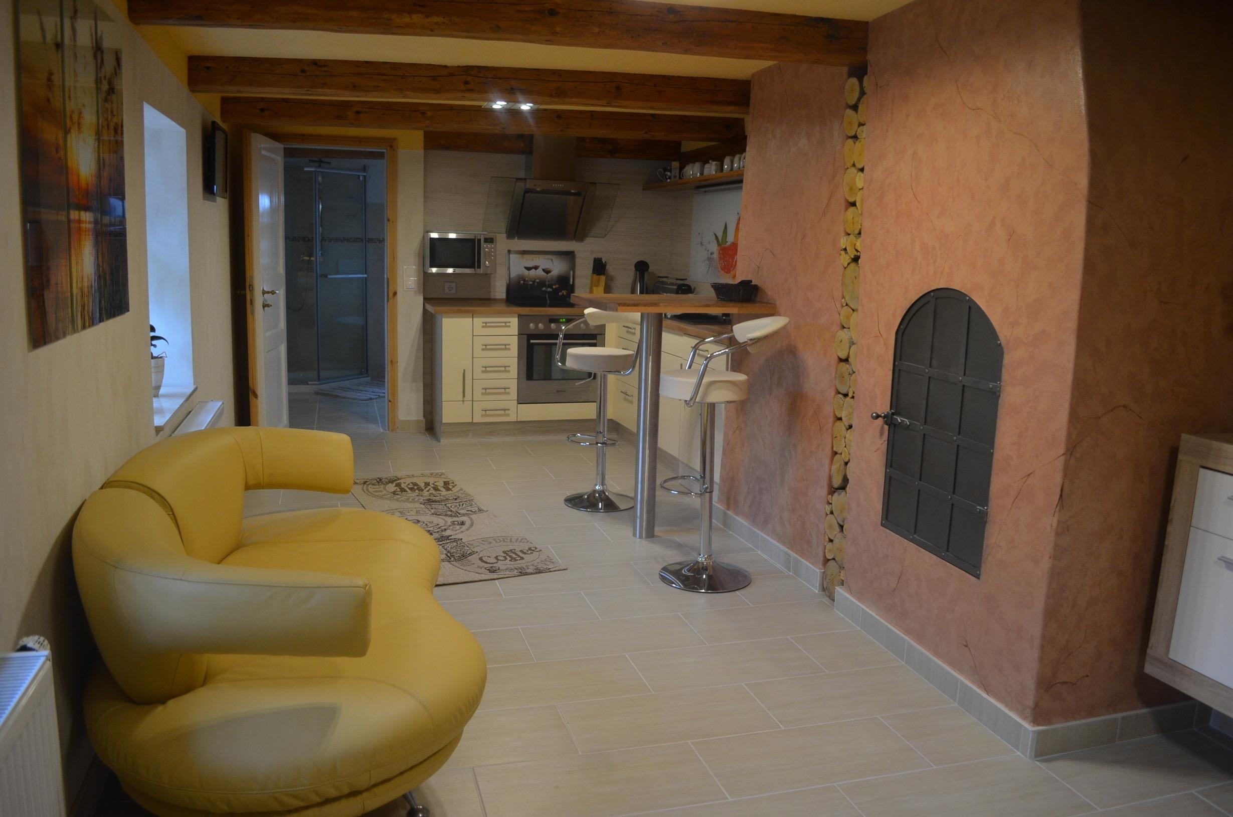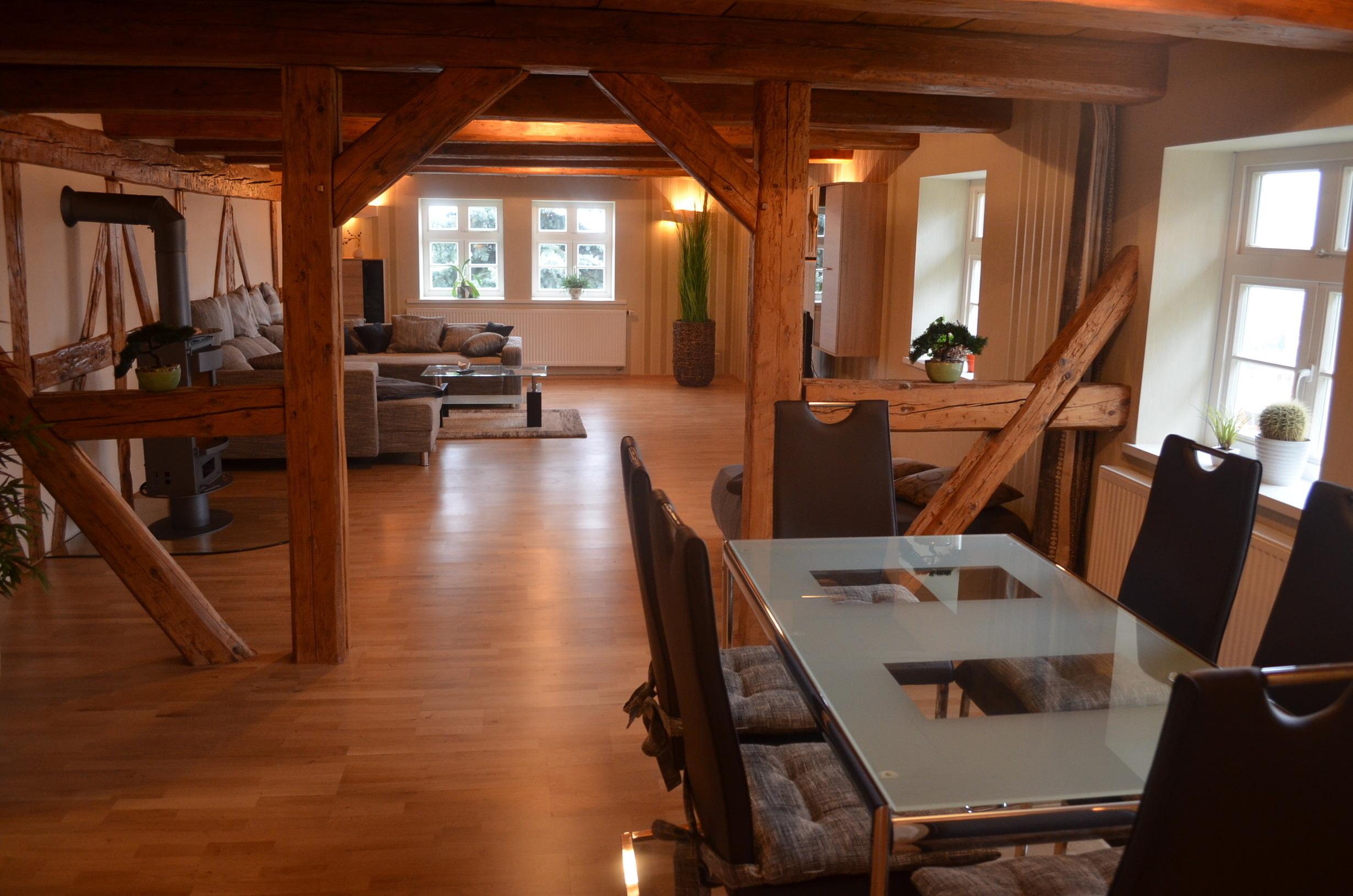 Wir haben das Haus 2005 erworben und mit viel liebe umgebaut. Das Haus ist 1606 erbaut und war immer in der Hand der evangelischen Kirche. Es war bis in den 90ziger Jahren der Wohnsitz des jeweiligen Pfarrers.