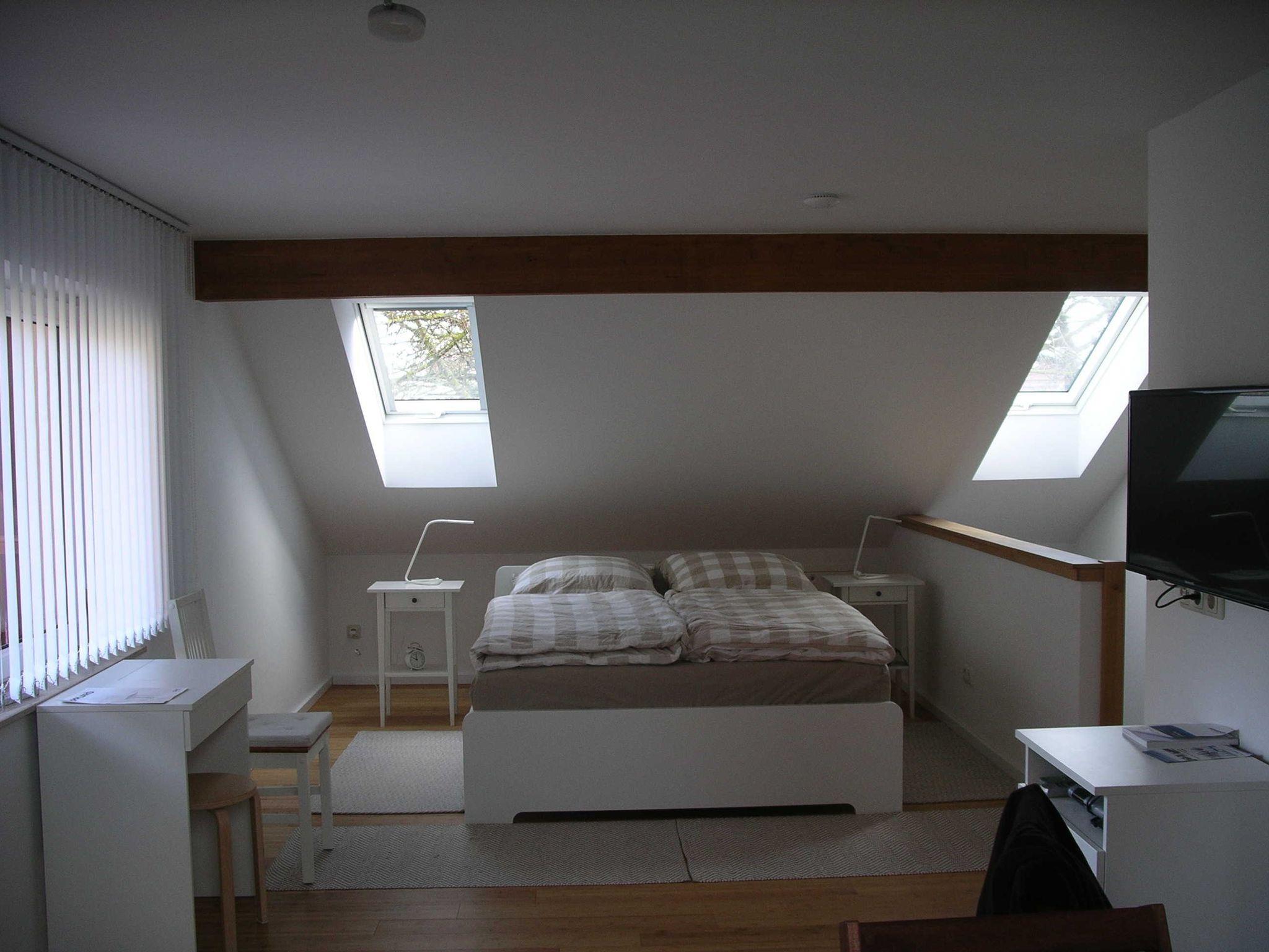 Erdgeschoss : Küche , Eßplatz , Dusche , WC , Besenkammer , Fernseher, Obergeschoss : 1 Wohn- Schlafzimmer mit Doppelbett ( 1,60 x 2,00 ) , Doppelliegesofa ( 1,40 x 2,00 m ) , Fernseher , Dusche , WC , Balkon . Die Küche ist ausgestattet mit Cerankochfeld , Mikrowelle , Wasserkocher , Kaffeemaschine , Toaster und Kühlschrank mit Gefrierfach .