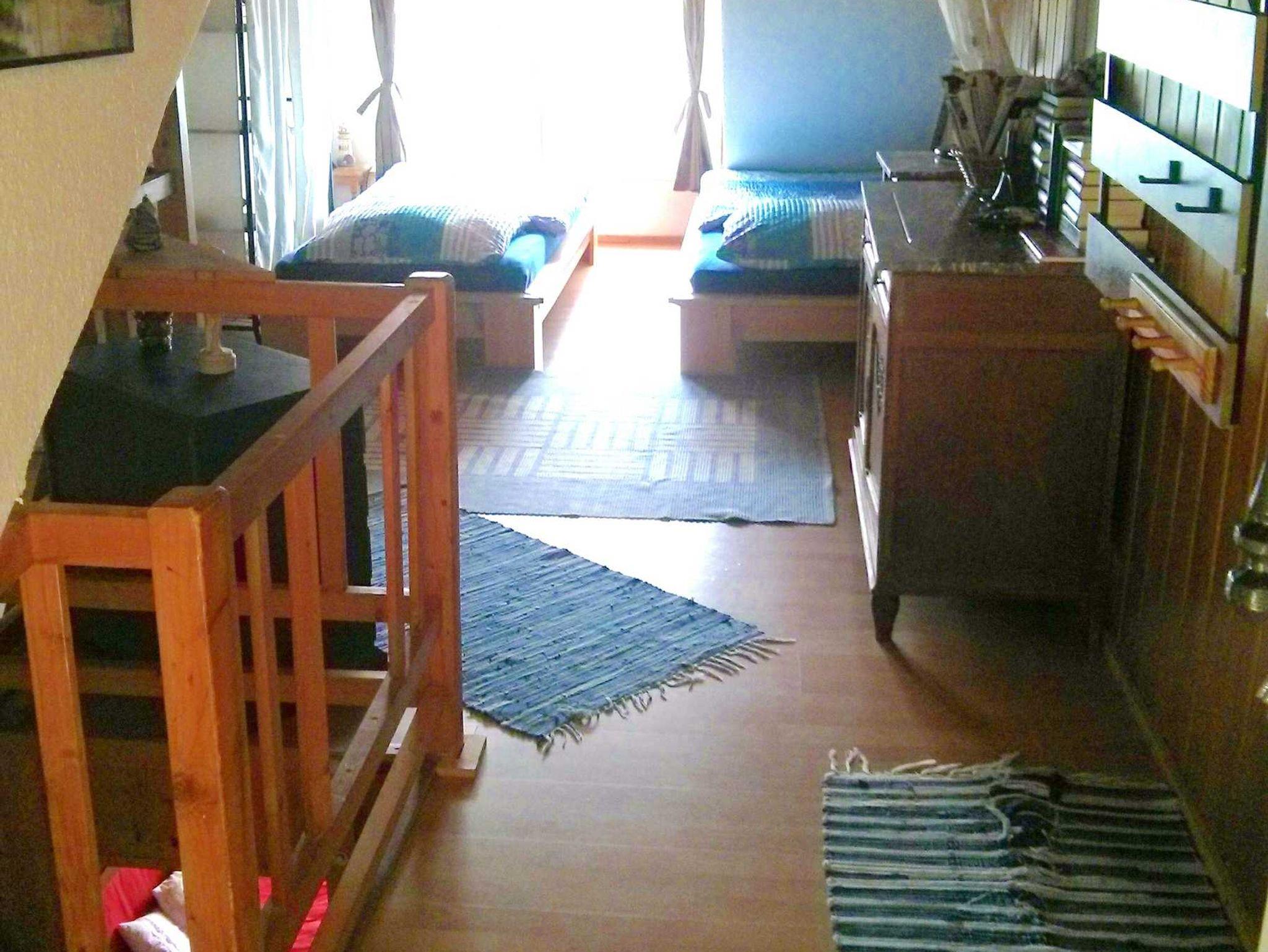 47 m² große Wohnung. Gehobene, gemütliche Ausstattung, in der man sich auch mal bei einem Regentag wohl fühlt. Unsere Küche lässt keine Wünsche offen (Aussage unserer Gäste). Viel Holz. Die urspr. Athmosphäre des Heustalls wurde erhalten.