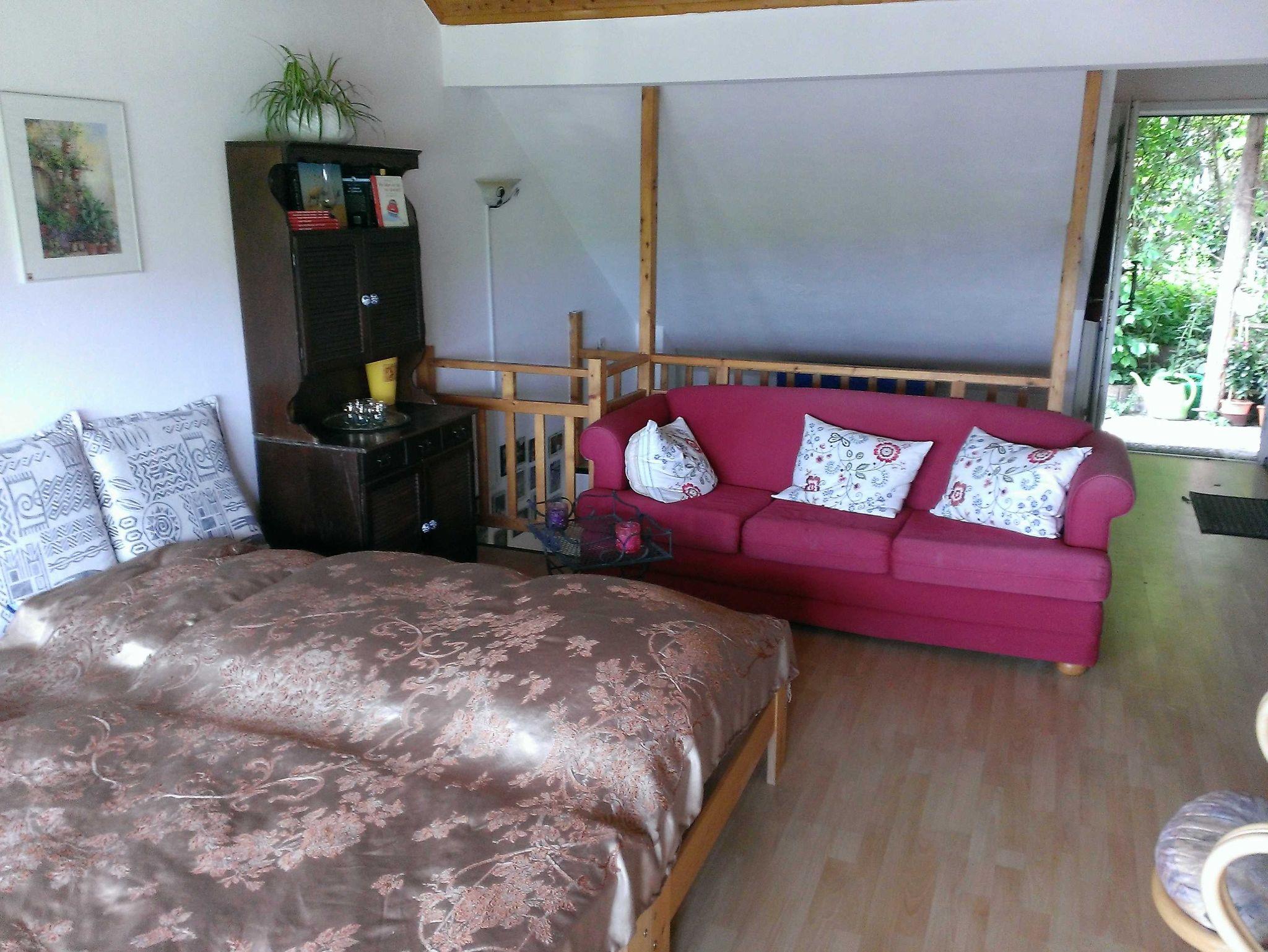 Unser 35 qm. großes Apartment ist sehr liebevoll eingerichtet und verfügt über neueste Technik (WLAN, FLAT-TV, Telefon etc.). Ein Teil der Bruchsteinwand wurde erhalten. Ansonsten viel Holz. Balkon mit Möbeln. Sehr gemütliche Einrichtung mit viel Liebe zum Detail. Bücher zum Schmökern. DVDs für Abende.