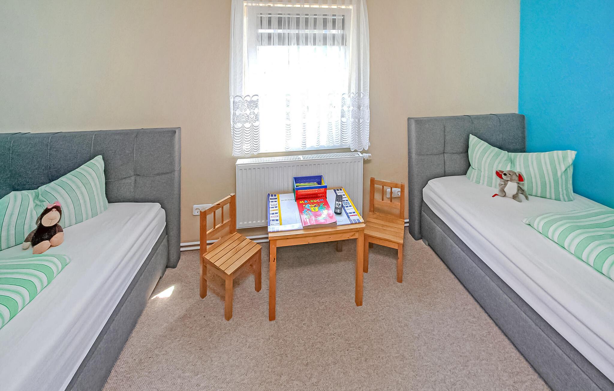 Sommerhuset er beliggende rolig beliggenhed på ejerens cirka 1200 kvadratmeter og fuldt indhegnede grund. Omkring 300 kvadratmeter af dette er til rådighed for feriegæster at bruge. Der er omkring 500 m til søen med badeplads, og omkring 3 km til bager, restaurant og butikker.Sommerhuset, der er omkring 45 kvadratmeter stort, kan rumme op til 4 personer og er gennemgribende renoveret i 2018. Den er udstyret med en stue med polstrede møbler (sovesofa), TV, stereoanlæg, DVD-afspiller og spisebord, et soveværelse med dobbeltseng (gennemgangsværelse) og et børneværelse med 2 enkeltsenge og TV. Til huset hører desuden åbent tekøkken med el-komfur og ovn, køleskab med fryserum, opvaskemaskine, diverse mindre køkkenmaskiner samt badeværelse med brus/toilet og vaskemaskine. Feriehuset har centralvarme. Rygning er kun tilladt udendørs Fås også: højstol til børn, WiFi (begrænset), tørretumbler, overdækket og møbleret terrasse med grill, lille legeplads til børn på ejendommen, cykelkælder, liggestol, parkeringsplads Sengelinned og vand er inkluderet i den samlede pris - og energiforbrug. Håndklæder skal medbringes. Groß Schönfeld er et idyllisk distrikt i kommunen Blankensee midt i Mecklenburgs sødistrikt. Den lille by ligger direkte ved søen Rödliner, en del af naturparken Feldberger Lake Landscape og i landskabsbeskyttelsesområdet Tollensetal. Der er glimrende fiskeri ved Rödliner Sø, som har et stort badeområde og badebro, men sejlads er ikke tilladt på vandet.Den sørige og idylliske region er ideel til vandre- eller cykelture i uforstyrret natur. En bagervogn standser hver dag direkte i Groß Schönfeld. Butikker og en togstation ligger i Blankensee, omkring 3 km væk. Et bageri og en restaurant ligger i Carpin, også omkring 3 km væk. Carpin er også indgangsporten til nationalparken Müritz, og beboelsesbyen Neustrelitz ligger omkring 17 km væk. Byen er det kulturelle centrum i Mecklenburg Lake District takket være dens forskellige arrangementer, udstillinger og teater- og danseforestillinger. Arkitektonisk er den historiske slotspark med Louisentemplet, slotskirsebæret eller orangeriet særlige attraktioner. I Neustrelitz er der forskellige caféer, restauranter og butikker og en zoologisk have med over 400 dyr.