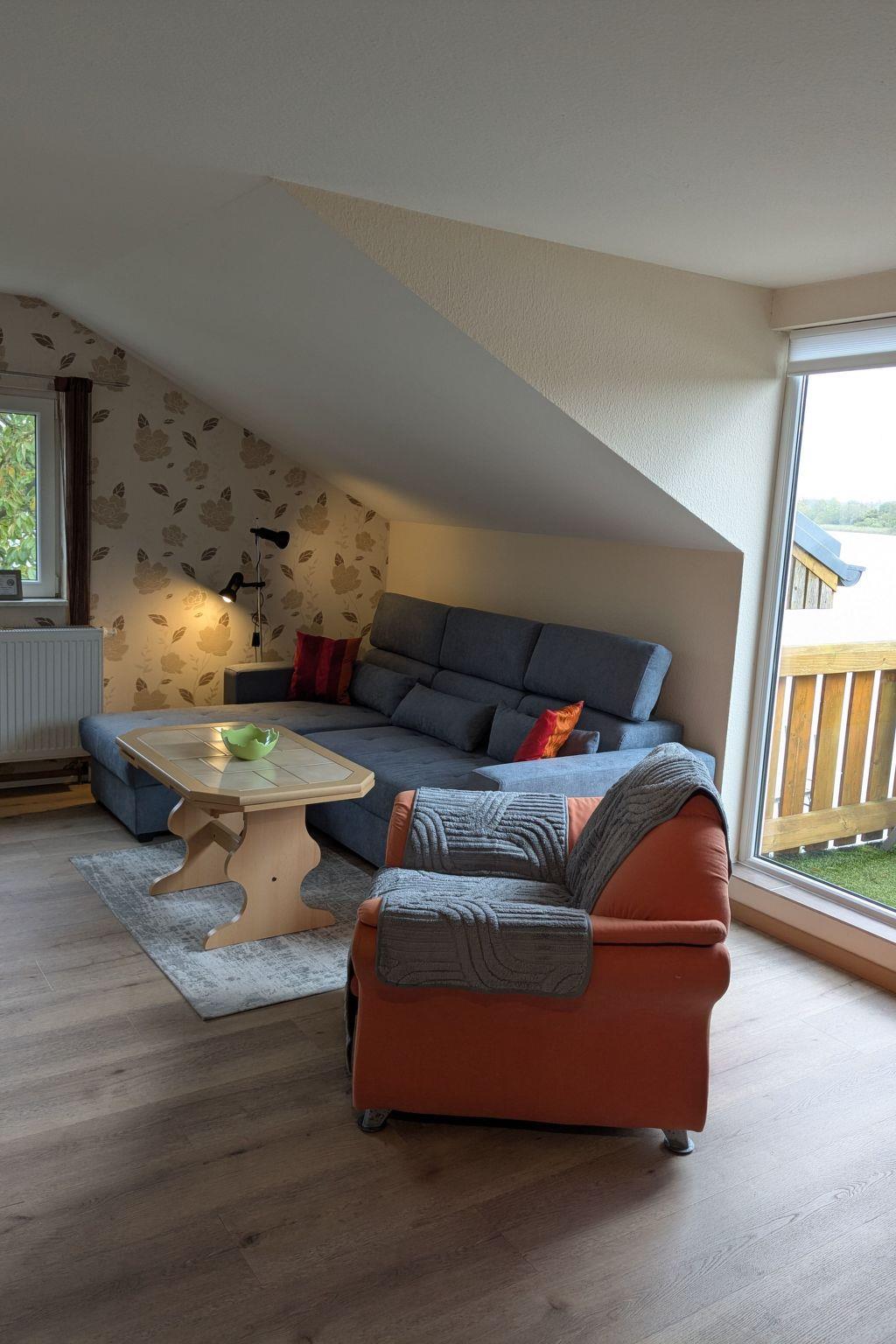 The apartment was newly built and is on the first floor. It has a bedroom with a double bed (180 x 200cm) and a generous living room-kitchen, equipped with a fridge and freezer compartment, a coffee machine, microwave and kettle. You can relax on the sofa in the living room and read, listen to music or watch TV. The modern bathroom has a shower, WC and washbasin. High-speed wireless Internet access is available. Central heating is available if required.