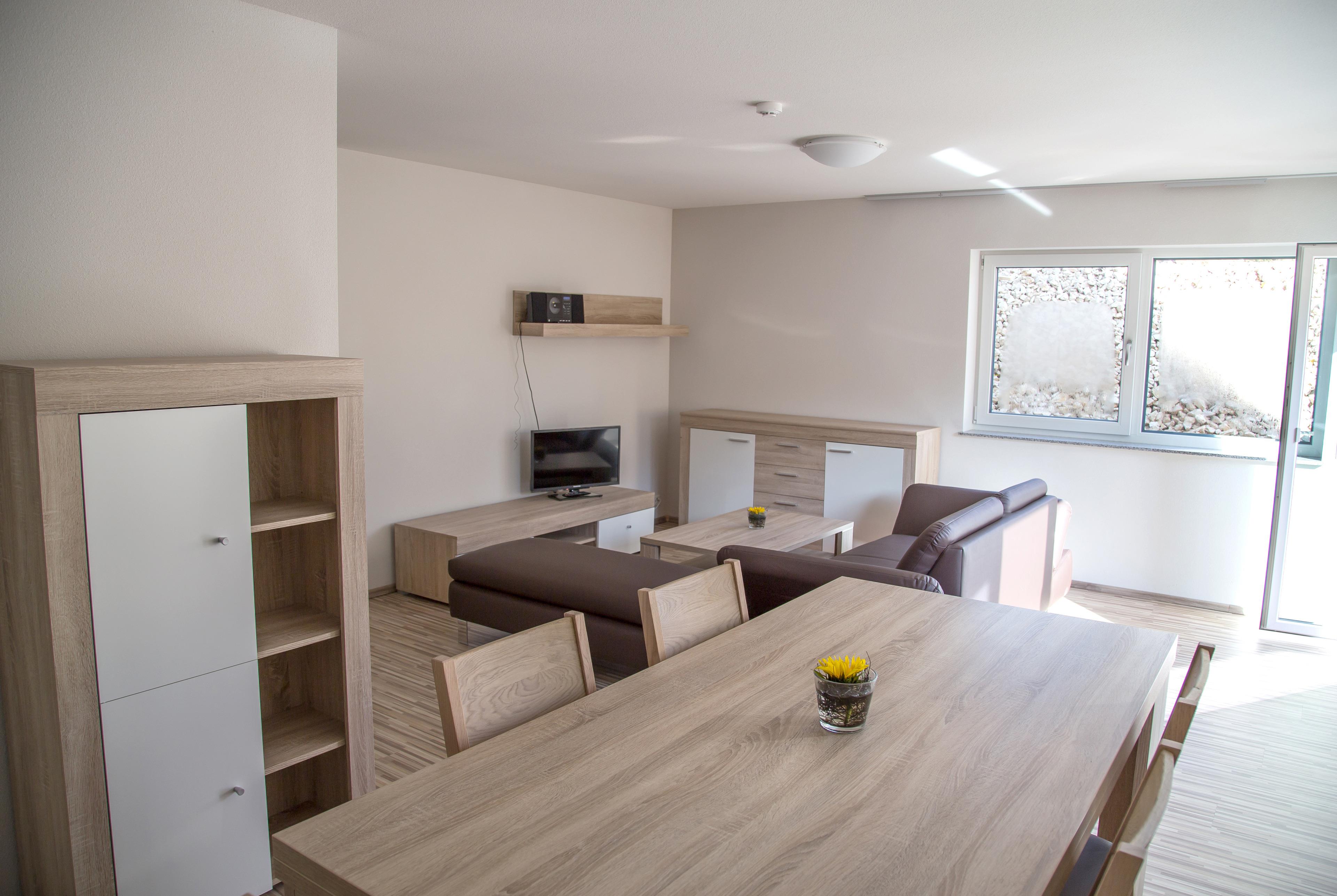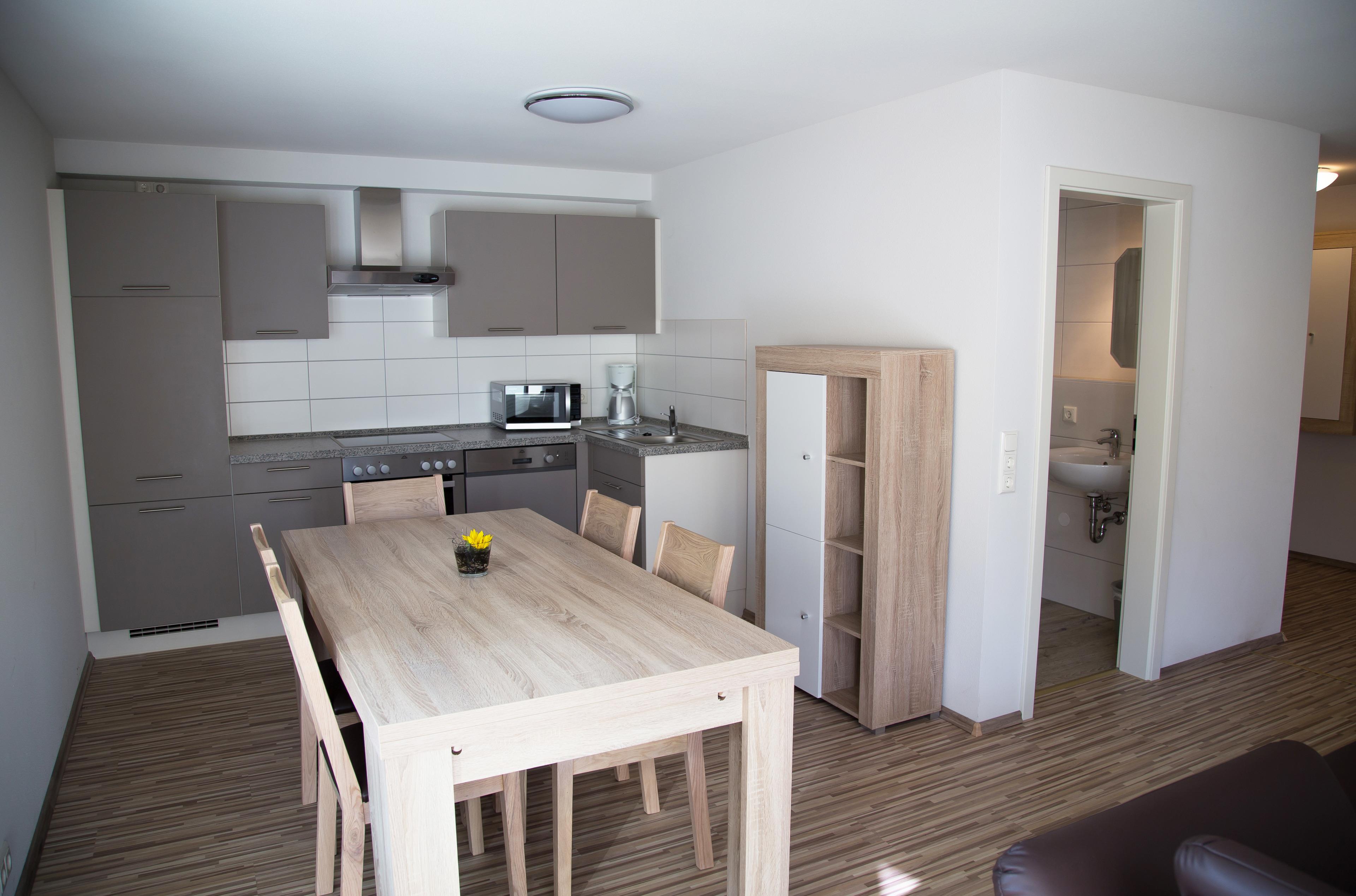In dem neuen Gebäude von 2014 befinden sich großzügige, modern und zeitlos eingerichtete Wohnungen mit vollwertigen Küchen im Wohn- und Essbereich. Die Schlafzimmern haben Einzelbetten die verbindbar sind. Alle Wohnungen sind mit einem Bad ausgestattet mit bodentiefer Dusche, WC und Waschgelegenheit. Jede Wohnung verfügt über eigenen Balkon mit Sitzgelegenheit.