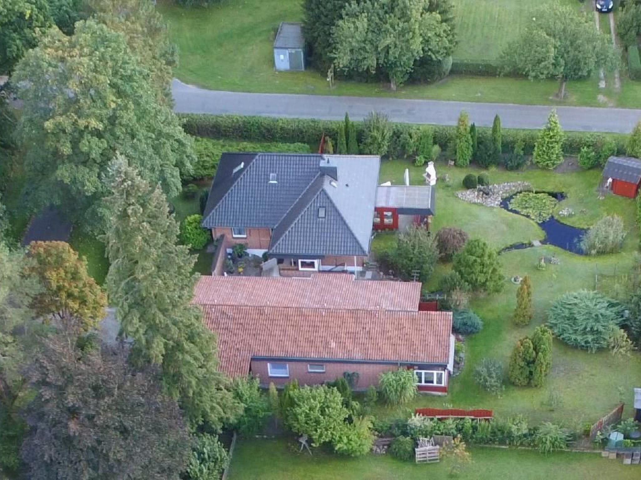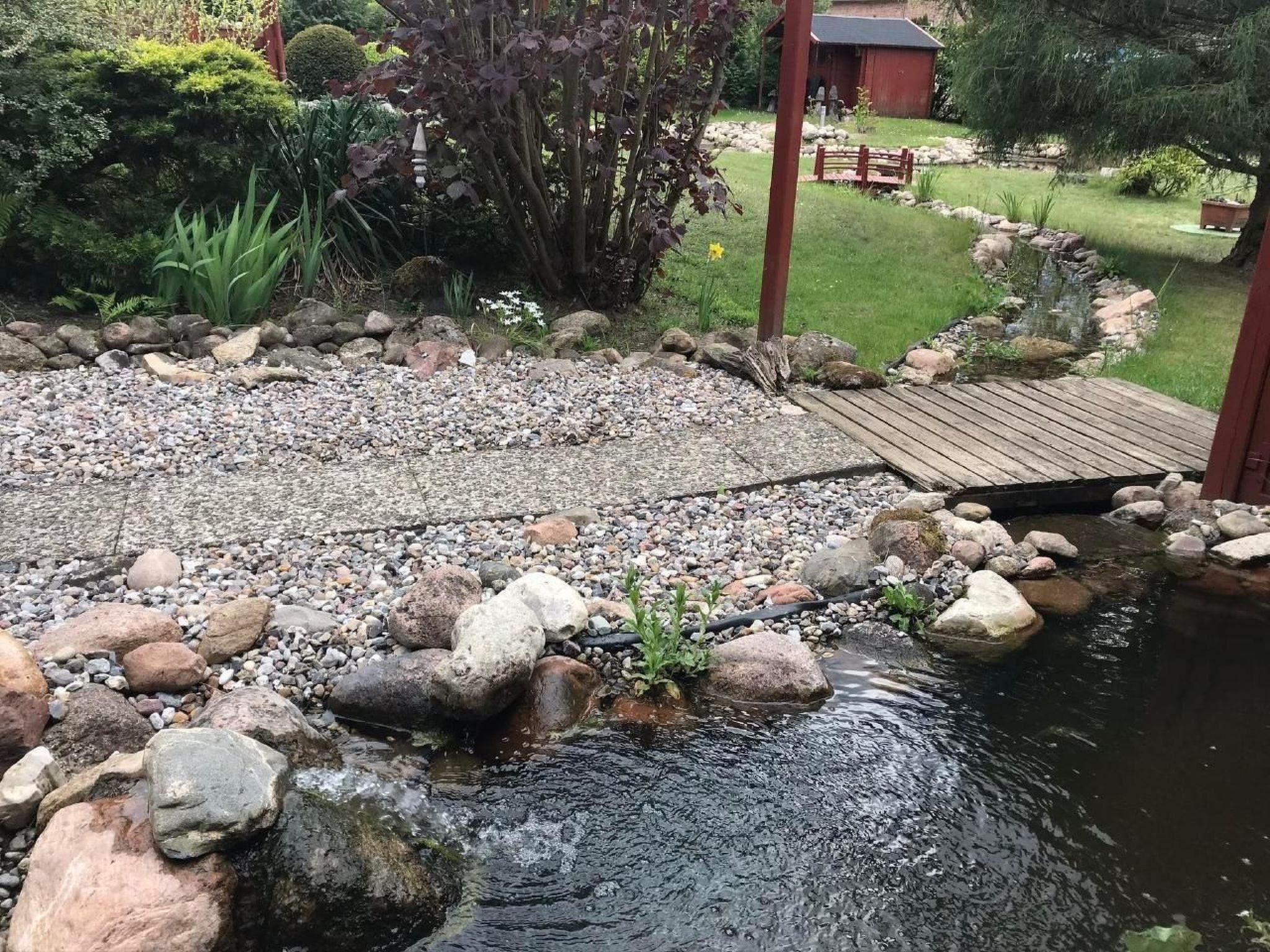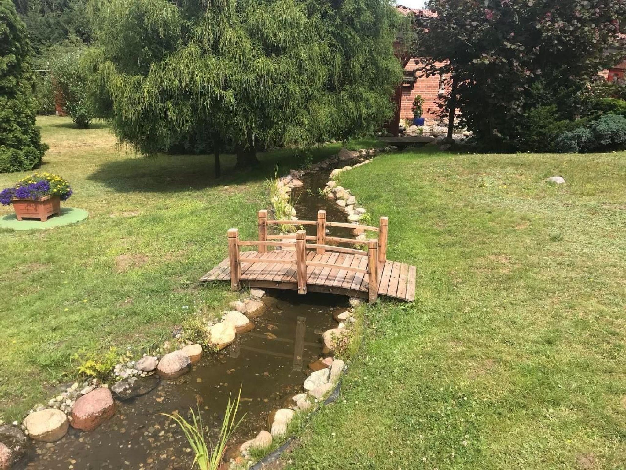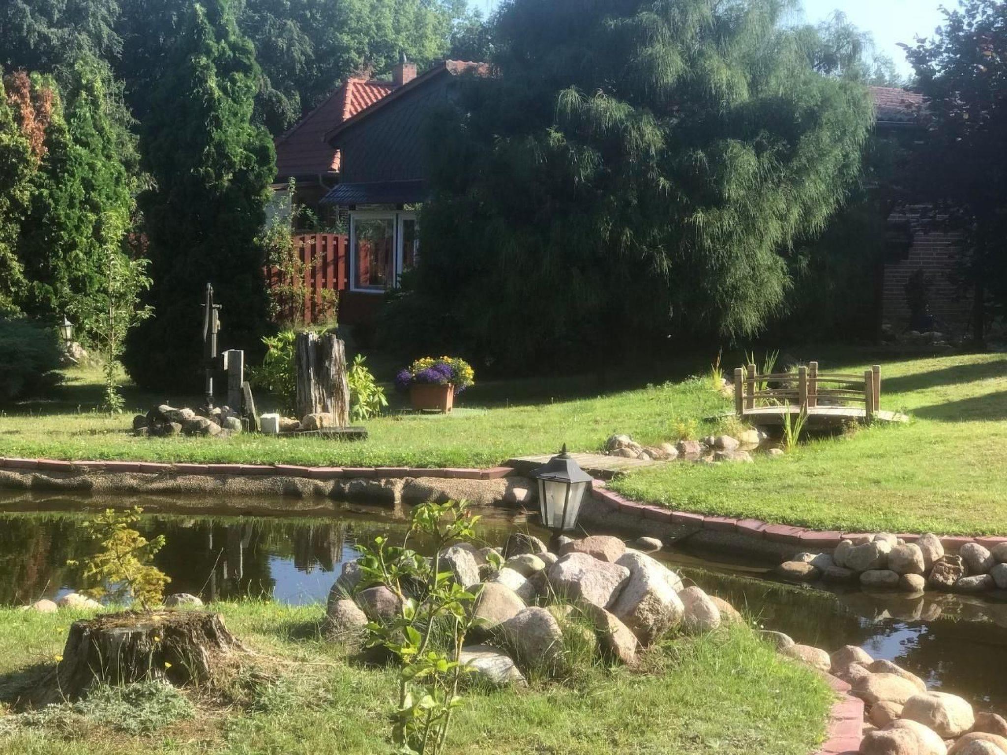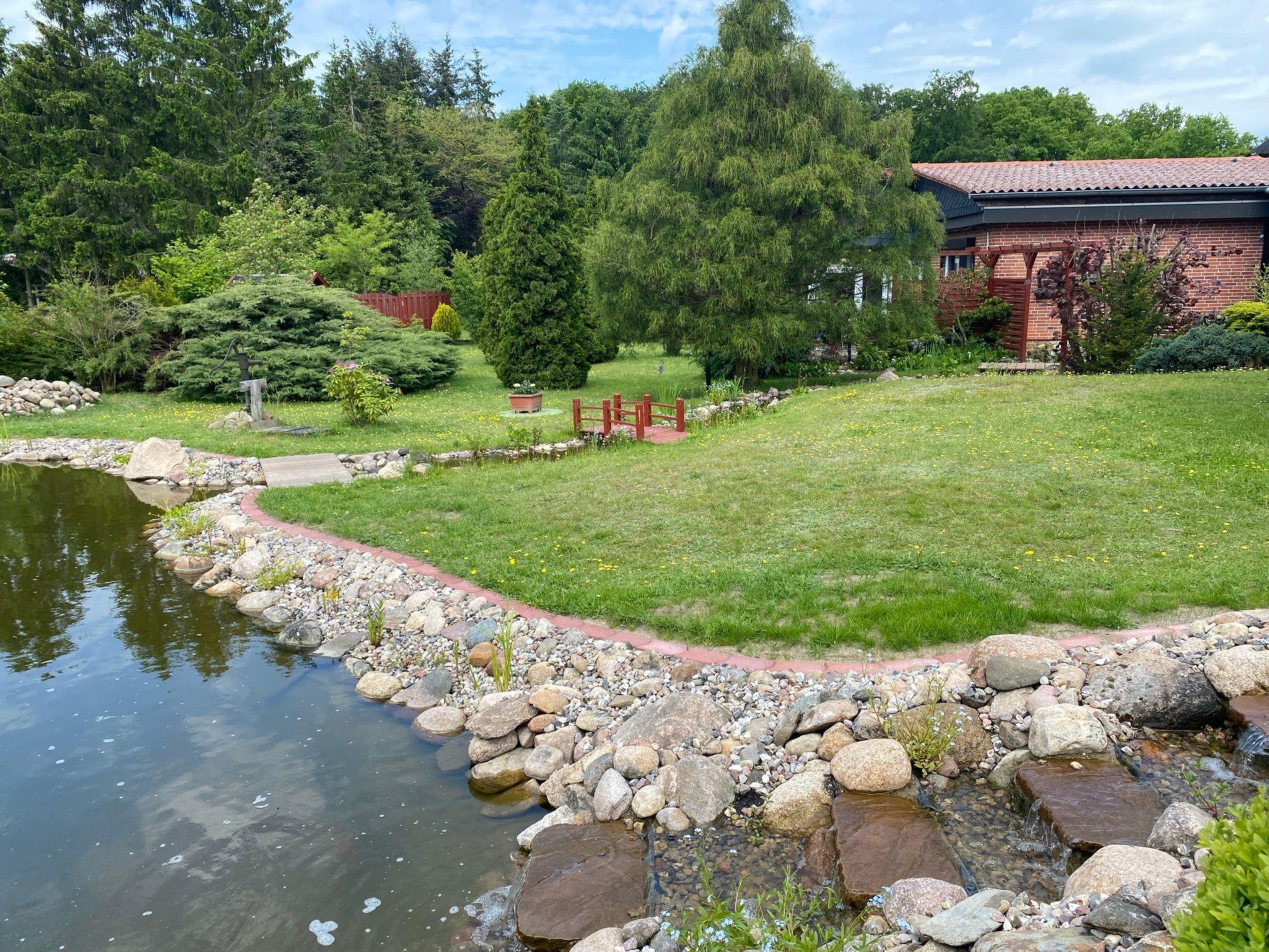 You can reach the large, partially covered and wind-protected sun terrace through the living room. The door has an insect screen. Start your day on the terrace with a delicious homemade breakfast in the open air or round off eventful days with a cosy barbecue. Thanks to the partial roofing, you will find a dry spot here even in rainy weather. There are two seating areas, a swing and loungers. A car parking space is available directly in front of the holiday home. There is also a shared sunbathing lawn, garden pond and other amenities to make you feel at home. In the large garden there is a landscaped pond and an artificial watercourse. You can make interesting observations there. Games such as badminton can be played in the street, as there is almost no car traffic in the cul-de-sac. Of course, the lawn is ideal for sunbathing. Two bicycles are available for holiday guests. This gives you the opportunity to use the two bicycles in the holiday home for short trips, for example to eat at the Bleckeder Brauhaus or for a delicious ice cream in the ice cream parlour in the town centre.