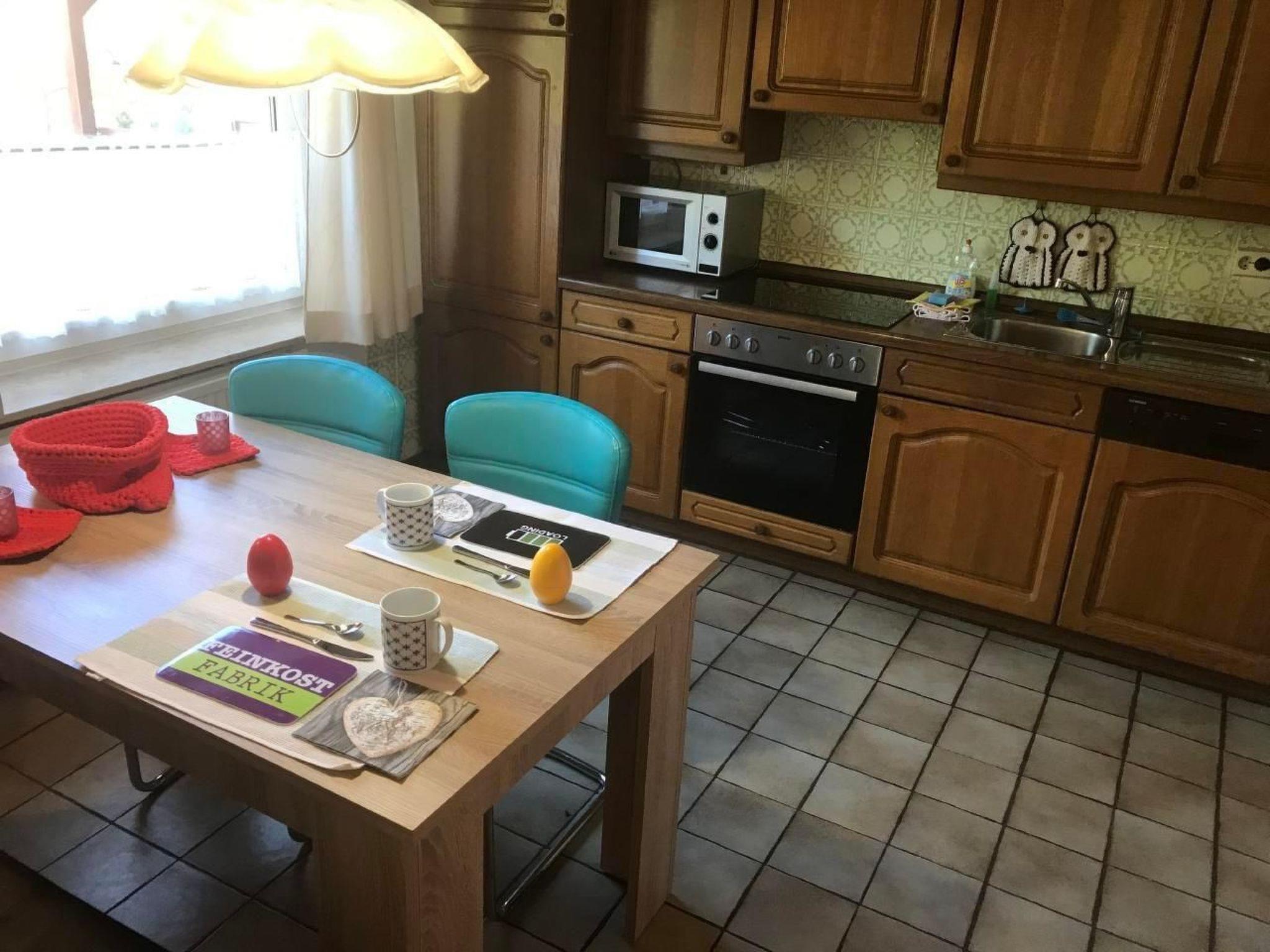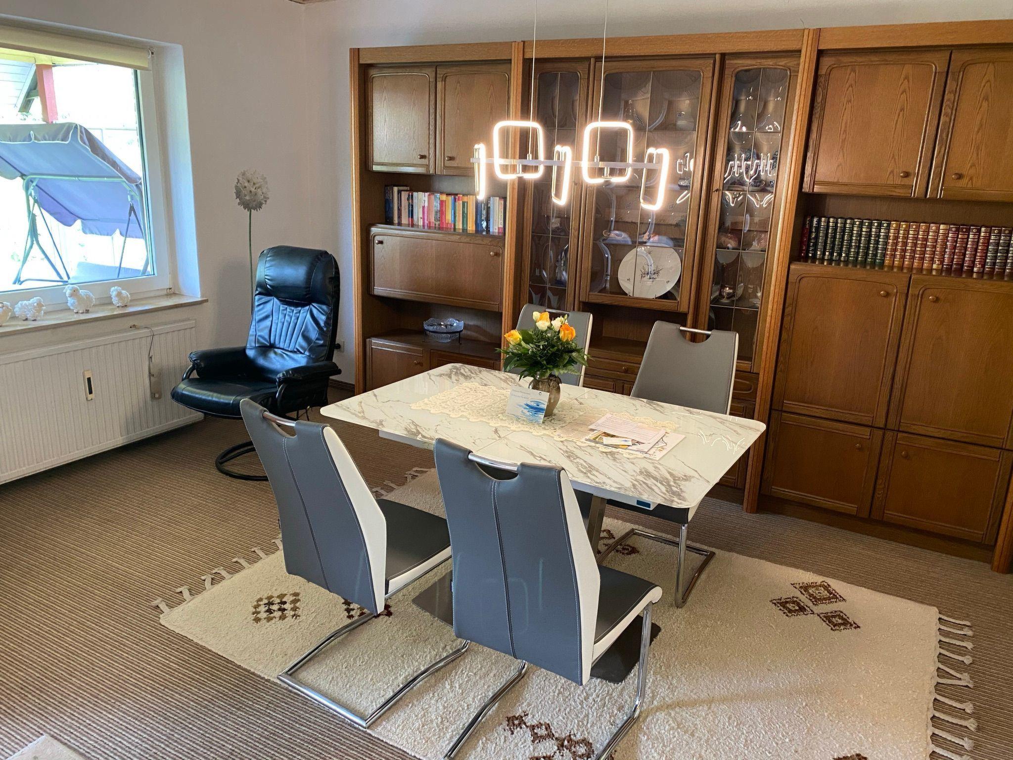The solidly built holiday home has gas central heating and therefore ensures a pleasant stay on cooler days. The accommodation is perfect for two people. Additional occupancy (4 people) is possible. The house is accessible almost at ground level, only a small, flat step leads into the porch and then into the hallway. All rooms are accessible from the hallway, including the bedroom, which can be fully darkened and has a large double bed, shelves and lighting and a large wardrobe. The large feel-good living room with sofa bed (two additional beds), dining area, massage chair, radio, satellite TV, flat screen and living room cupboard invite you to linger. A bathroom with shower, washbasin (lowered for the disabled), mirror cabinet and WC is also available. An outside window with insect screen ensures carefree ventilation. To make your stay as pleasant as possible, the landlords have bath towels, hand towels and bathrobes ready for you. The fully equipped kitchen is fully stocked with all important kitchen utensils and leaves nothing to be desired. In addition to a dishwasher, there is also a fridge with a small freezer, a coffee machine, kettle, toaster, electric hob with oven, plenty of pots, pans and crockery and much more. There is also a seating area in the kitchen. There is a washing machine and tumble dryer in a room off the kitchen. The house has a free landline telephone connection and WLAN can be activated on request.