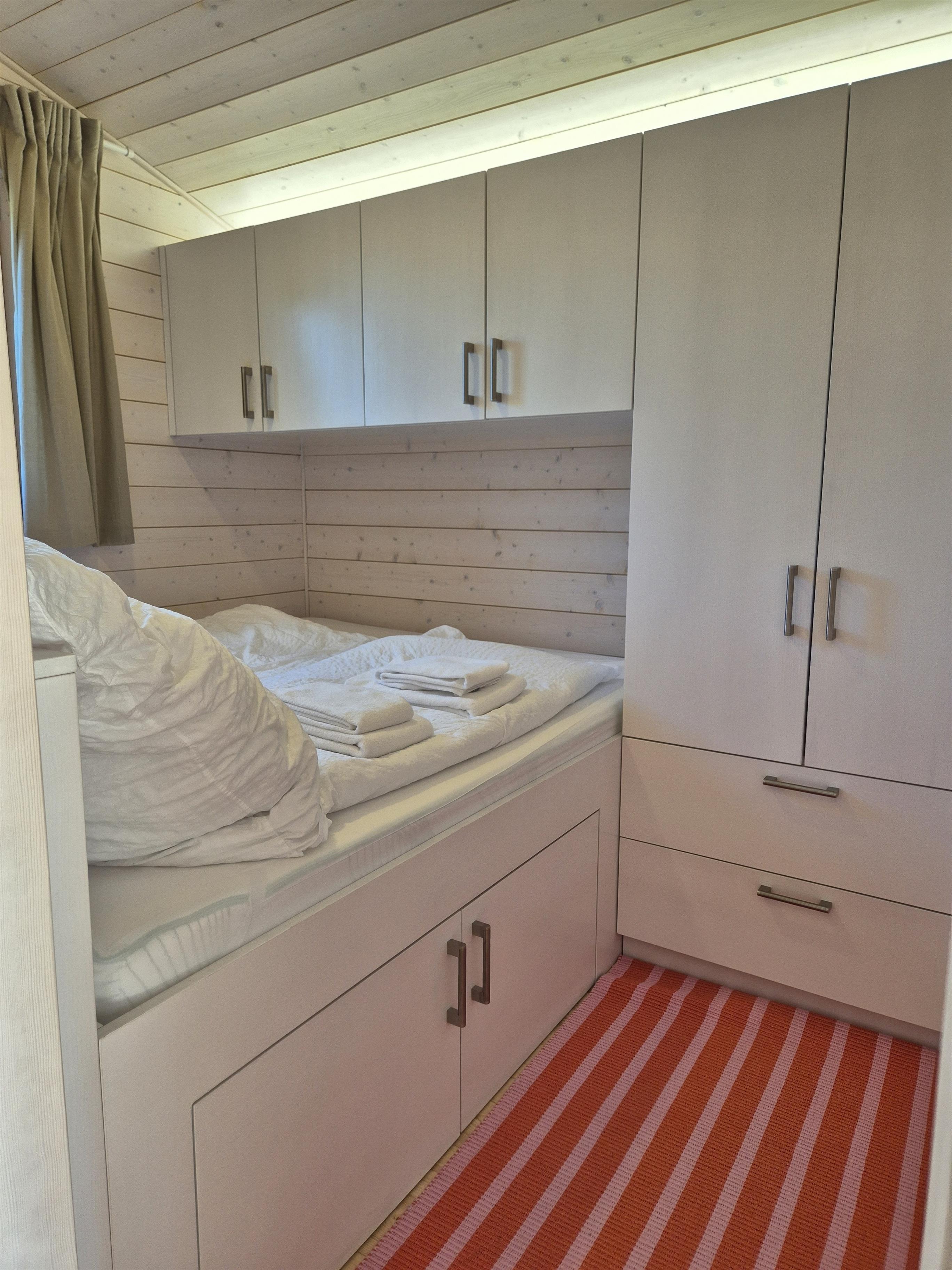 1 Schlafzimmer mit Doppelbett (160x200m) und reichlich Stauraum sowie 1 Schlafsofa im Wohnbereich.