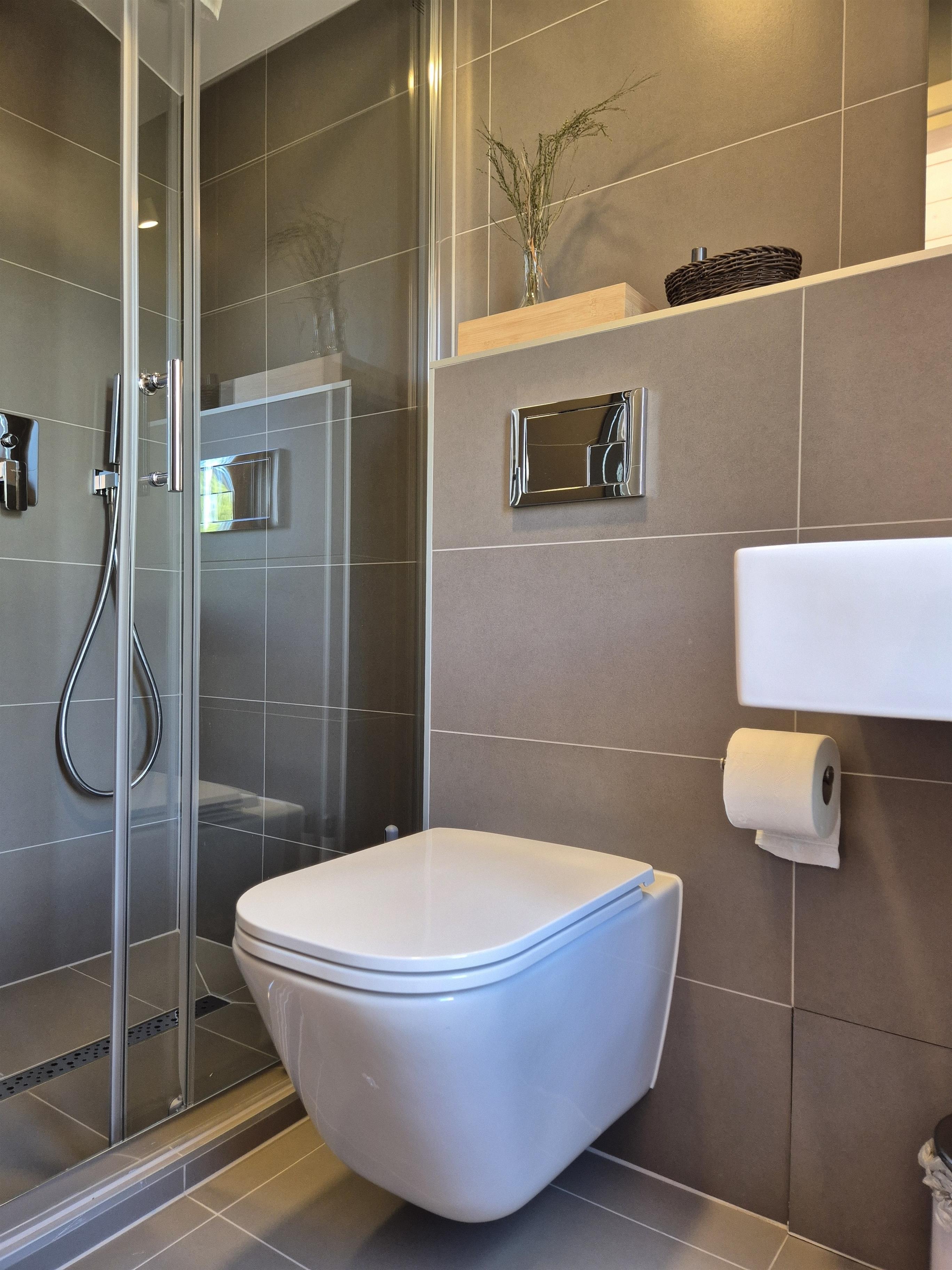 1 Badezimmer mit WC, Regendusche und Haartrockner