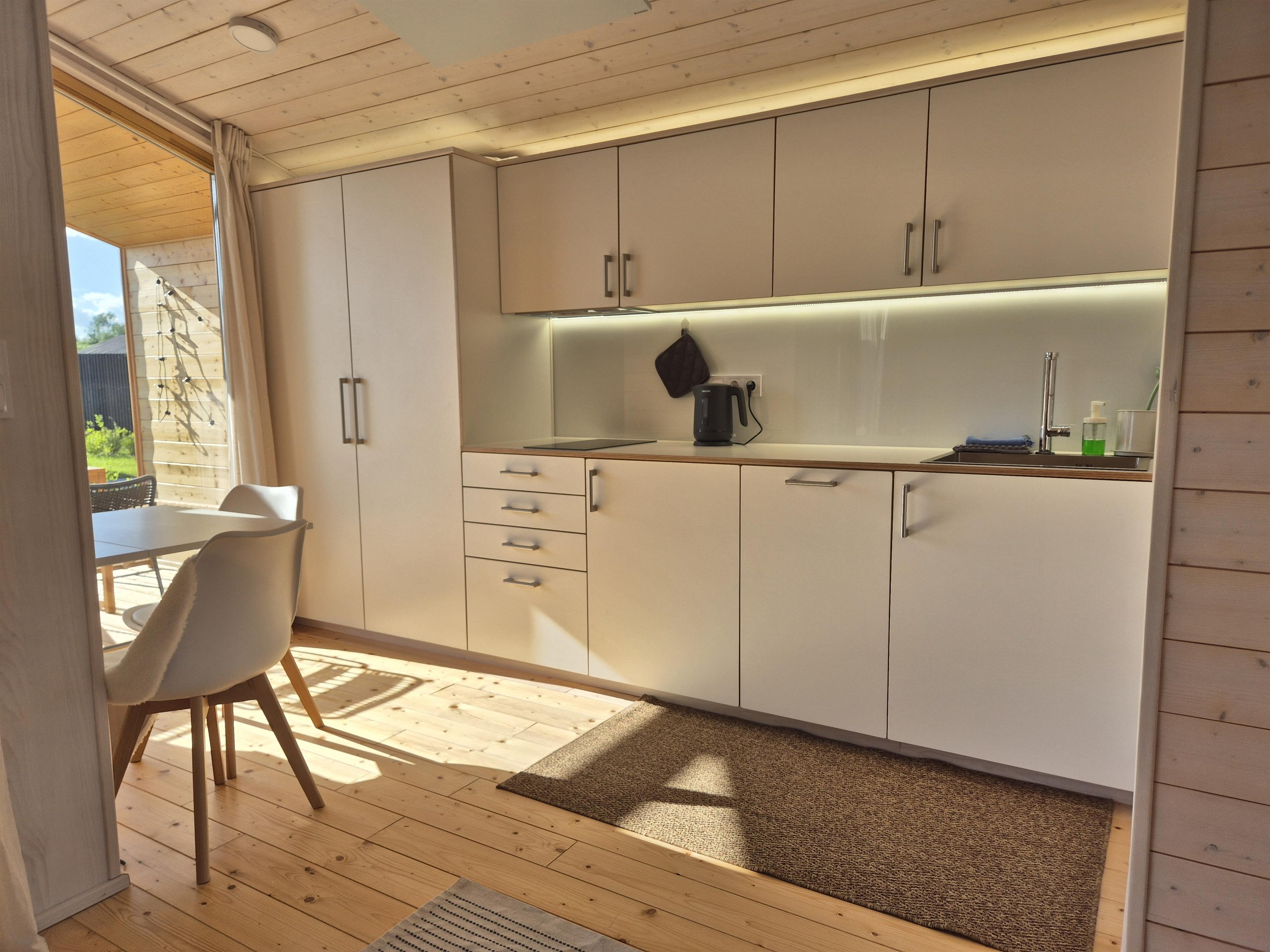 Neben dem kostenlosem WLAN und dem Smart-TV im Wohnbereich ist das Häuschen ausgestattet mit: