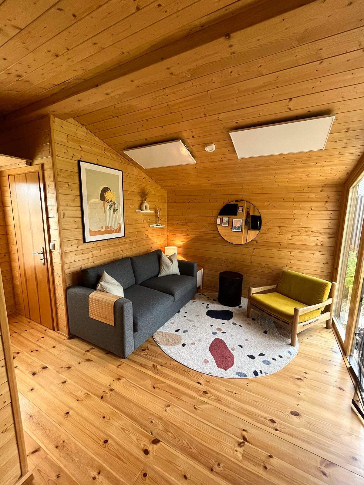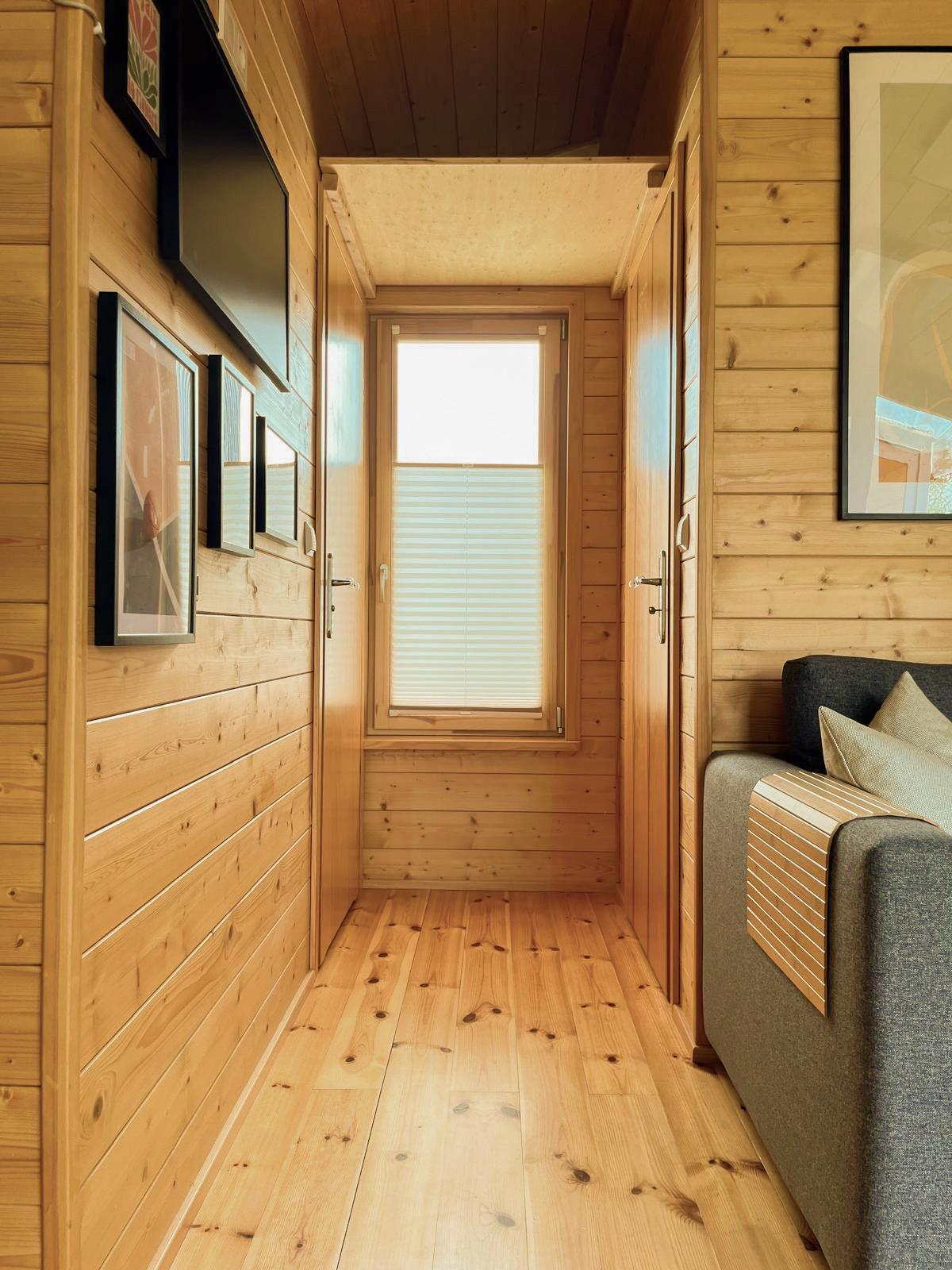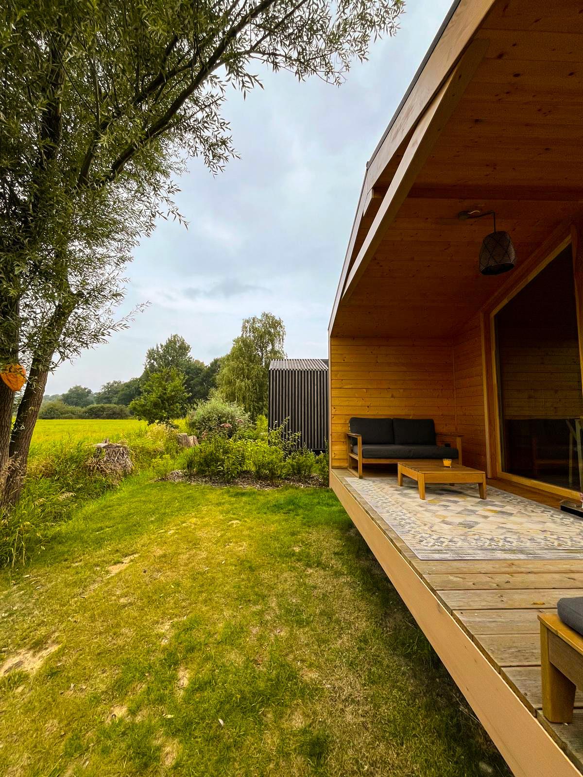 Abends können Sie die Ruhe des eigenen Gartens genießen, umgeben von Natur und mit Blick ins Grüne. Ob Sie den Tag bei einem Glas Wein oder mit einem entspannten Film ausklingen lassen, unser Tiny House bietet Ihnen die perfekte Kulisse für Ihren Urlaub.