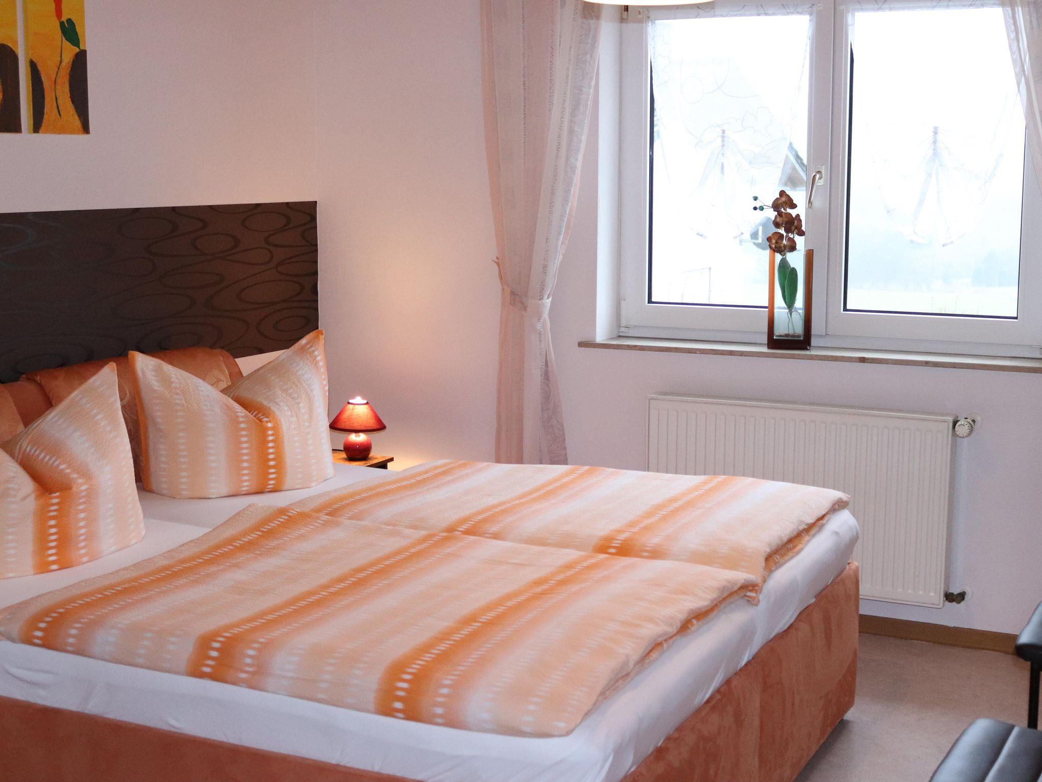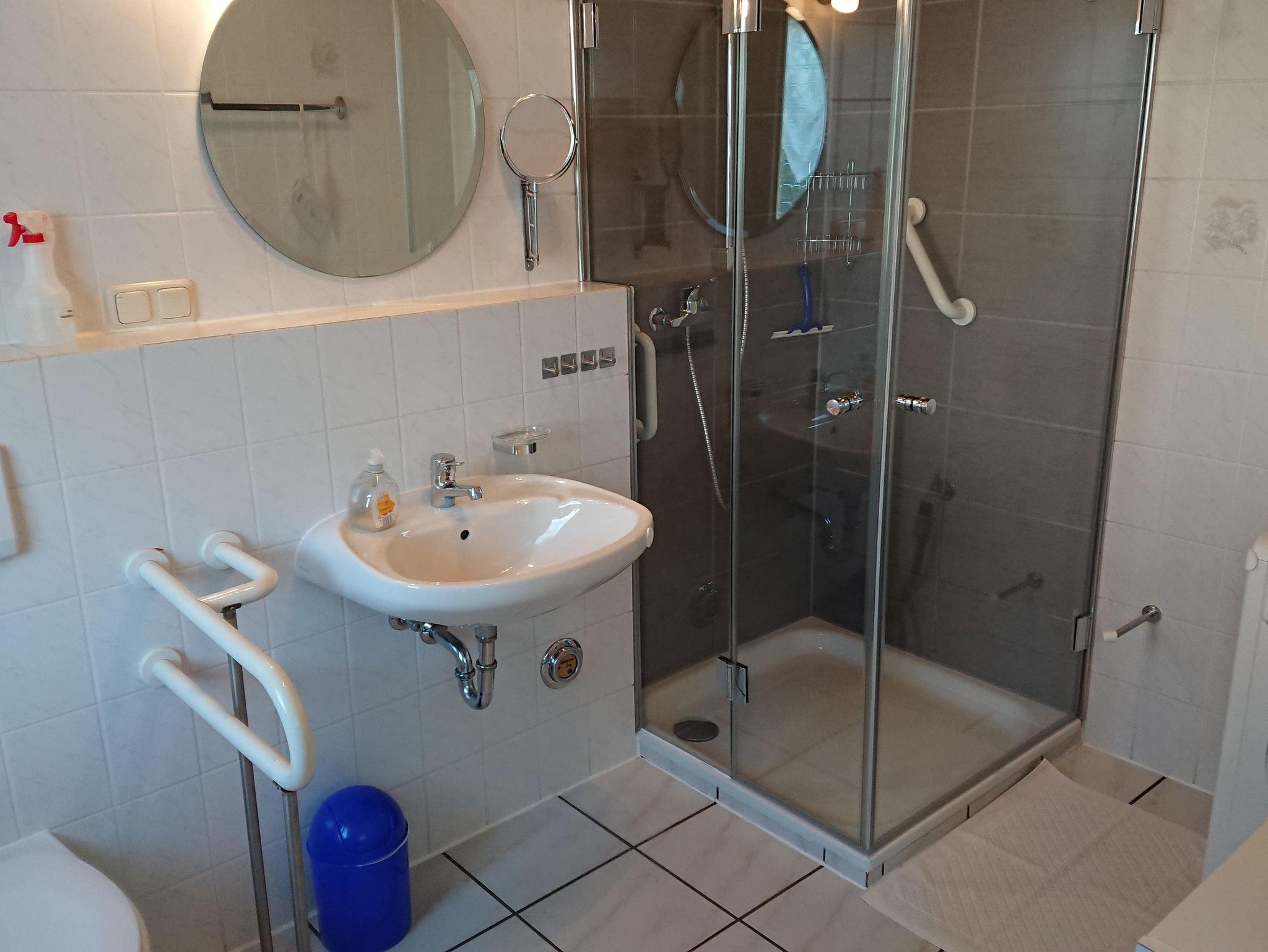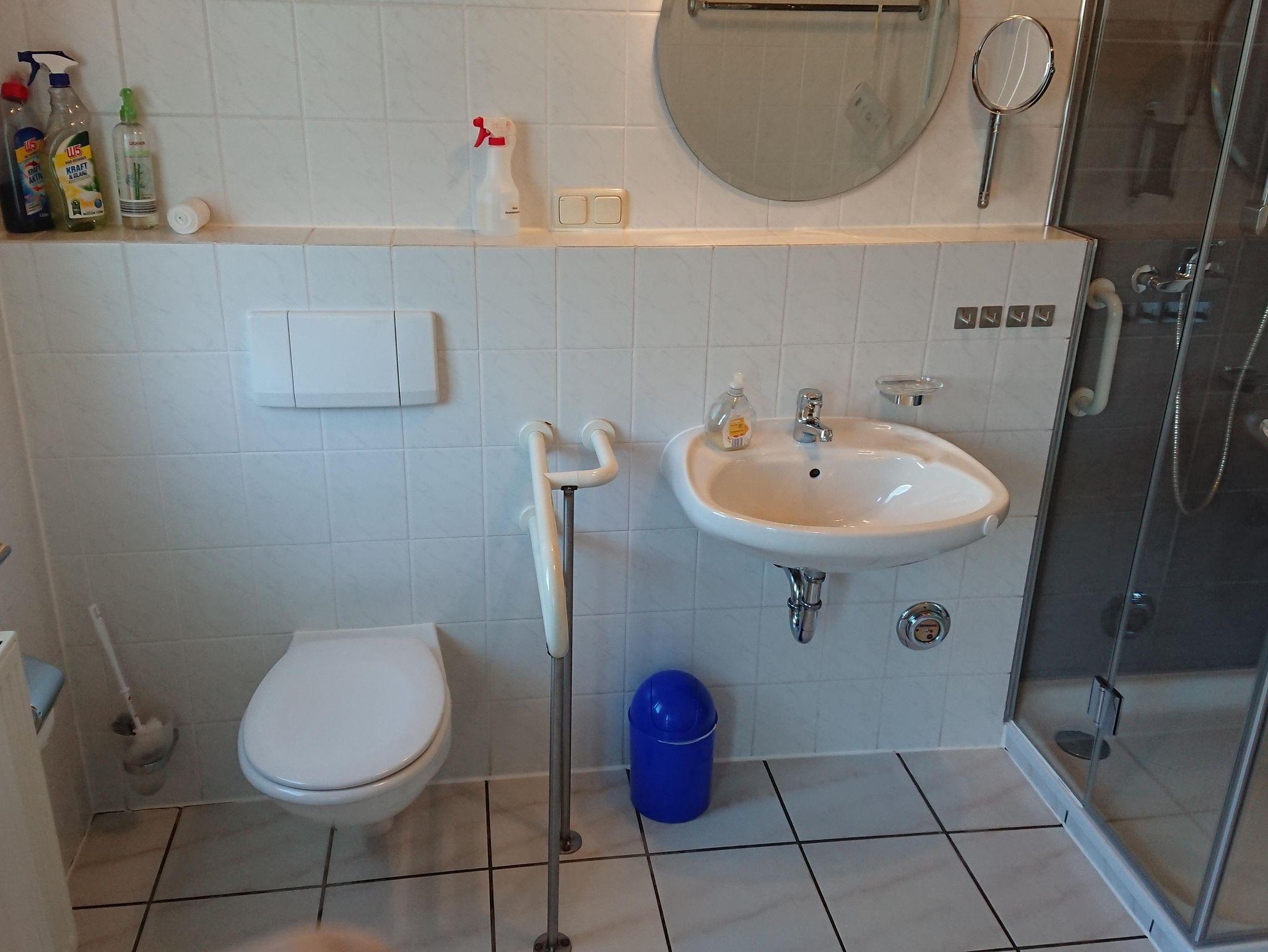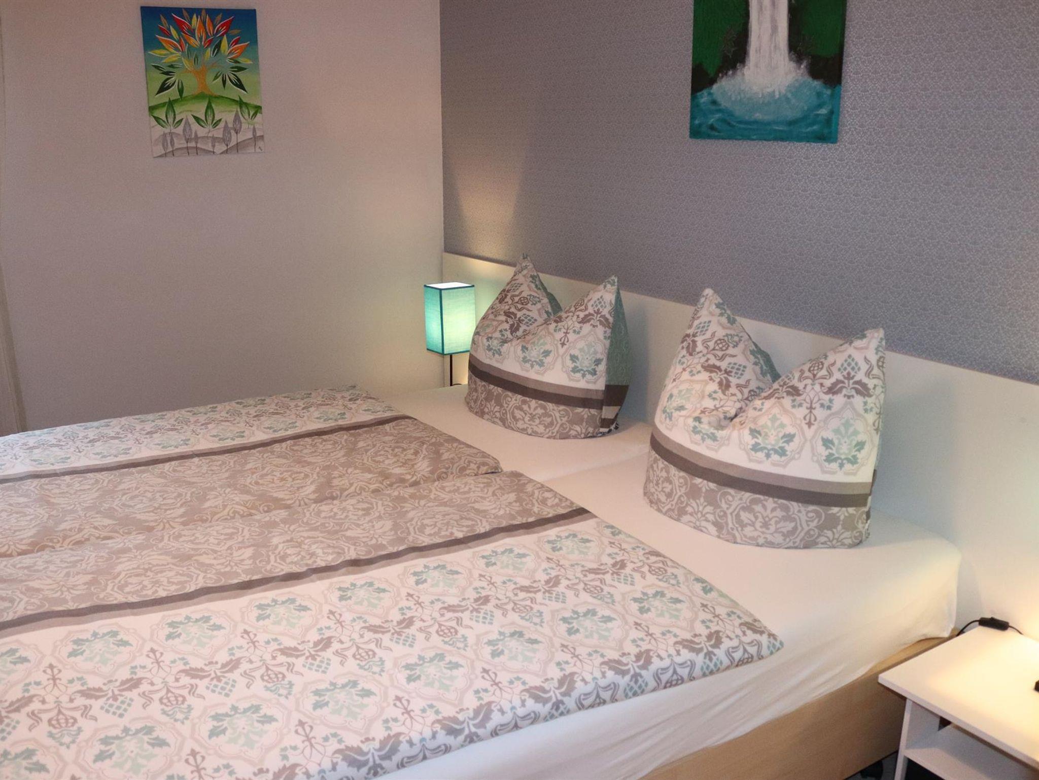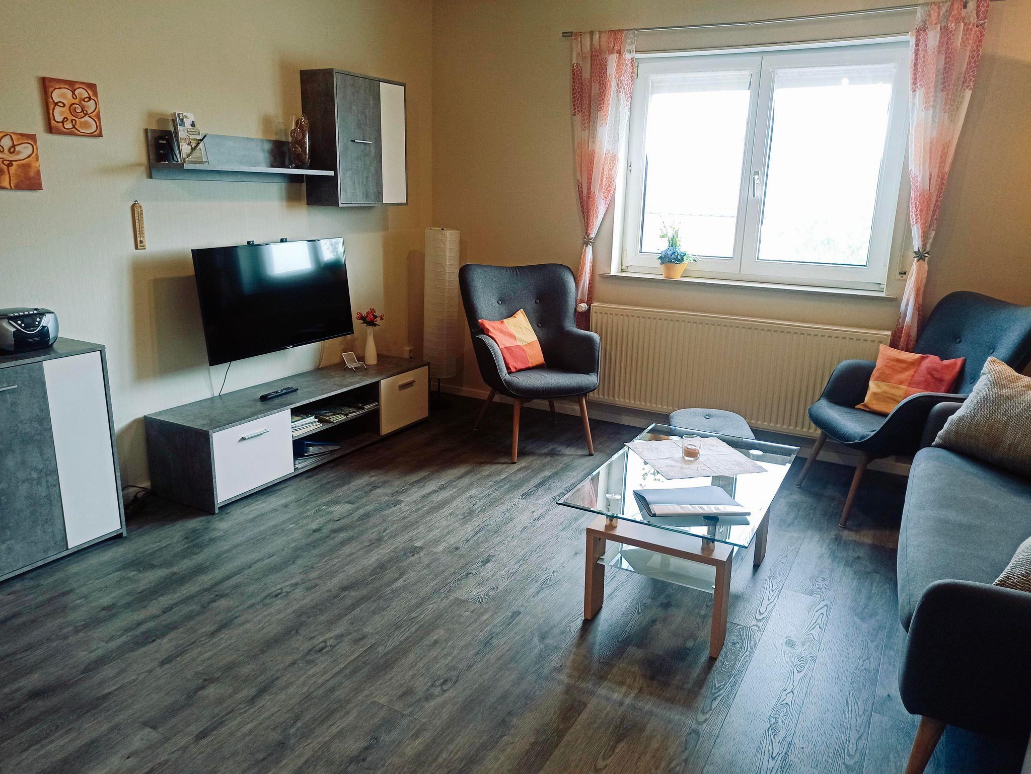 Die ebenerdige und behindertengerechte Wohnung bietet auf ca. 60 m² eine Wohnküche mit Küchenzeile, Essecke und Couchgarnitur, Flachbildfernseher mit Sat-TV, Radio mit CD-Player, W-Lan, 1 Schlafzimmer mit 1 Boxspringbett 180 x 200 cm, 1 Schlafzimmer mit 2 Comfort - Betten jeweils 90 x 200 cm ( können auch als Doppelbett zusammen gestellt werden) Bad mit Dusche/WC, Abstellraum und eine Waschmaschine.