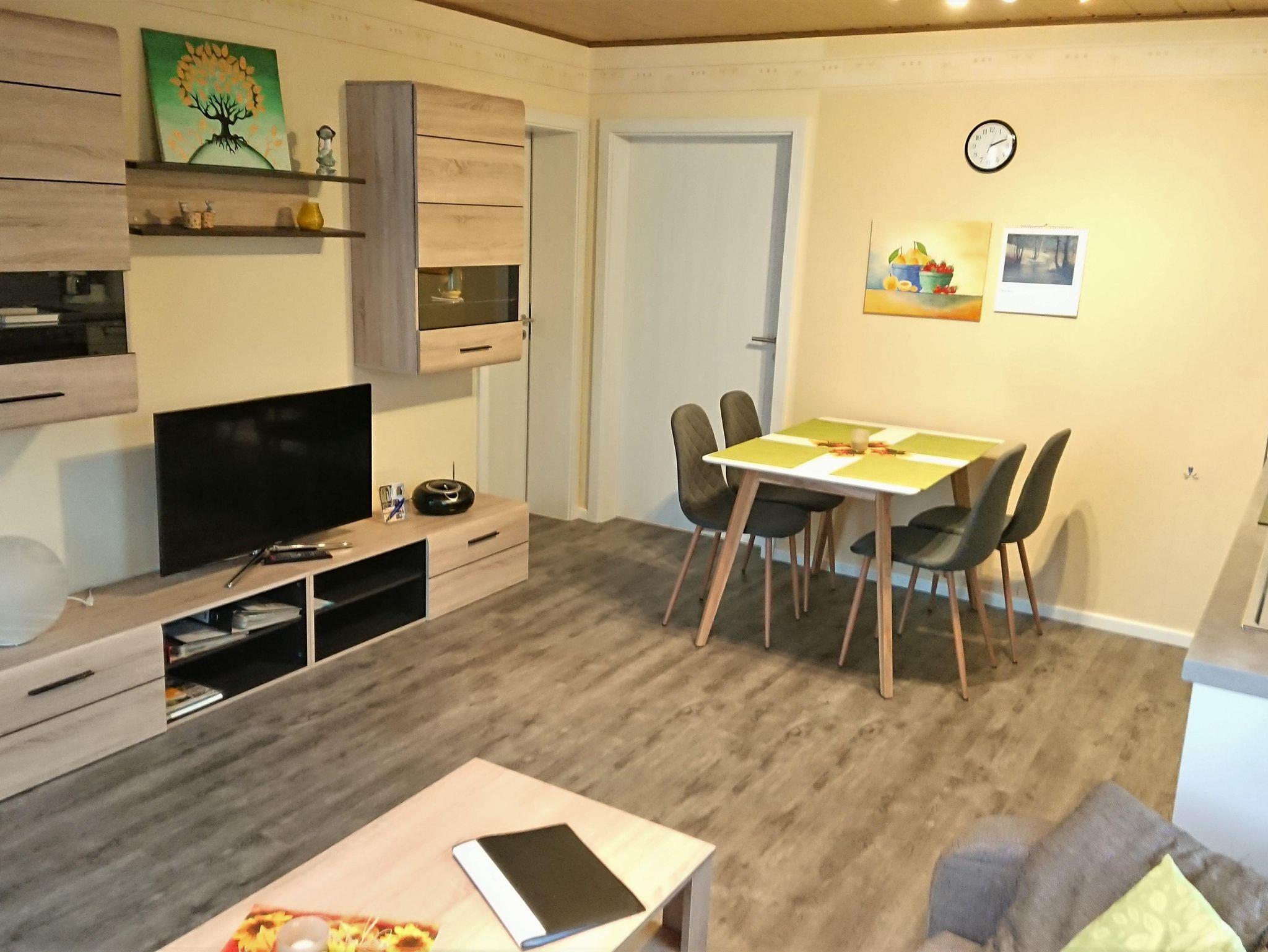 Die ebenerdige und behindertengerechte Wohnung bietet auf ca. 50 qm eine Wohnküche mit Küchenzeile, Essecke und Couchgarnitur, Flachbildfernseher mit Sat-TV, Radio mit CD-Player, W-Lan, 1 großes Schlafzimmer mit 1 Boxspringbett 180 x 200 cm + 1 Boxspringbett 90x 200 cm, 1 Bad mit Dusche/WC und Waschmaschine, 1 kl.Abstellraum