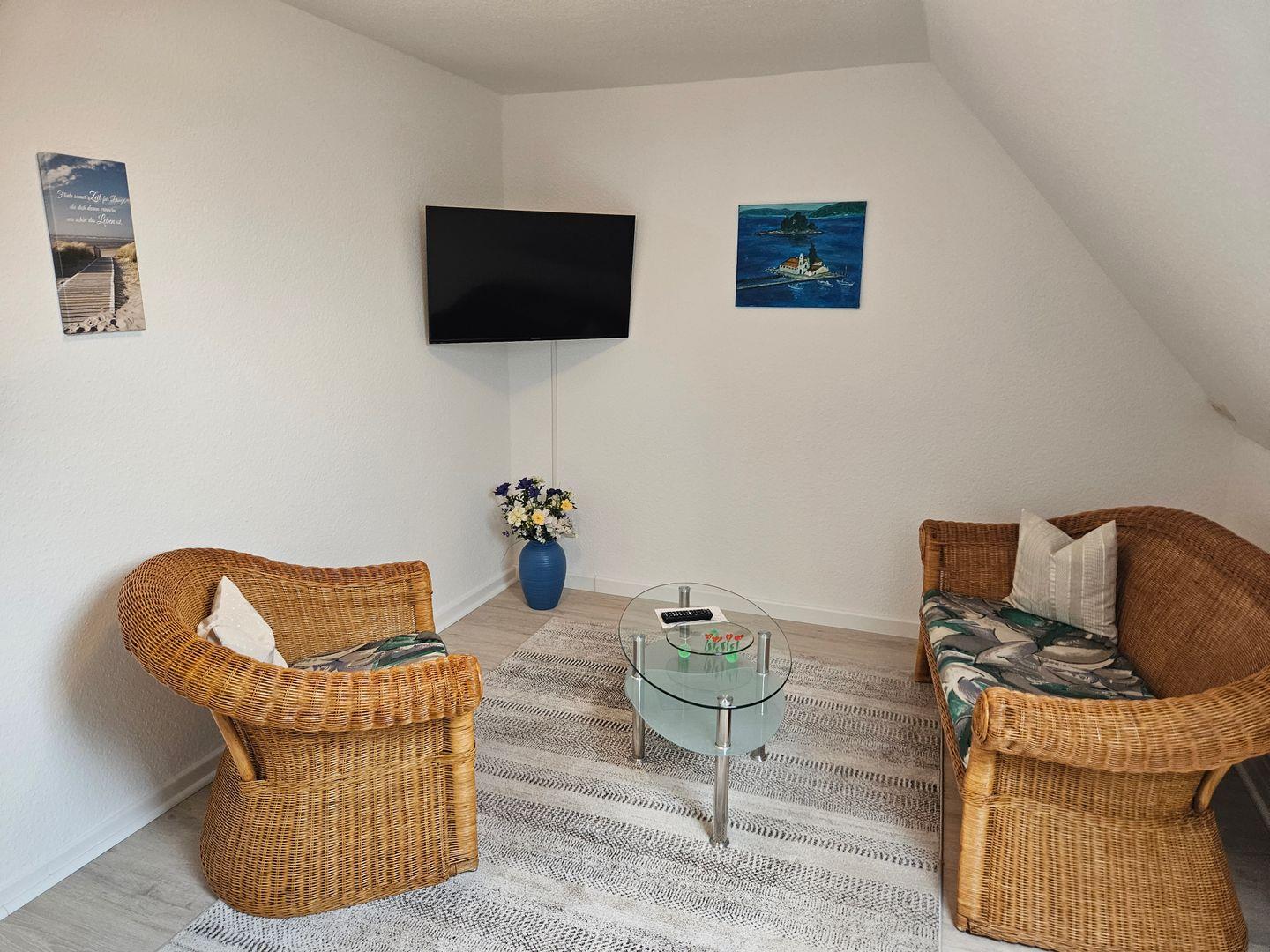 Der Entspannungsraum mit zusätzlichem TV-Gerät, lädt zum Verweilen ruhiger Stunden ein, dieser lässt sich jedoch auch ausgezeichnet als Räumlichkeit für z.B. Gesellschaftsspiele nutzen.