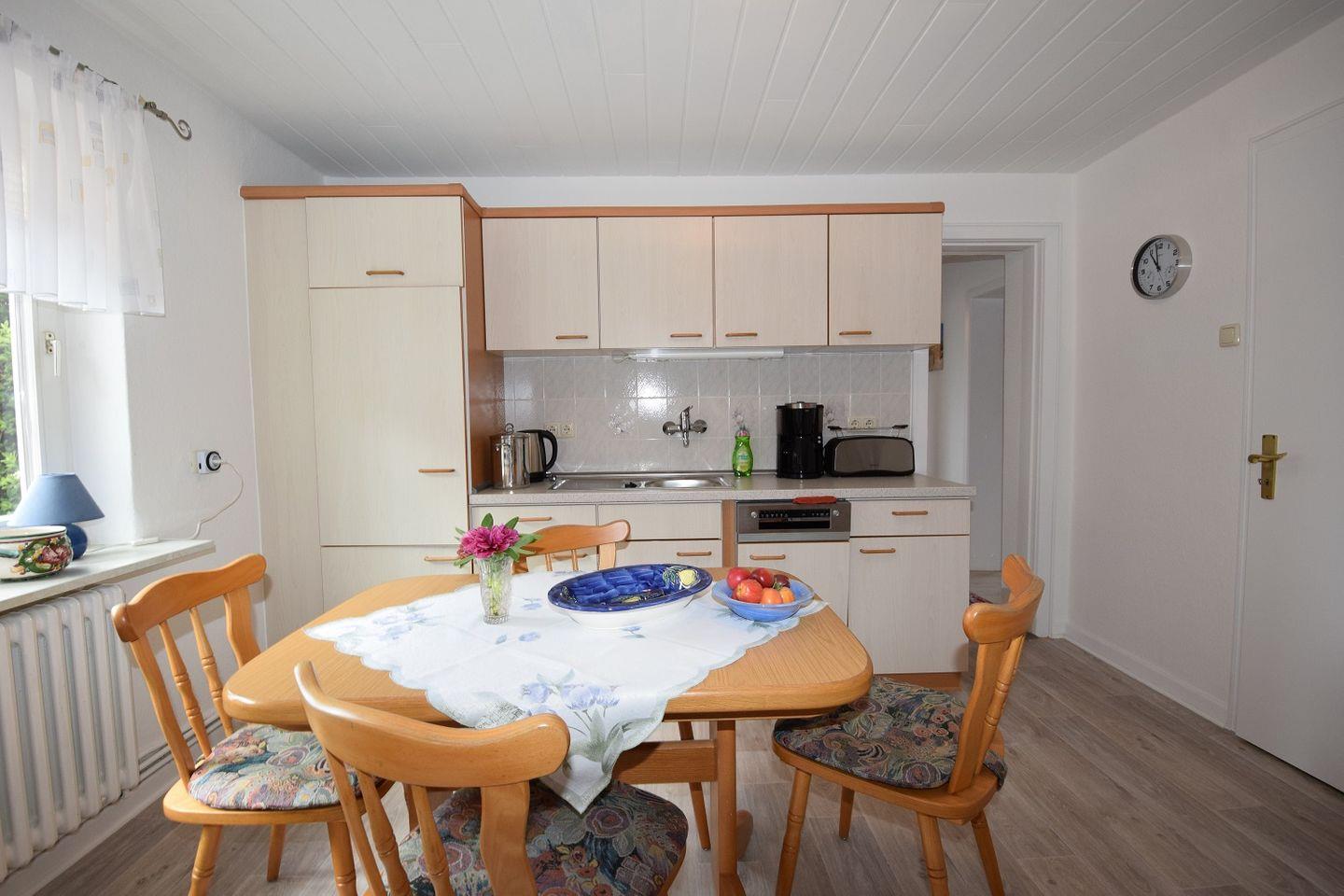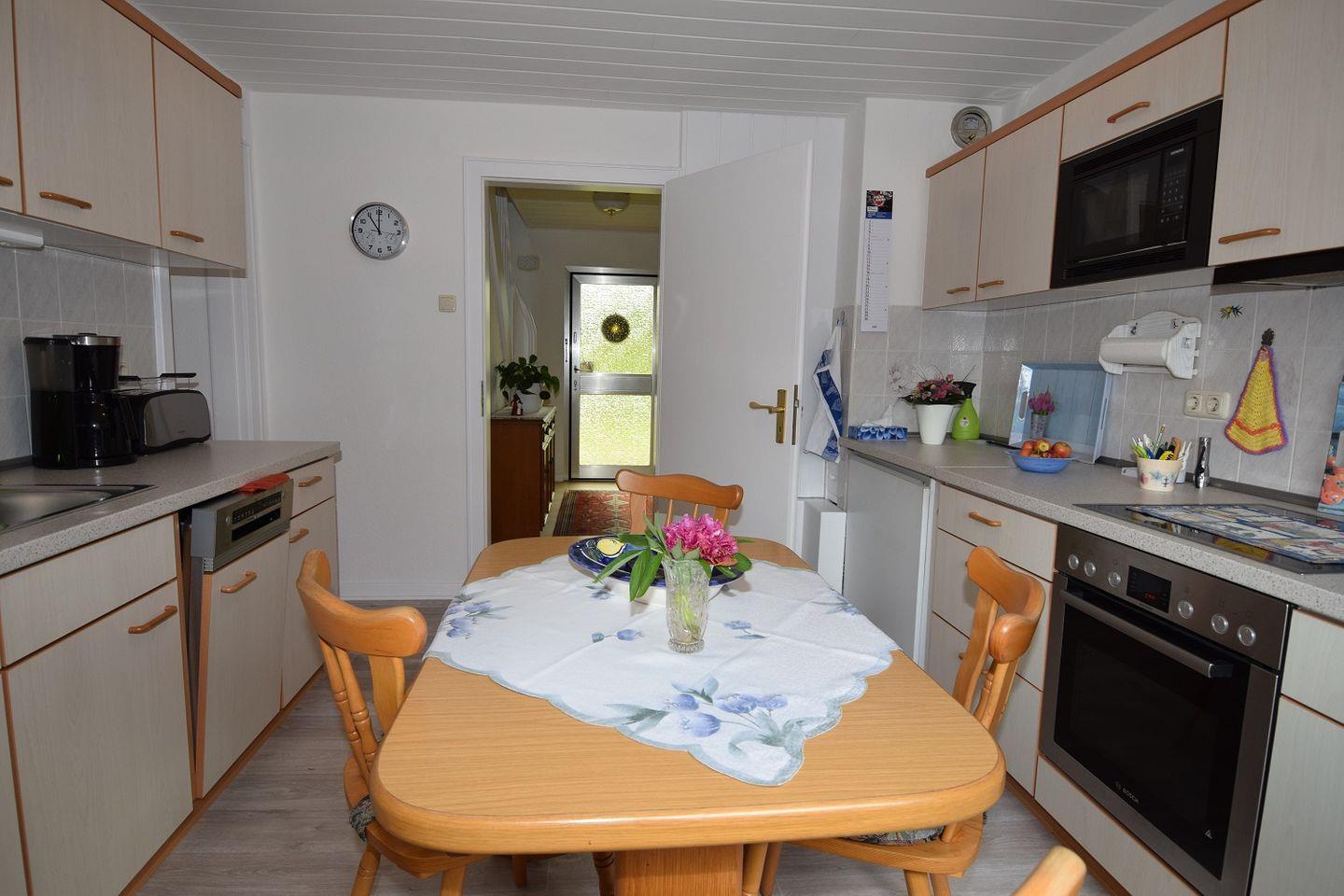 Des Weiteren finden Sie im Erdgeschoss eine große Küche, mit einem Sitzbereich, welche keine Wünsche offenlässt. Diese ist durch das große Fenster mit viel Tageslicht durchflutet.