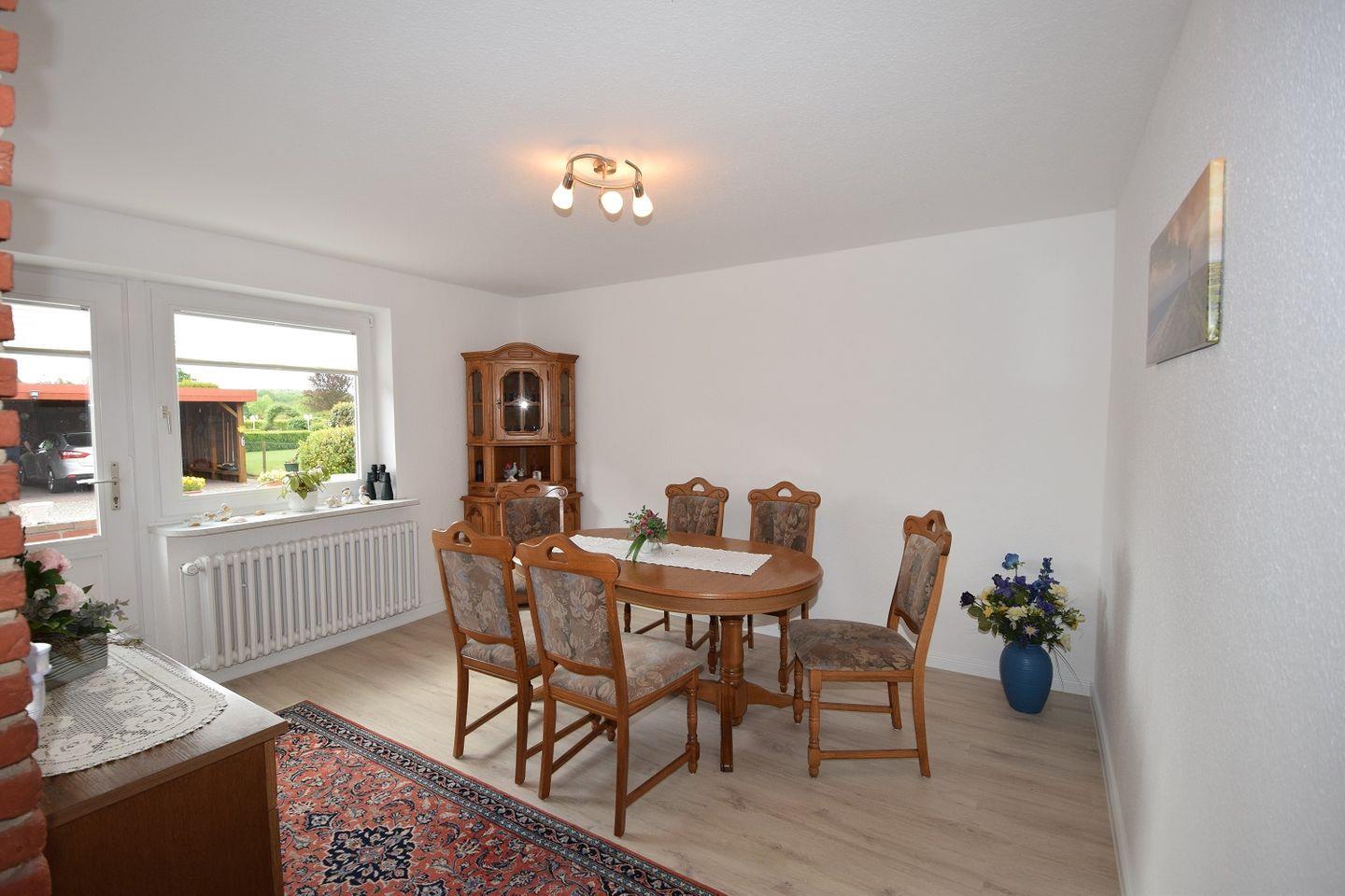 Noch hinzu kommt eine weitere Räumlichkeit mit einem großen Essbereich, welcher den Komfort weiter komplementiert und abrundet. Auch dieser Raum wird durch das große Fenster sowie die Tür zur Terrasse mit Licht gefüllt.