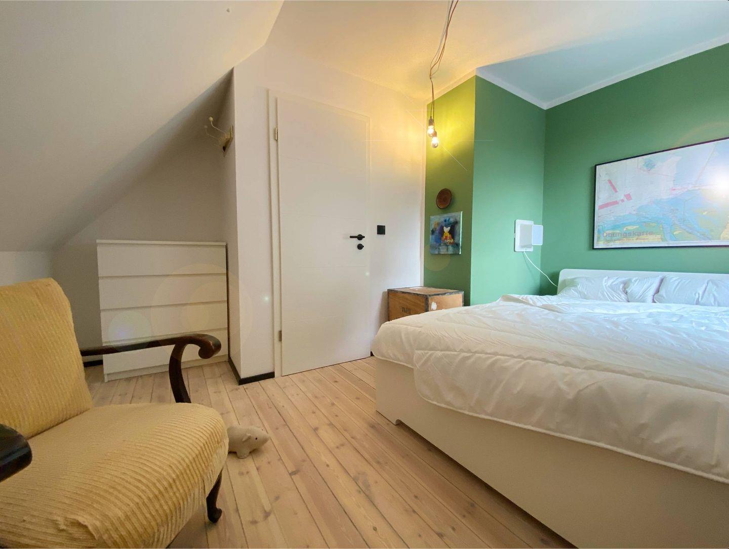 Die Ferienwohnung "Ahoi Marie" bietet Ihnen sechs komfortable Schlafmöglichkeiten in drei gemütlichen Schlafzimmern. Hier können Sie sich nach einem ereignisreichen Tag bestens ausruhen und neue Energie für kommende Abenteuer tanken. Das 3 Schlafzimmer befindet sich unter dem Dach mit Schrägen Wänden.