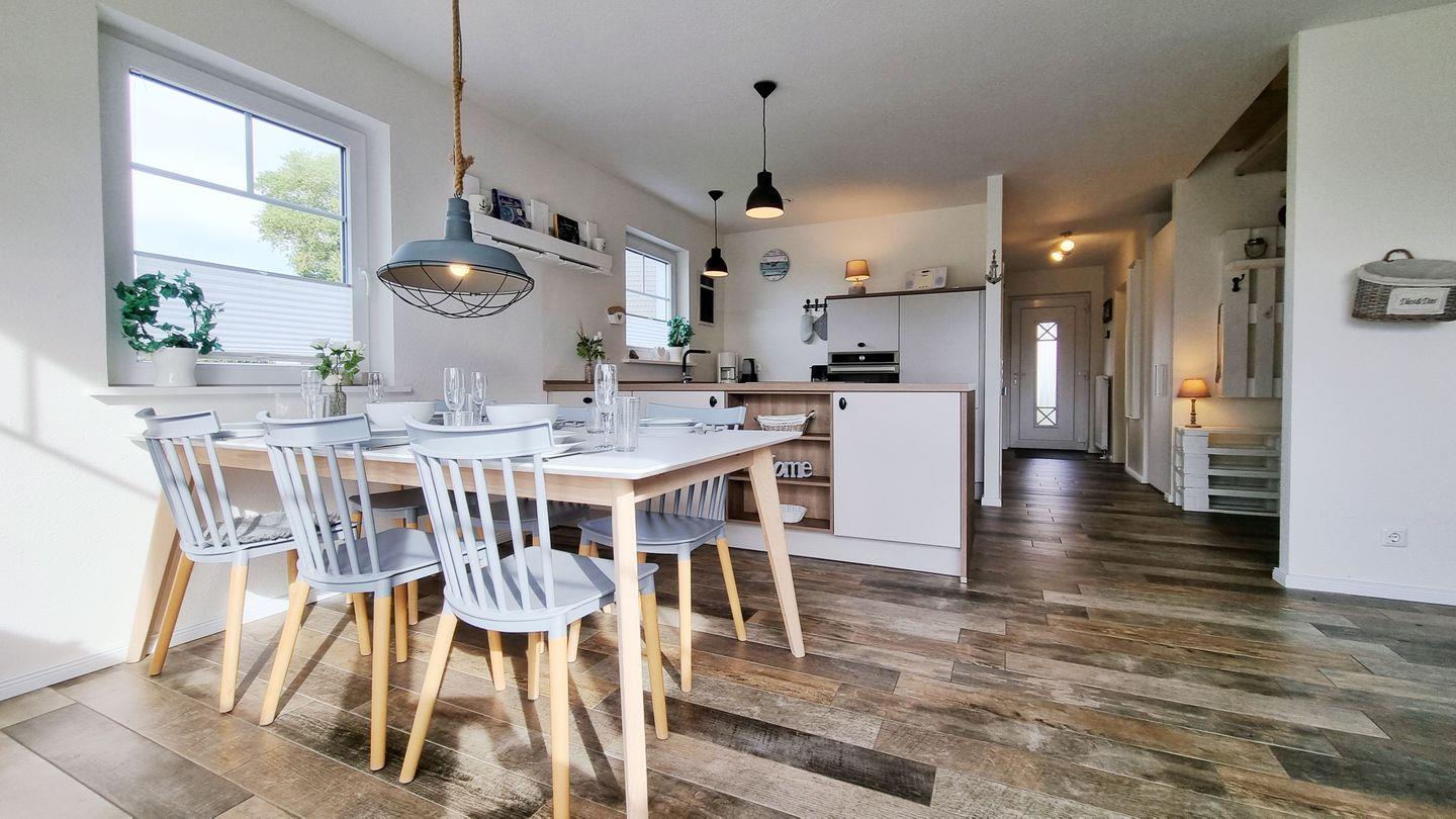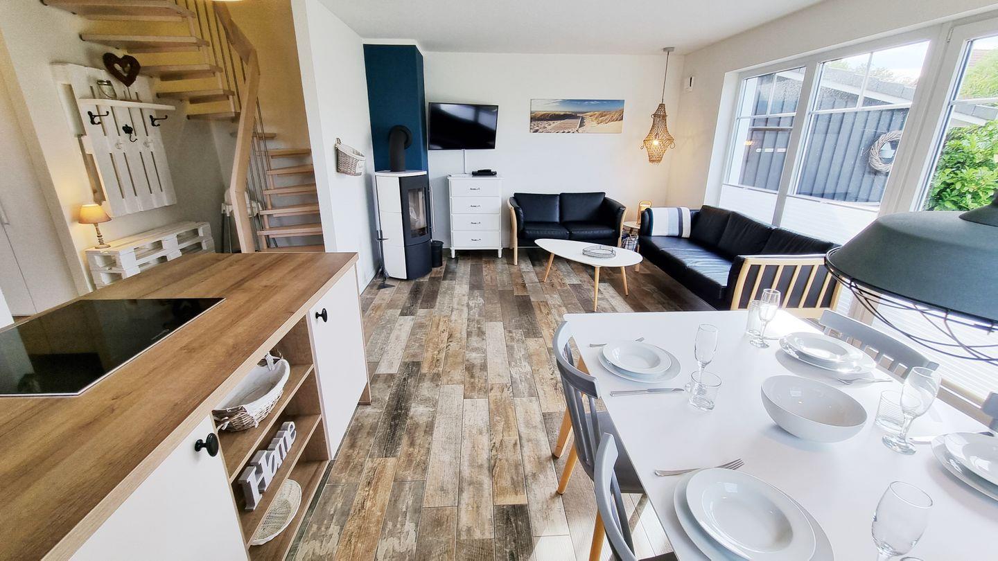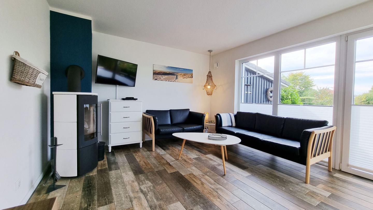 Im skandinavisch eingerichteten Urlaubsdomizil in Sehlendorf an der Ostsee finden 6 Personen mit bis zu 4 Hunden einen Ort zum Genießen. Das 95qm große Domizil mit angrenzendem 300qm eingezäunten Garten verfügt über einen lichtdurchfluteten Wohn-Essbereich mit offener Küche, Essbereich und schicker Sofaecke mit Kamin für wohlige Wärme und Gemütlichkeit.