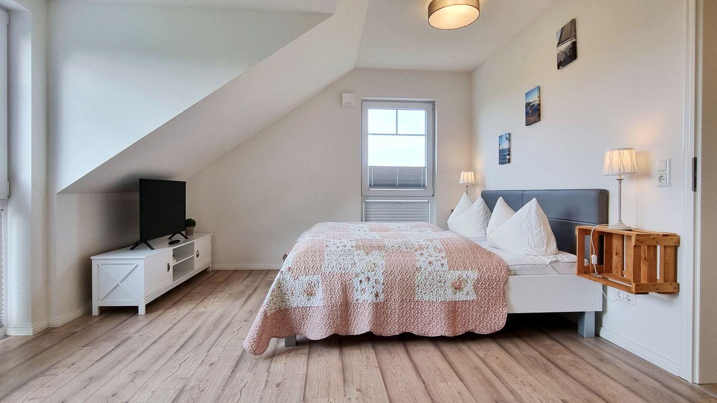 Schlafzimmer I (OG): Doppelbett (180x200cm) / Schrank / Fernseher / Plissees