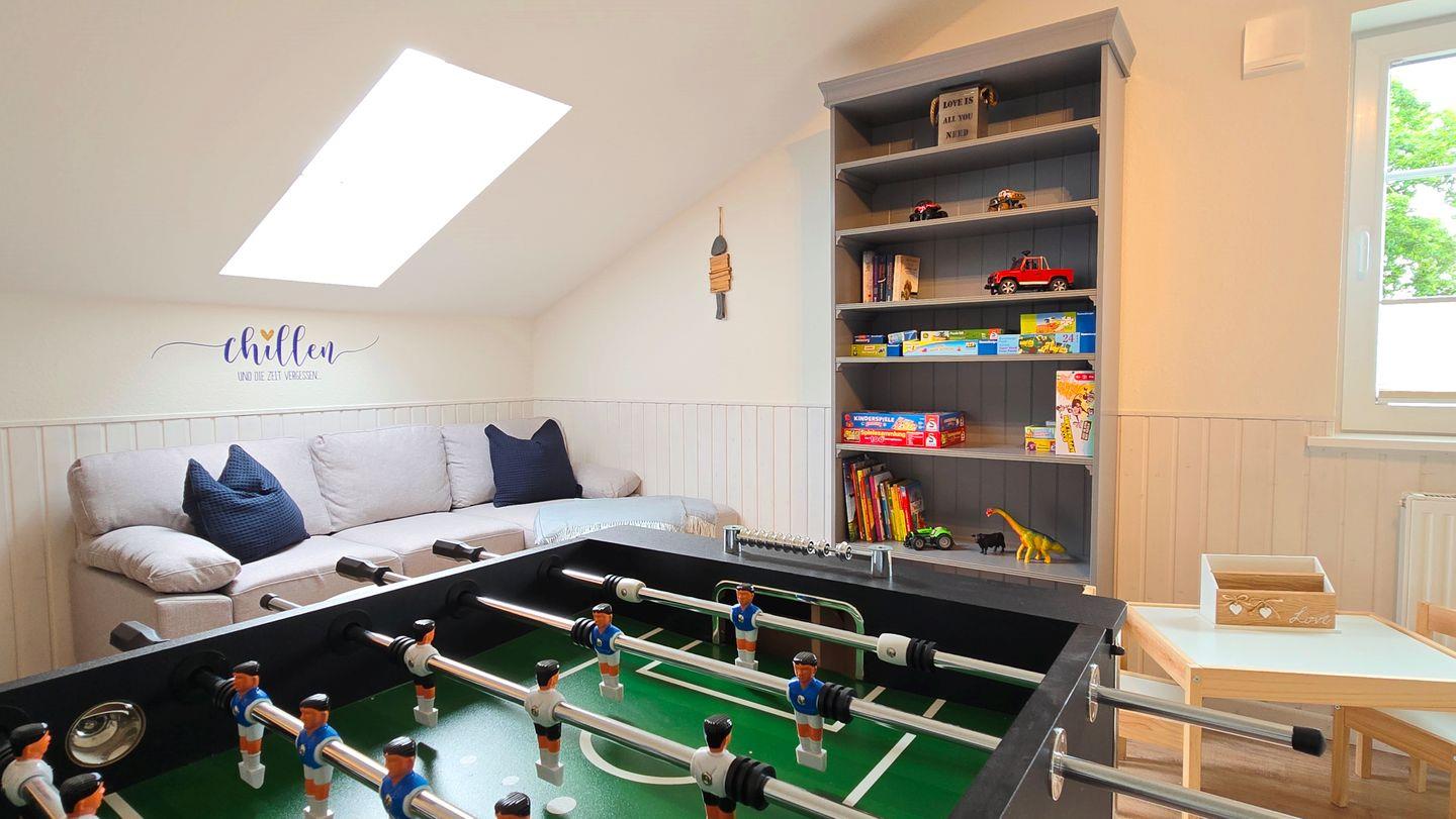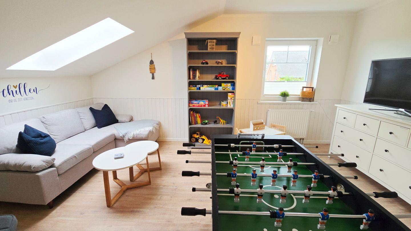 Gesellschaftsraum: Fernseher / Kicker-Tisch / Dartscheibe / verschiedene Spiele