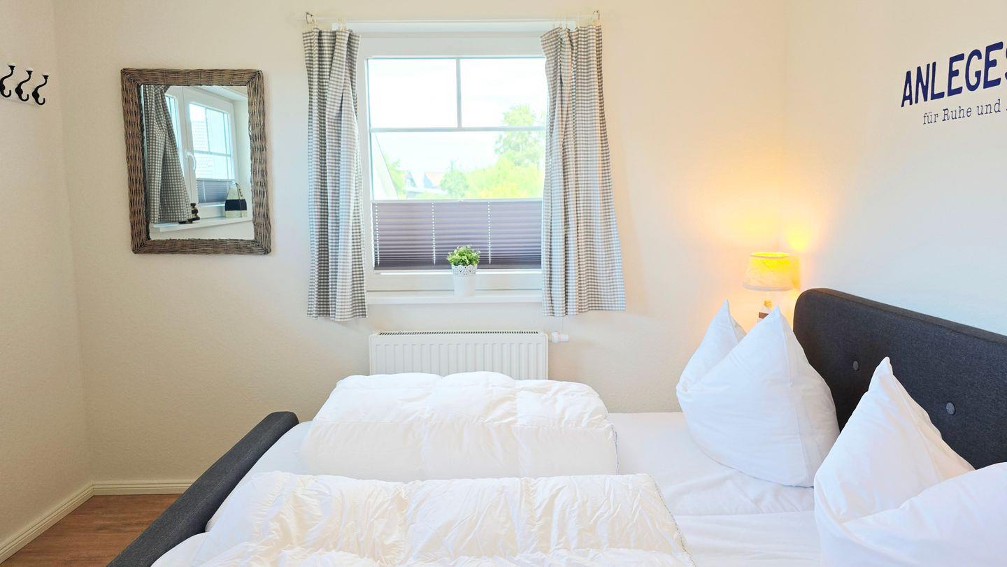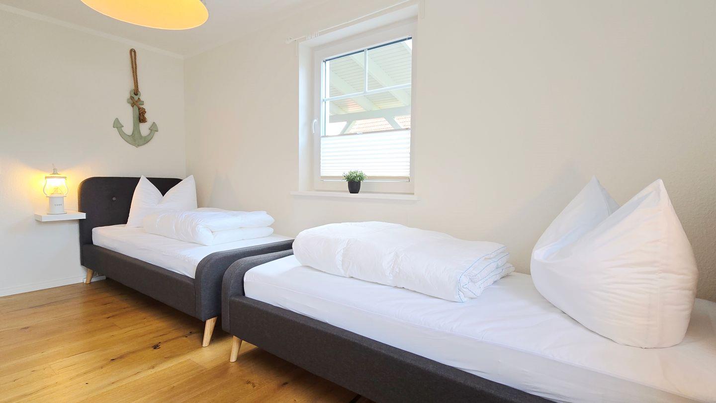 Schlafzimmer I (EG): 2 Einzelbetten (90x200) / Kleiderschrank / Kommode