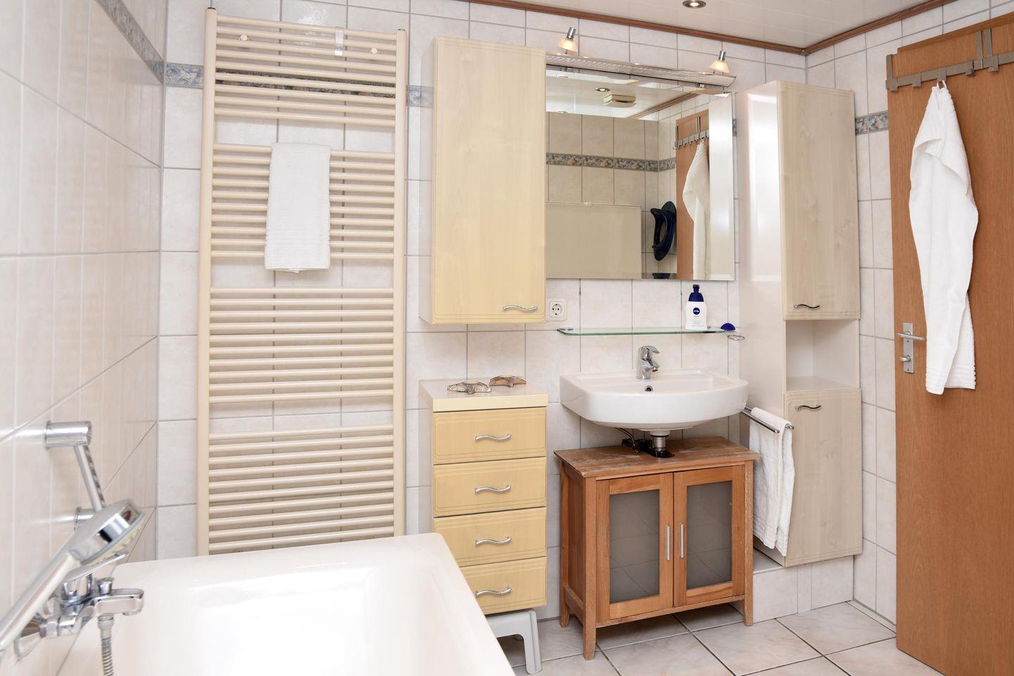voll ausgestattete Küche • gemütlicher Wohnbereich • Badewanne • Sonnenterrasse mit Strandkorb, Sonnenschirm & Gartenmöbeln
