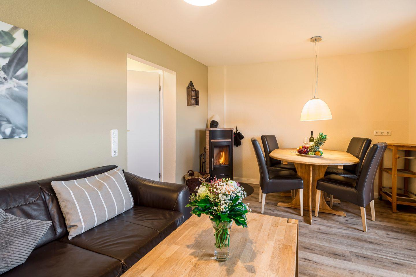 Die 4* Ferienwohnung Muschel bildet mit 60 qm die linke Hälfte unseres Doppelhauses. Freut euch auf: