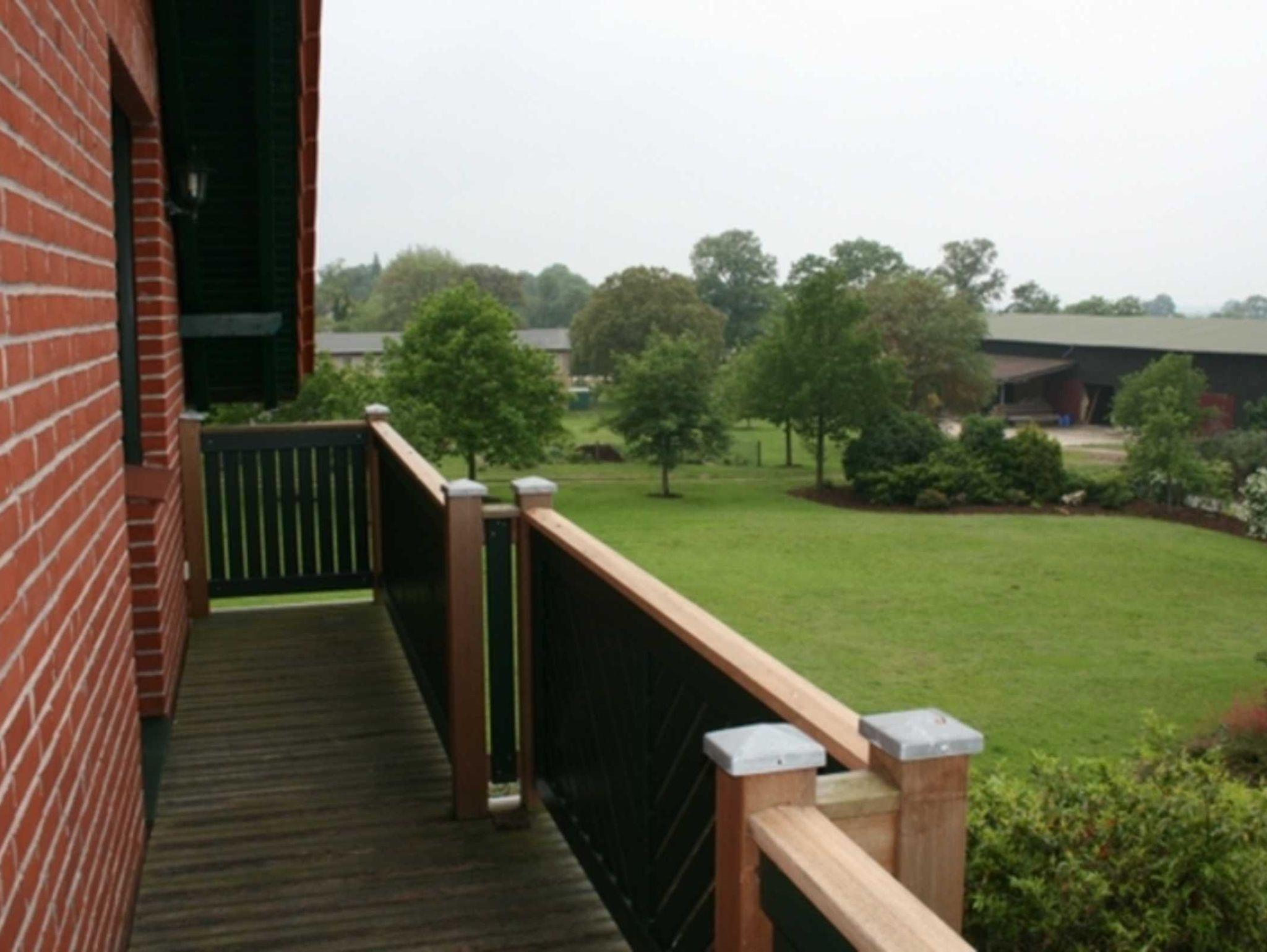 Am Haus: Direkt am Wohnzimmer einen schmalen Balkon, im weitläufigen Garten eine eigene Sitzecke. Garage mit Unterstellmöglichkeiten für Fahrräder und Surfbretter steht zur Verfügung.
