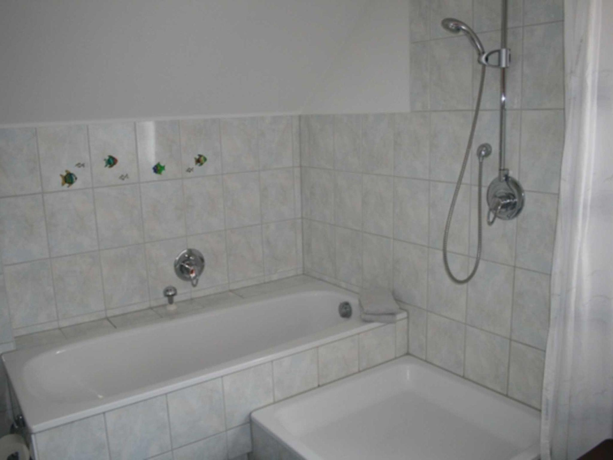 3 Schlafräume: 1 mit Doppelbett und Kinderbett, 1 x mit 2 Einzelbetten , 1 x mit 1,40 m Futonbett (Zimmer erreichbar über zusätzliche Treppe in der Wohnung). Großes Badezimmer mit Badewanne, Dusche und Wickeltisch.