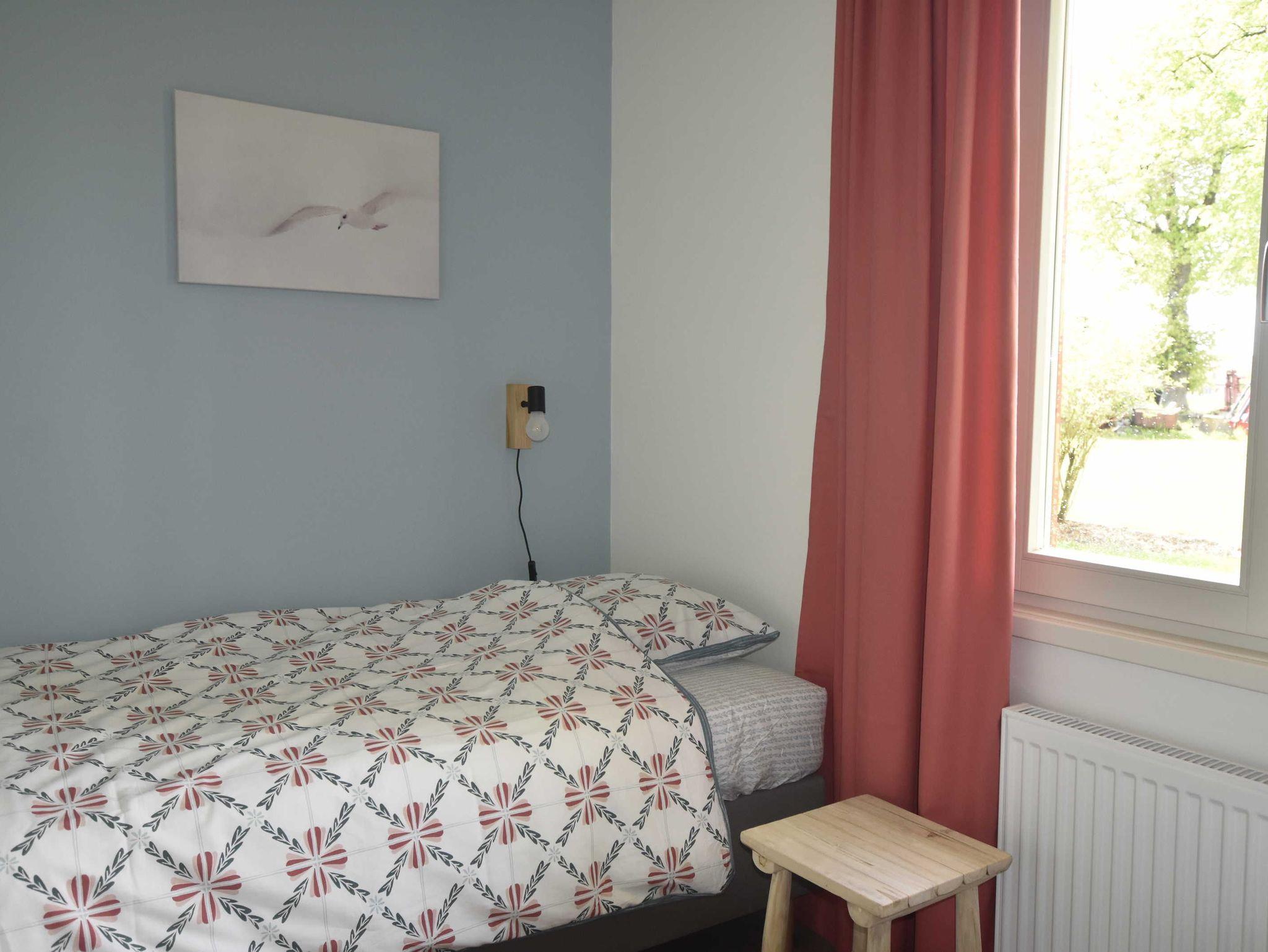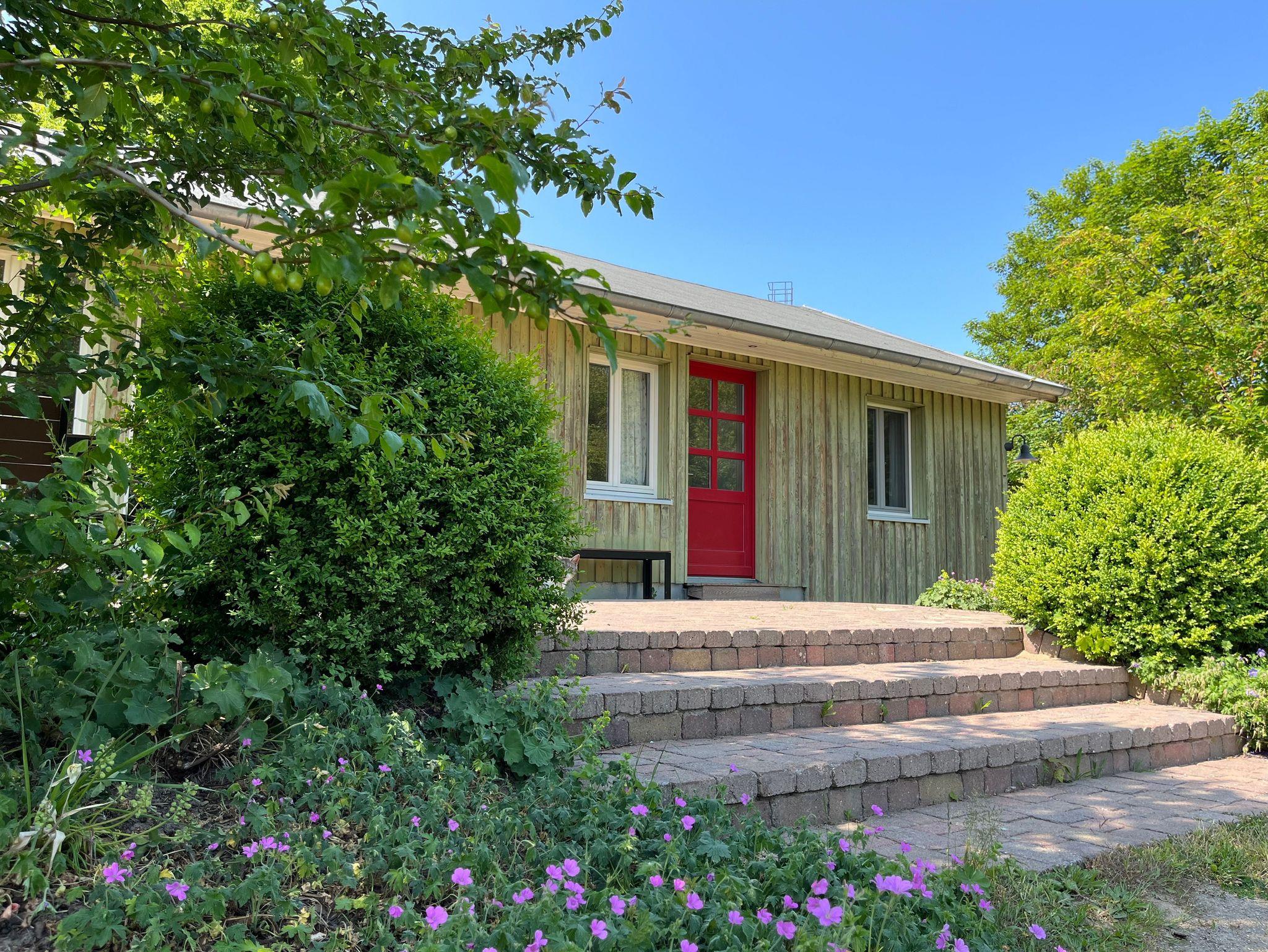 Unterkunft: Ein rotes und ein grünes 4-Raum-Ferienhaus im modernen Landhausstil (95 qm) für bis zu 8 Personen. Die Ferienhäuser bestehen aus einem großen, hellen Wohnzimmer mit integrierter Küche. Vom Wohnzimmer haben Sie durch 3 Terrassentüren direkten Zugang zur Terrasse / Garten. 3 Schlafzimmer, 1 Badezimmer mit WC, Waschbecken und Dusche, 1 Badezimmer mit WC, Badewanne und Waschbecken. Aufbettung für 7. & 8. Person auf auziehbarer Schlafcouch (= Doppelbett) im Wohnzimmer.