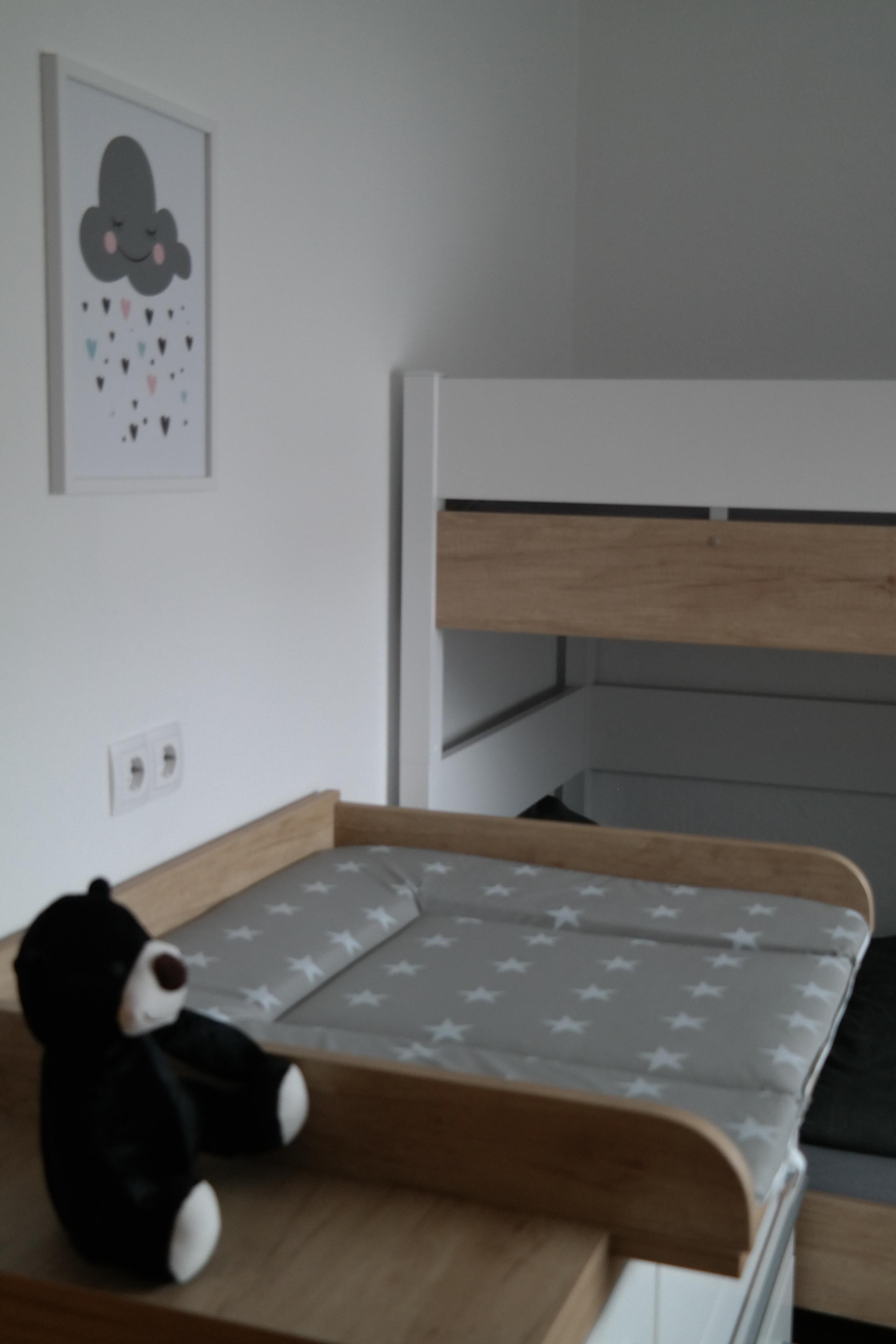 Im kleinen Schlafzimmer befindet sich ein Etagenbett und eine Kommode inkl. Wickelaufsatz bei Bedarf