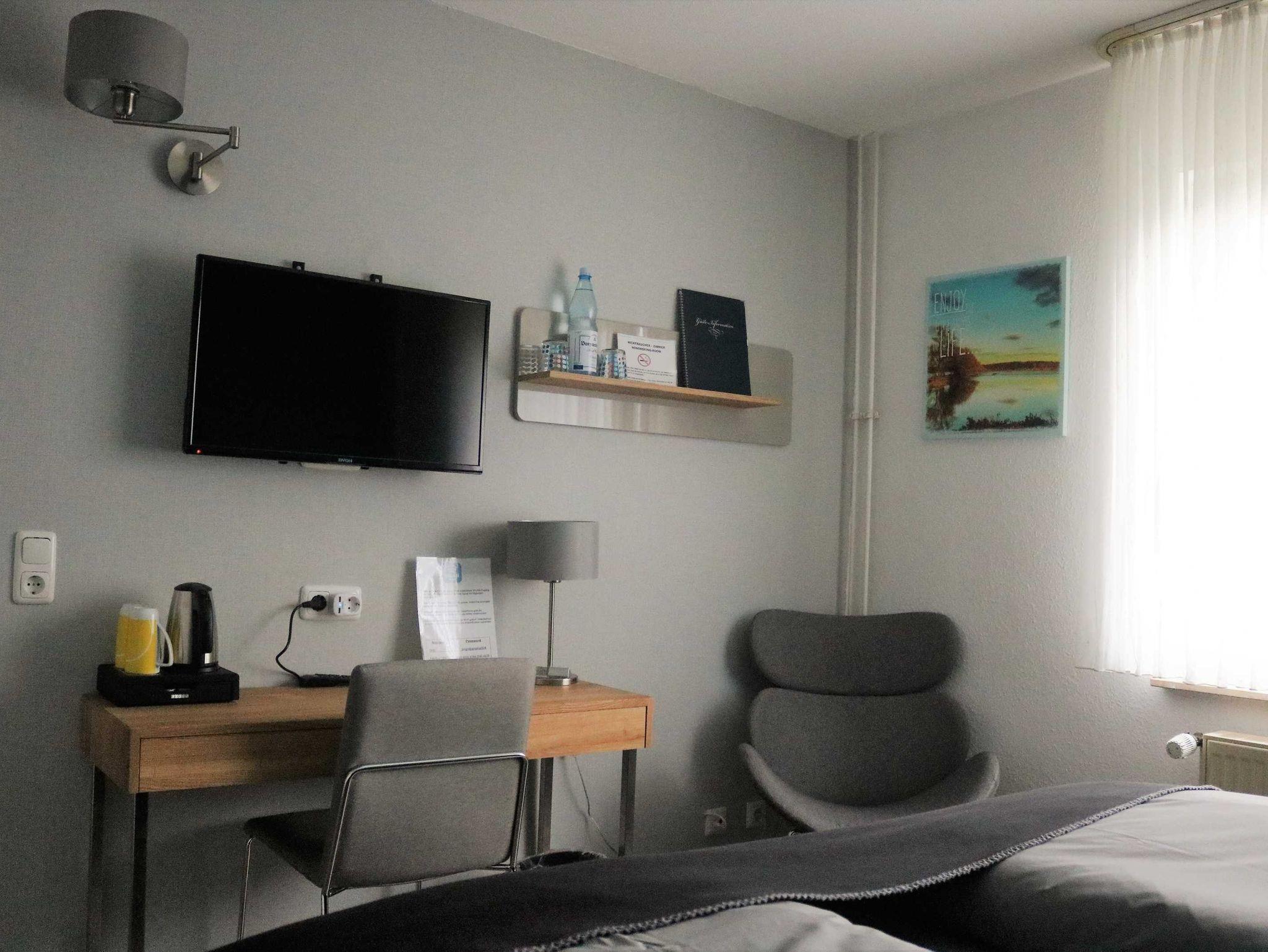 Geschmackvolle, hell und komfortabel eingerichtete Zimmer ausgestattet mit einem Komfort-Boxspringbett ( auch DZ mit Einzelbetten verfügbar), ansprechendem Designbodenbelag besonders für Allergiker geeignet, Schreibtisch, Safe, LED-Flat-TV, kostenloser Wlan-Zugang, Nichtraucherzimmer.