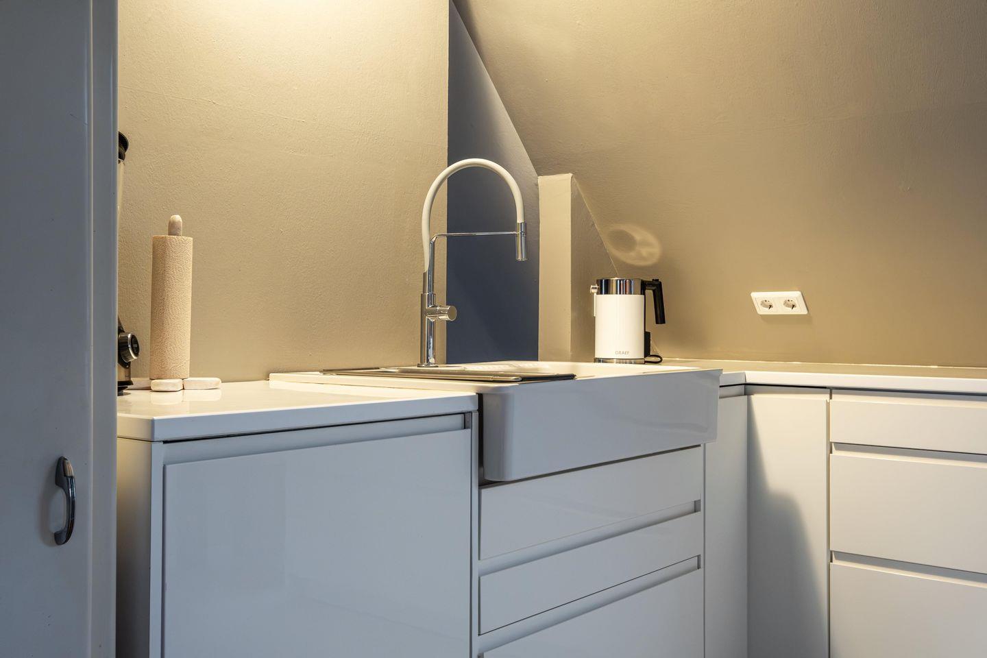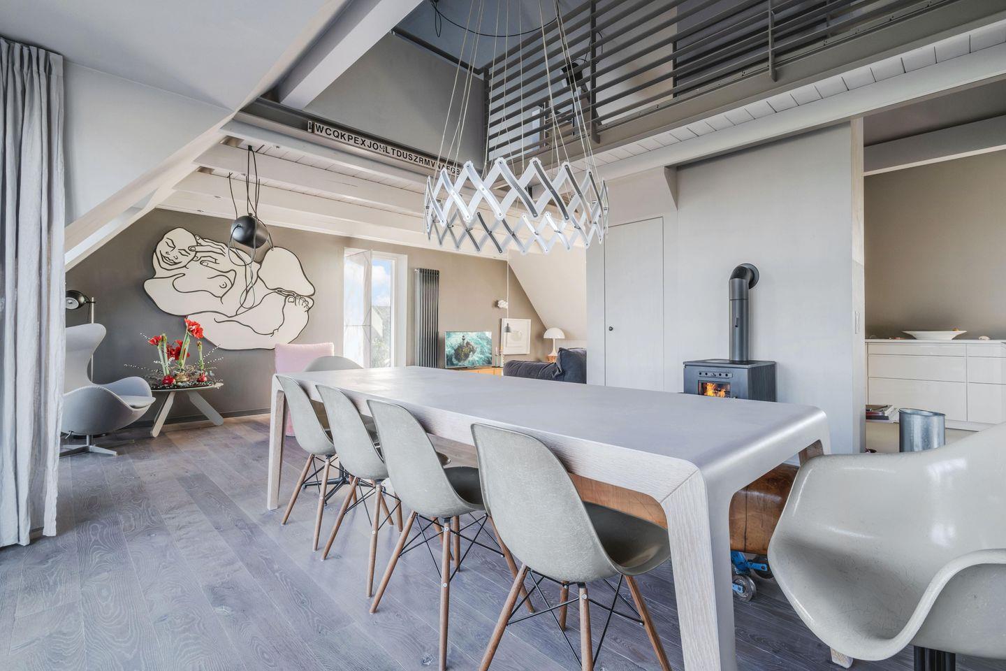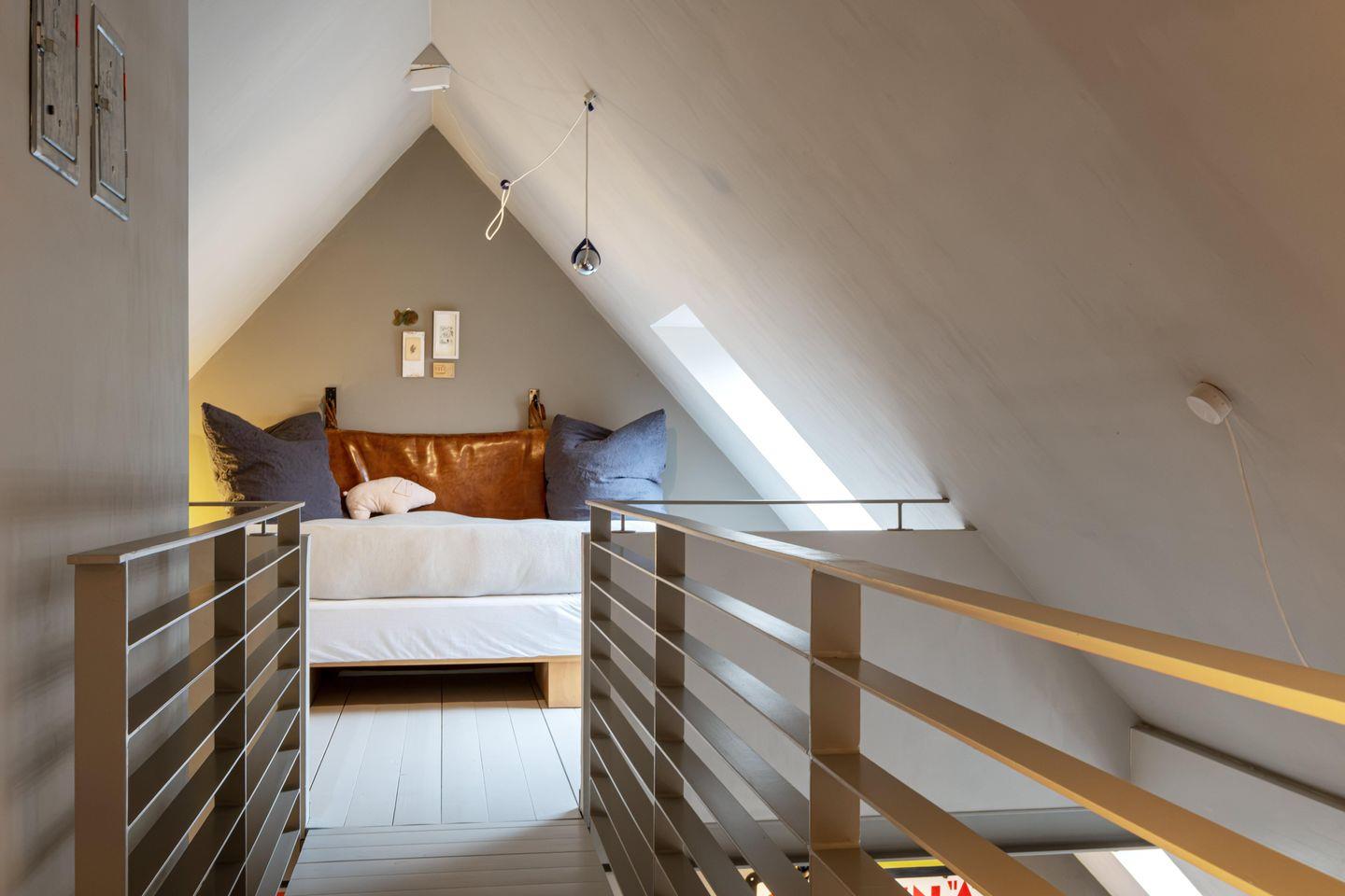 Der großzügige Wohnbereich mit Rund-Um-Meerblick liegt im Obergeschoss und hält eine große, umfangreich ausgestattete Küche, einen Holzofen und eine gemütliche Sofa-TV-Ecke bereit. Der lange Esstisch, der das Zentrum des Wohnbereiches bildet, bietet nicht nur das perfekte Setting, um in geselliger Runde zu tafeln, sondern auch für Spieleabende und lange Gespräche. Genießt hier gemeinsame Stunden mit Blick auf die Flensburger Förde. Von hier aus gelangt man auch auf die erhöhte Terrasse mit Blick auf die Ostsee. Auf den Terrassen rund ums Haus gibt es Platz für jede Tageszeit. Im Haus bietet eine Galerie über dem Wohnbereich, Platz für Workation oder eine Mittagsstunde.