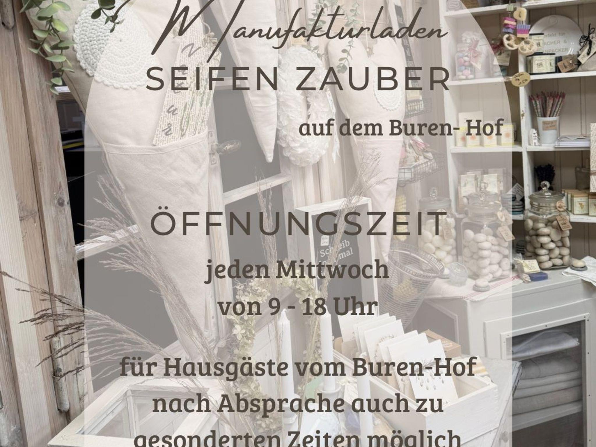Mit viel Gespür zum Detail finden sich in der Ferienwohnung, im Ferienhaus und auf dem gesamten Gelände inspirierende Dekorationen und Arrangements, die dem Betrachter Freude schenken. Freunde der guten Düfte, Naturkosmetik, Vintage-Deko & Kleinmöbeln können im hauseigenen Manufakturlädchen SEIFEN ZAUBER stöbern.