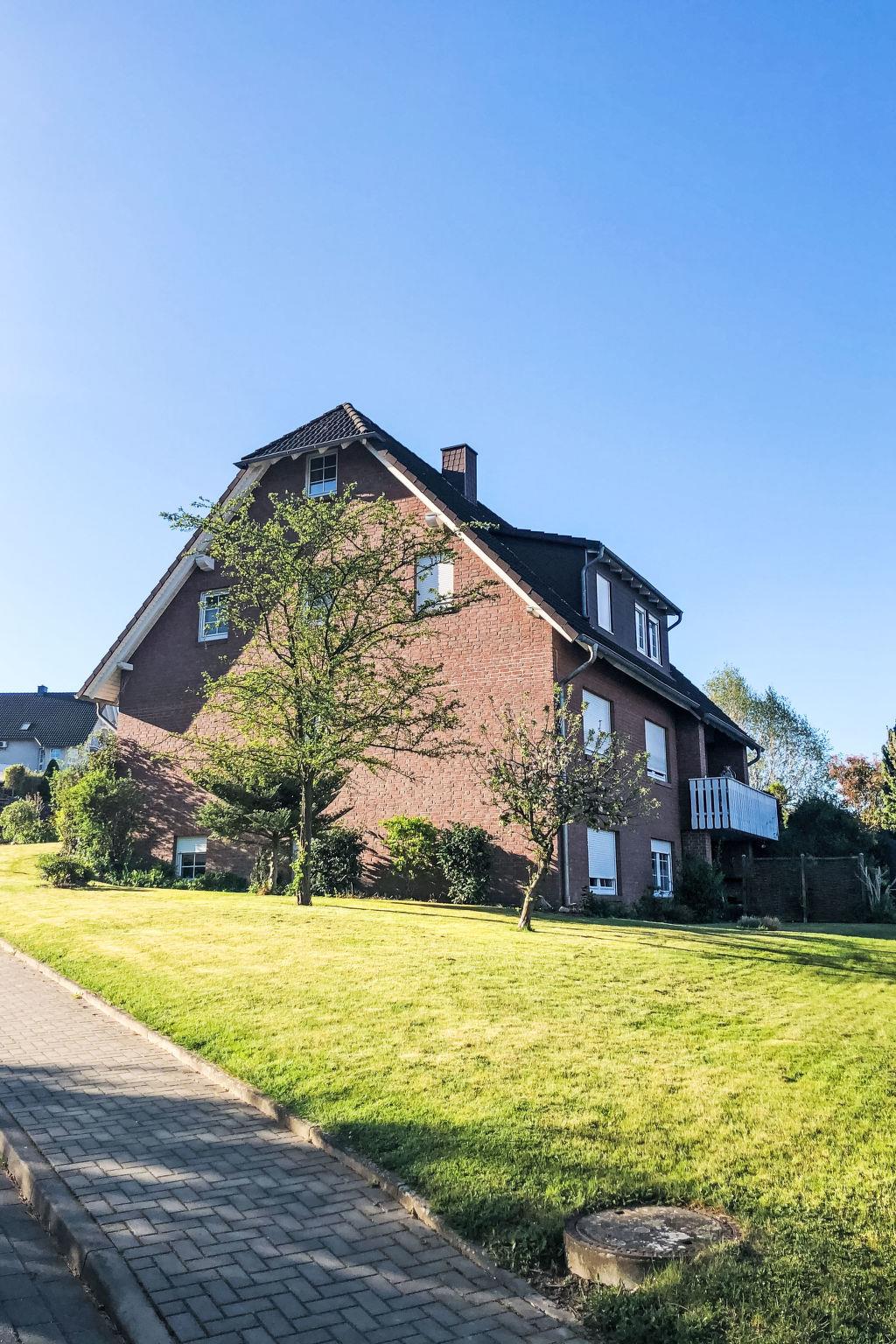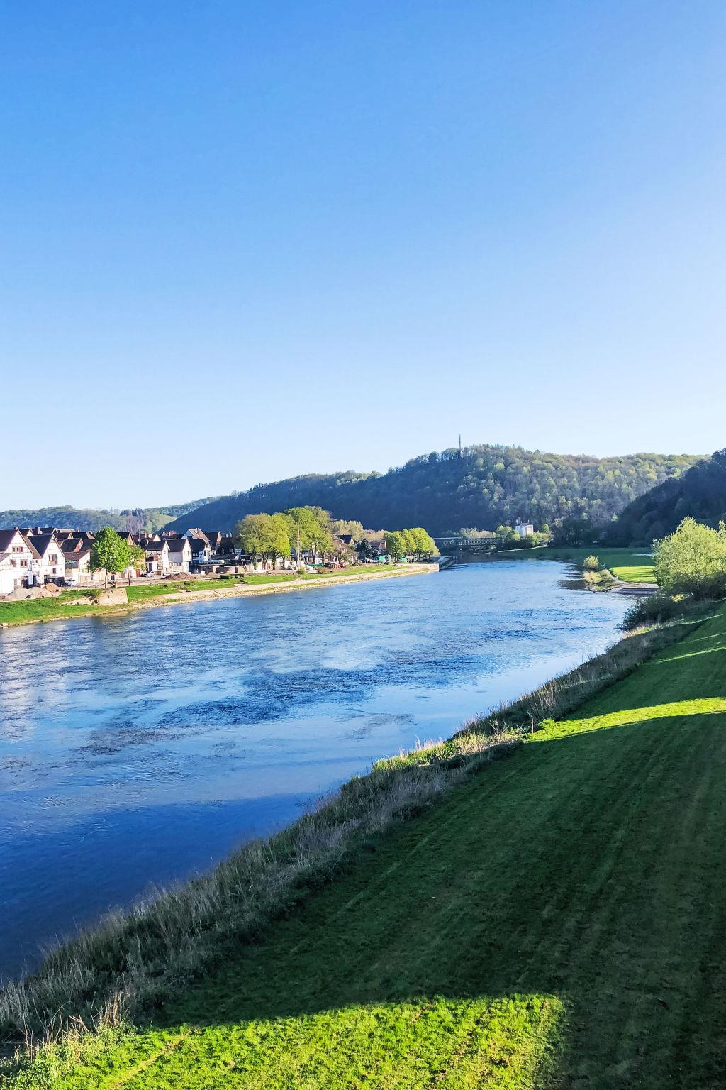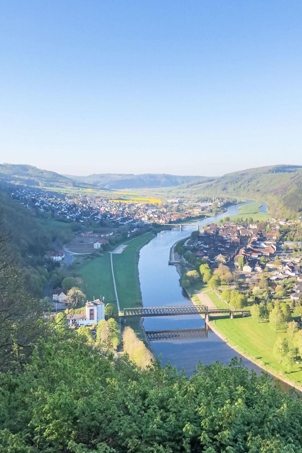 3-family house, 3 storeys. In the resort 500 m from the centre of Bodenwerder, 25 km from the centre of Bad Pyrmont, 27 km from the centre of Holzminden, in a sunny, elevated position on a slope, in the countryside. Public parking 20 m. Shop, grocery, supermarket 500 m, restaurant, bus stop 100 m, railway station "Emmertal" 10 km, outdoor swimming pool 10 km, indoor swimming pool 1 km. Golf course (18 hole) 10 km, tennis 1 km, riding stable 2 km. Nearby attractions: Hameln 23 km, Bad Pyrmont 25 km, Kloster Corvey 33 km. Hiking paths: Weserbergland 500 m, Naturpark Solling-Vogler 33 km. Bicycles can be stored in a lockable and monitored area (workshop).