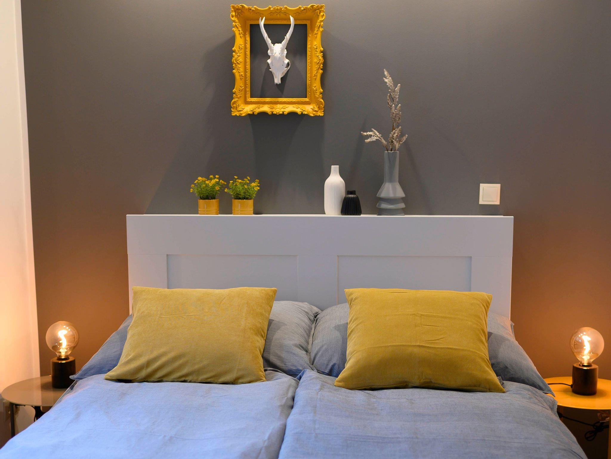 1. Schlafzimmer hierbei handelt es sich um ein Doppelbett mit zwei mal 90cm Matratzen, im beleuchteten Kleiderschrank ist genügend Platz für Ihre Outfits. Das Zimmer kann durch die Außenrollos verdunkelt werden.