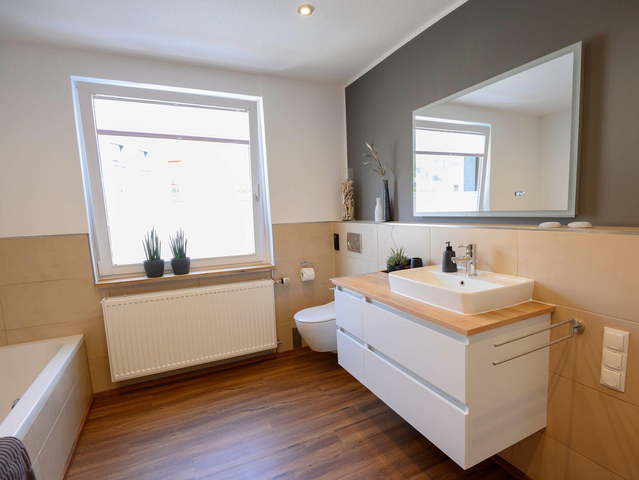 Das Badezimmer bietet mit der großen Walkin-Dusche und der Badezimmer sowie dem beleuchteten Spiegel genügen Platz, ein Haartrockner ist selbstverständlich zur Hand sowie die Handtücher für Sie.