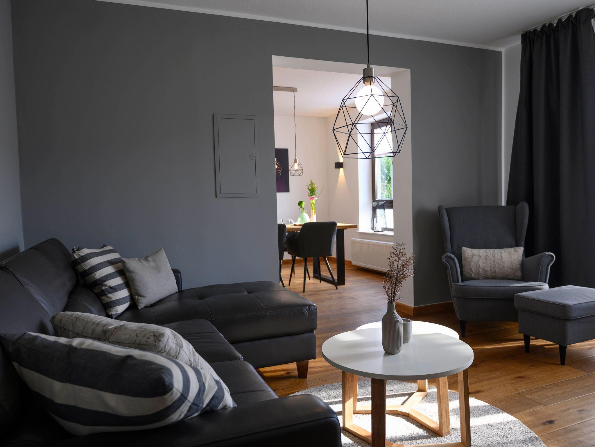 „DIE UNTERE“ bietet auf 100 qm stilvoll und modern eingerichtet einen offenen grossen Wohn-Essbereich mit einer traumhaften Küche mit Kochinsel, eine Leseecke und ein bequemes Sofa vor dem Pellet-Ofen.