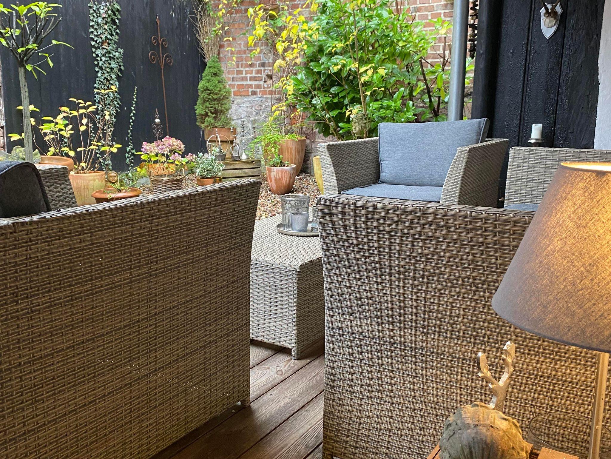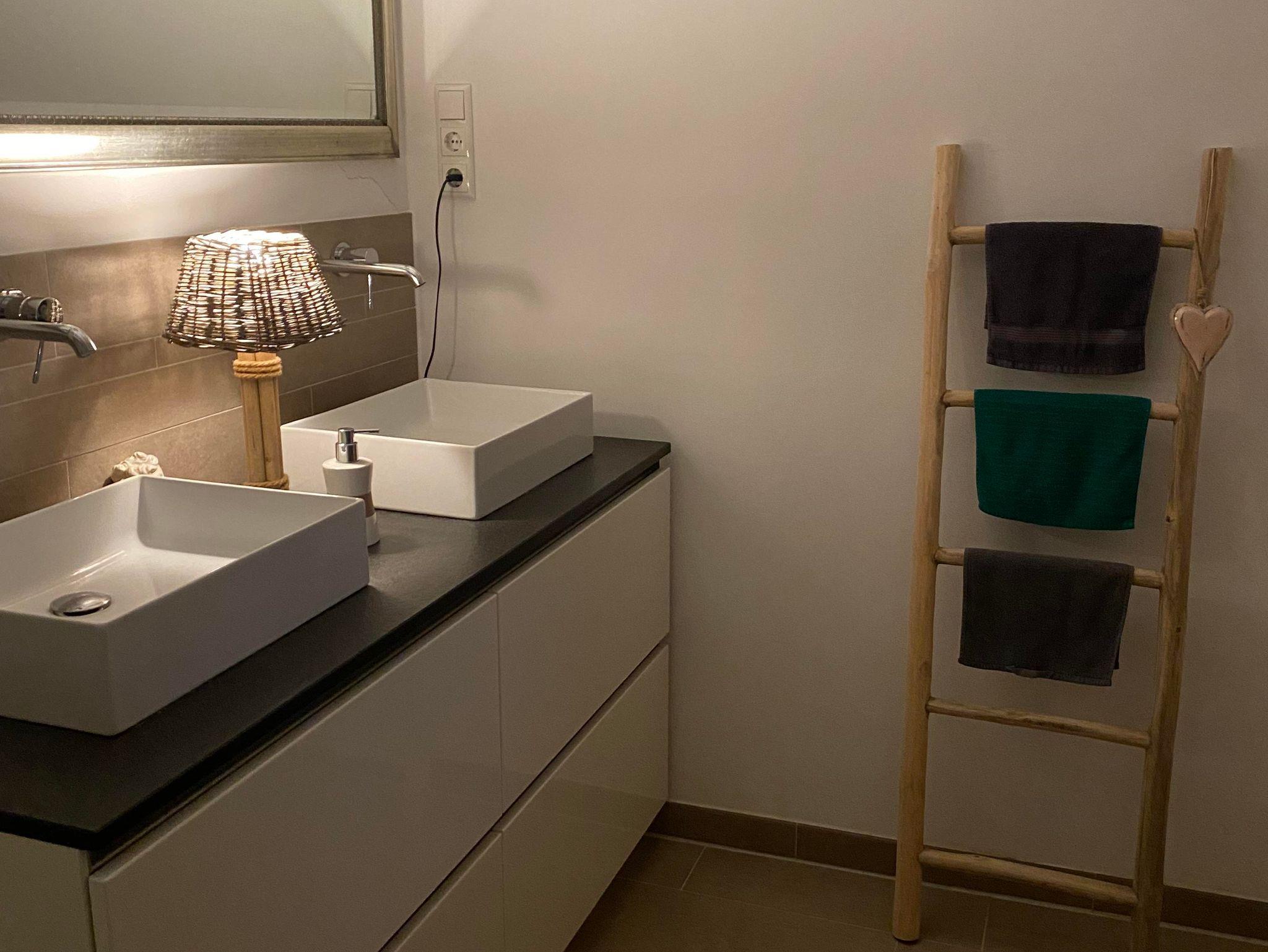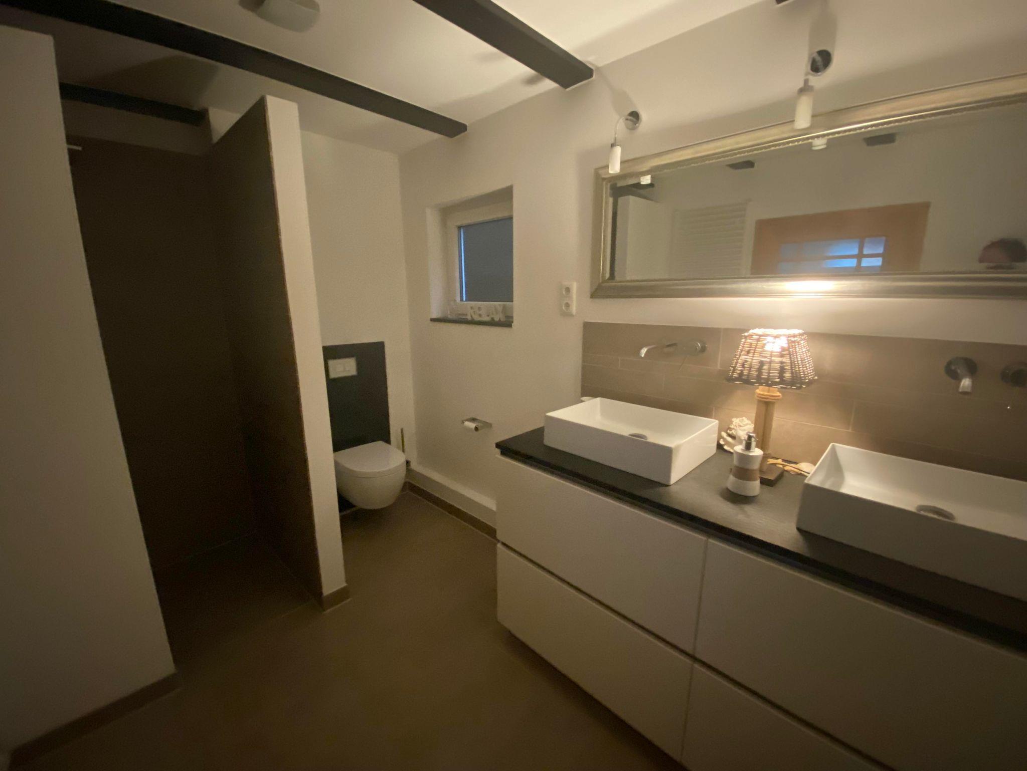 Das Ferienhaus bietet auf 140 Quadratmetern Platz für bis zu 6 Personen. Im Erdgeschoss befindet sich eine sehr gut ausgestattete Küche mit 2 Gaskochfeldern, Induktionsherd mit 2 Platten, Backofen, Spülmaschine, Kühlschrank, Kaffemaschine und Toaster. Ein gemütlicher Wohn- und Essbereich für 6 Personen mit Kaminofen und ein schönes Badezimmer mit bodentiefer Regendusche und 2 Waschbecken ergänzen den offenen, aber gemütlichen Wohnbereich. Im Obergeschoss befinden sich 3 Schlafzimmer mit je einem Doppelbett (2x 1,80m, 1x 1,40m), hier kann man sehr gut entspannen. Im Anbau, im Durchgang befindet sich ein Fahrradabstellplatz und ein weiterer Raum mit einer zweiten Toilette mit Waschmaschine und Trocknungsmöglichkeit. Ein weiterer Nebenraum mit einer großzügigen Sauna mit Infrarot, Sportgeräte und einen teilweise überdachten, begrünten Innenhof mit Lounge-Ecke und einer Außendusche (nicht im Winter) runden das Ferienhaus zur Entspannung ab.