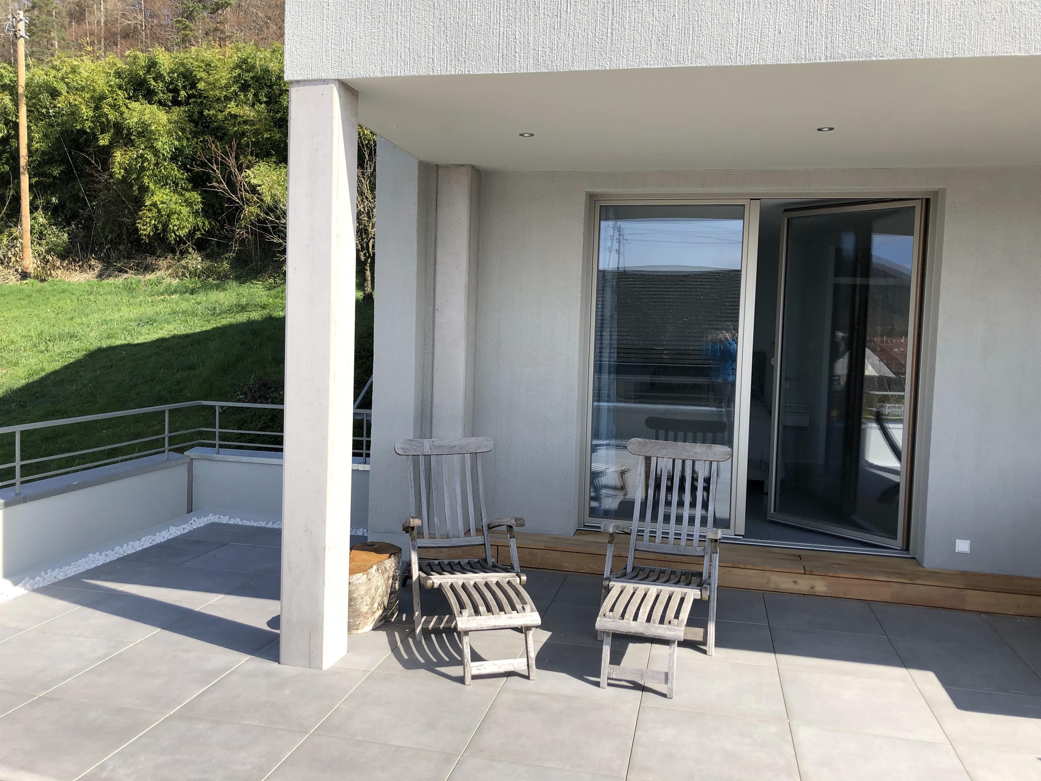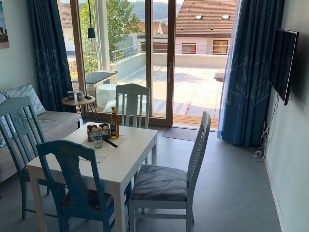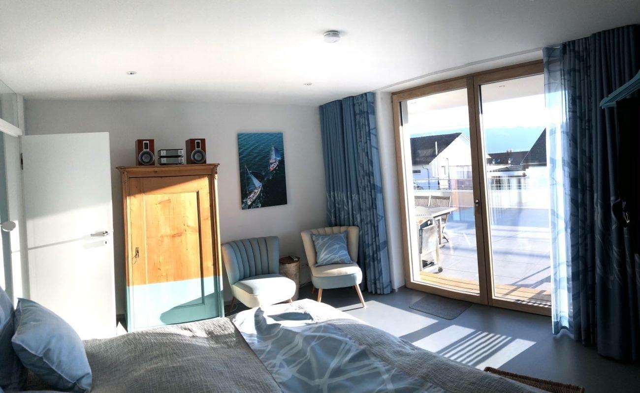 DIE MODERNE FERIENWOHNUNG LIEGT FUßLÄUFIG ZUM SEE IN BODMAN-LUDWIGSHAFEN. STILVOLLE EINRICHTUNG, BODENTIEFE FENSTER, AUßERGEWÖHNLICHES DESIGN, HOCHWERTIGE AUSSTATTUNG.