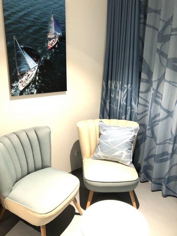 Das moderne Design der Vorhänge und Kissen ist einzigartig und macht die Ferienwohnung zu etwas ganz Besonderem.
