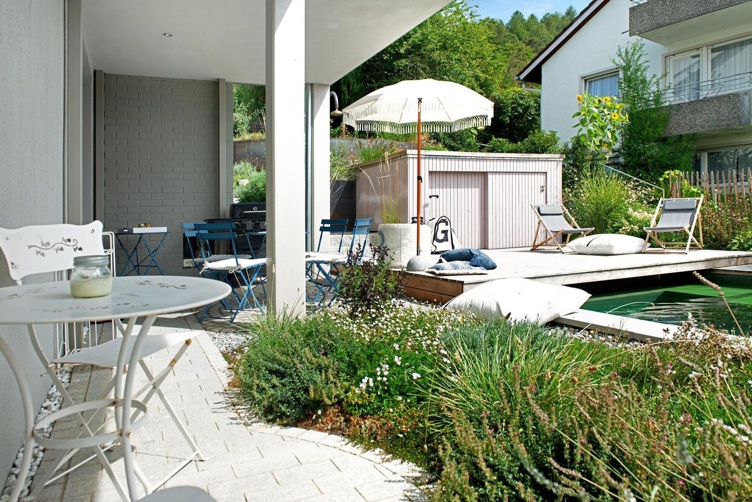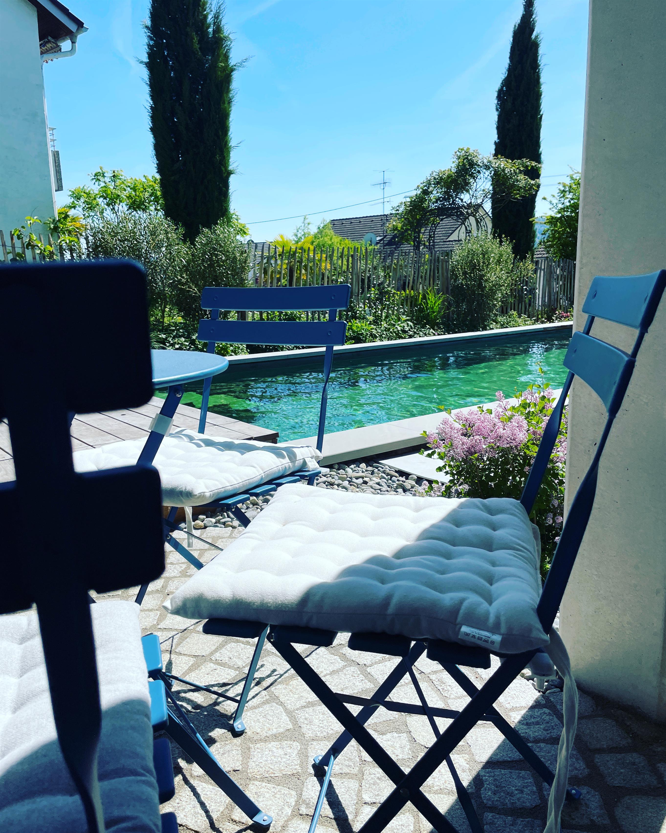 Eingelassen in einem wunderschön angelegten Garten sorgt der große beheizte Naturpool mit Gegenstromanlage und Massagedüsen für Fitness und Wohlbefinden. Der Pool wird gemeinsam von den Feriengästen der beiden SeeArt Apartments, sowie den Inhabern und manchmal von deren Gästen genutzt.