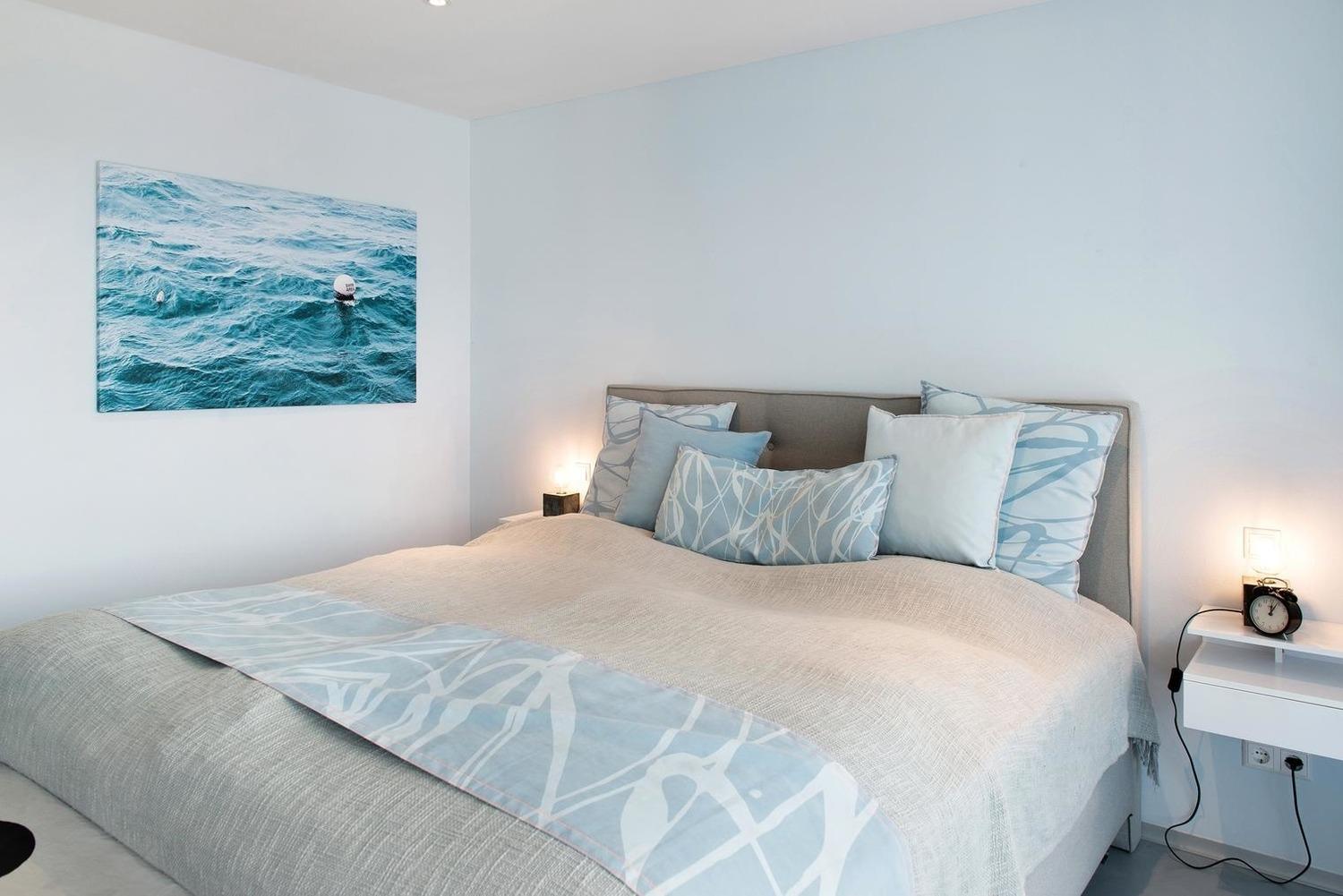 Das lichtdurchflutete Apartment verfügt über bodentiefe weißgeölte Holzfenster und Terassentüren, teilweise mit etwas Seesicht, ausgestattet mit einem hochwertigen Mückenschutz und Verdunklungsvorhängen.