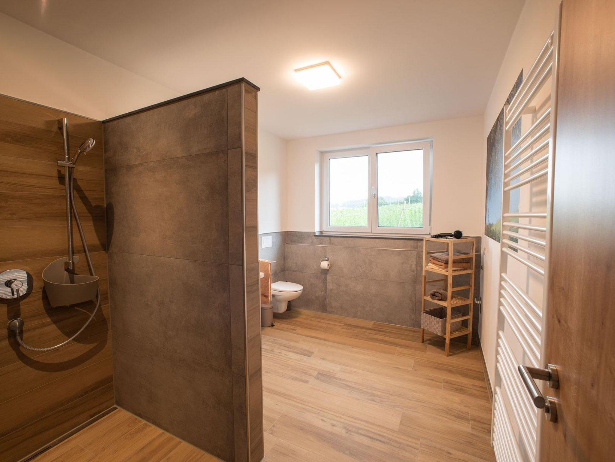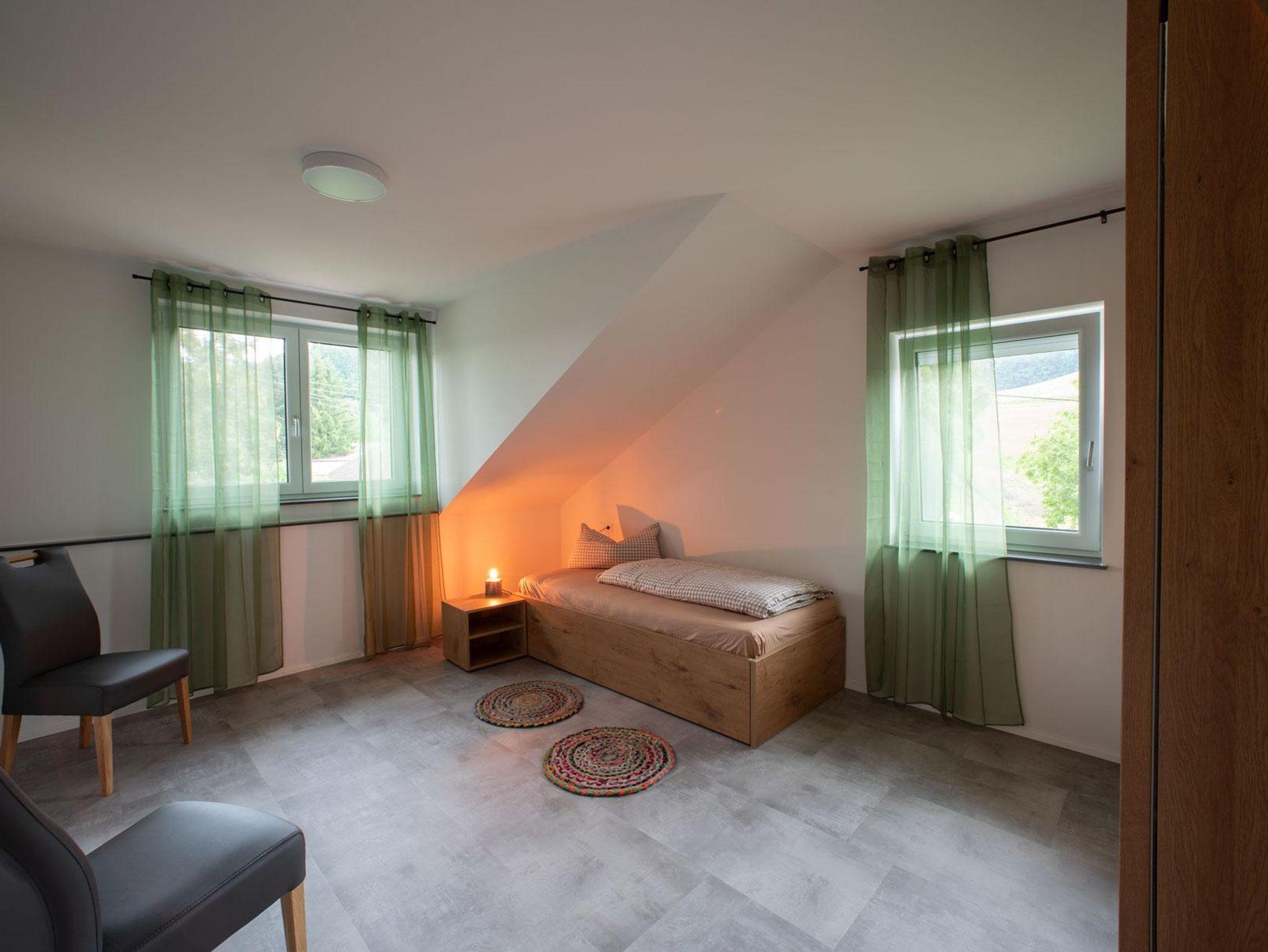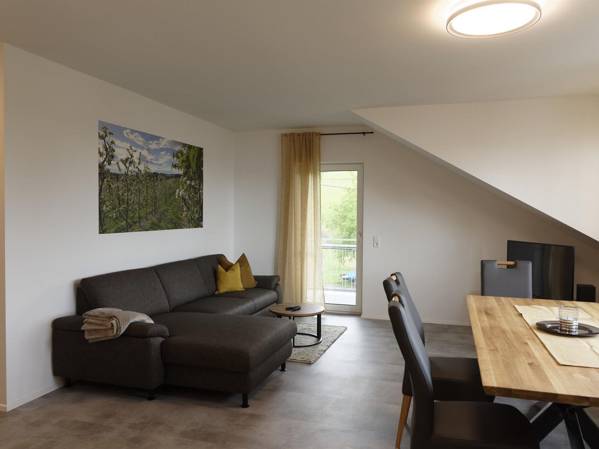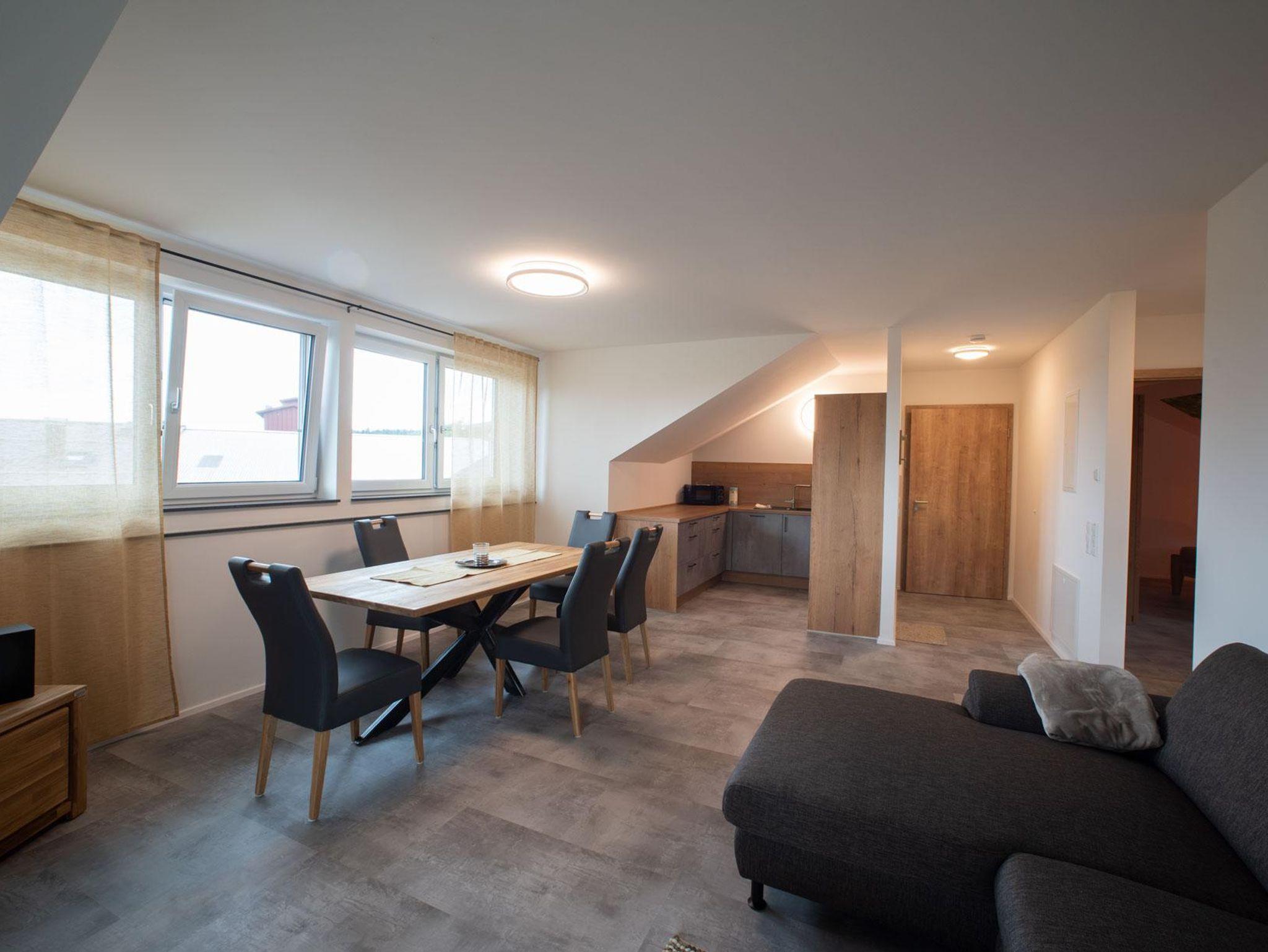Im 2. OG auf ca. 85 m² finden Sie zwei getrennte Schlafzimmer mit einem Doppelbett bzw. einem ausziehbaren Einzelbett (auf 170x200 cm), Zustellbett möglich. Die komplett ausgestattete Wohnküche mit großem Essbereich, bequemer Stoffcouch, TV und Kompaktanlage lädt zum Wohlfühlen ein. Das großzügige Badezimmer ist mit einer begehbaren Dusche, einem Waschbecken und Toilette ausgestattet. Ein Balkon mit toller Aussicht lädt zum Verweilen ein.